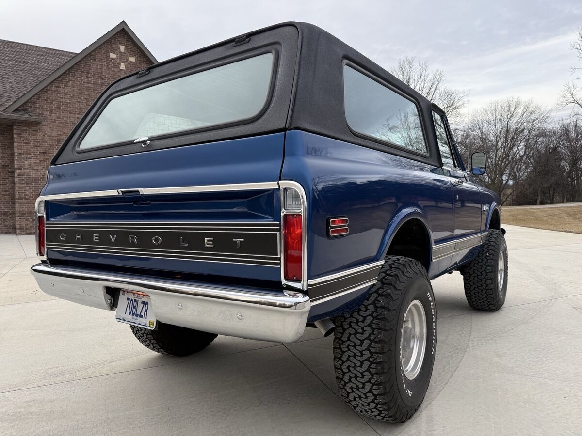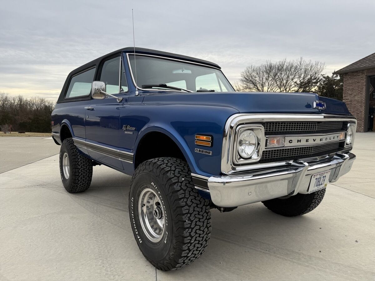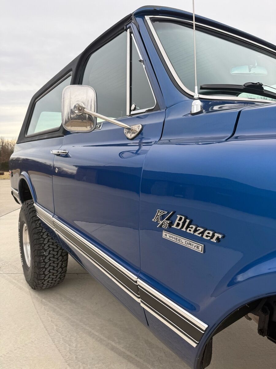 This 1970 Chevrolet K5 Blazer is a beautifully restored vehicle with updates to the exterior, interior, and drivetrain. The owners have had it for 4 years and mainly uses it for car shows. The vehicle runs great and has a clean title. We wouldn’t be afraid to drive this beauty a long distance and you’ll love the many “Thumbs Up” you get while driving. Very clean ride and the blue color with the black removable top adds a touch of style to this classic. The mileage is at 58290, and the Blazer is in excellent condition. This Blazer was a Southern Truck and came to us from Arizona. Clean title.