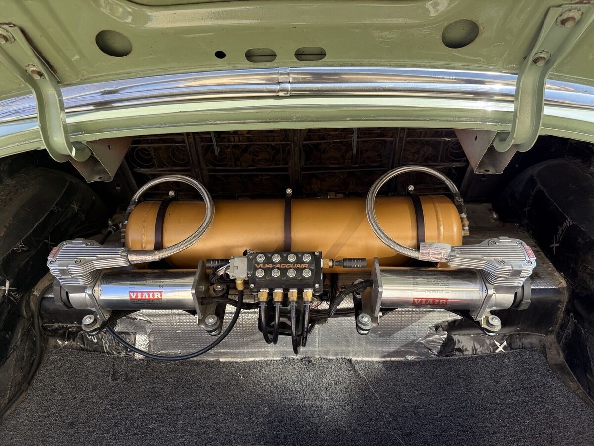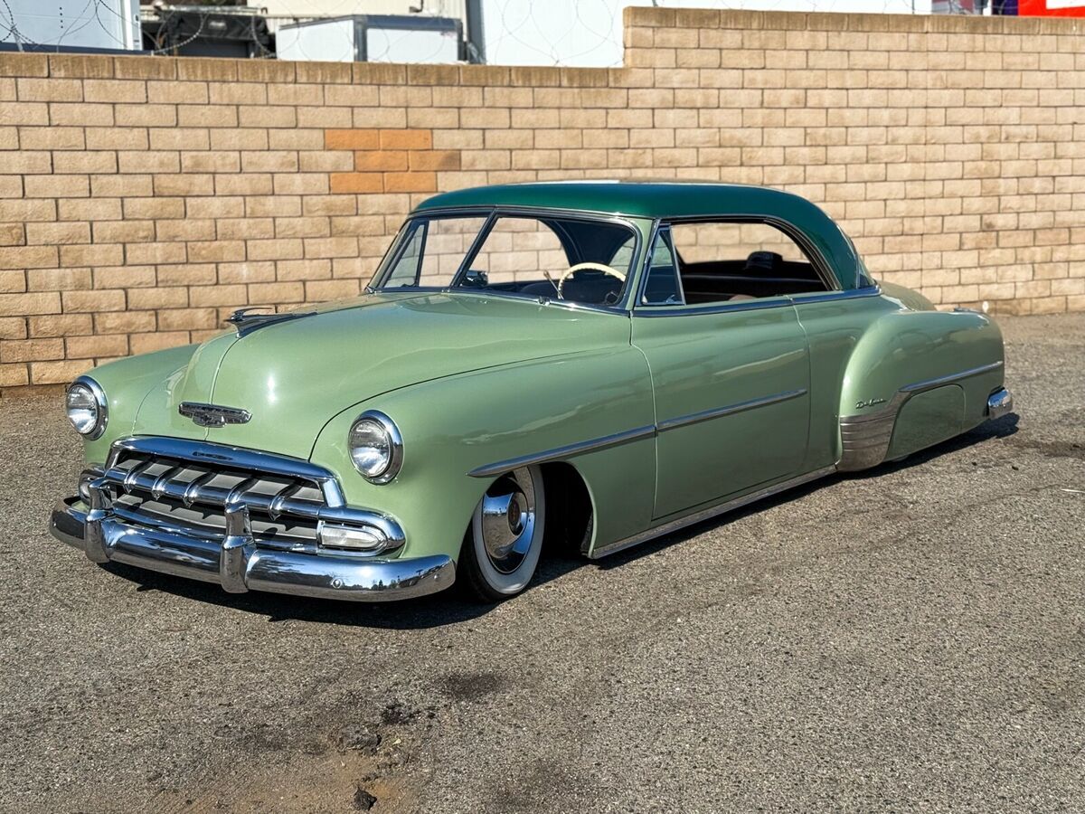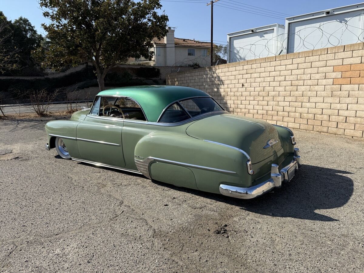 1952 Chevrolet Hardtop Belair Deluxe [Drivetrain] -292 straight 6 with dual carbs and shortened oil pan -new 350 trans, drive shaft, Camaro rear end and mustang gas tank (filler in trunk) -mustang II front end -new radiator and electric fan -new Vintage Air conditioning -accuair Bluetooth airbags *All work done by Jimenez Bros. [Body] -shaved door handles, gas door, antenna and other mouldings -custom rear bumper [Interior] -Gauges are converted to 12v and refurbished -LED lights inside and outside car along with keyless start and keyless door opening -new wiring -new carpet *Not perfect, but solid and fast! -Can’t Build for this Price