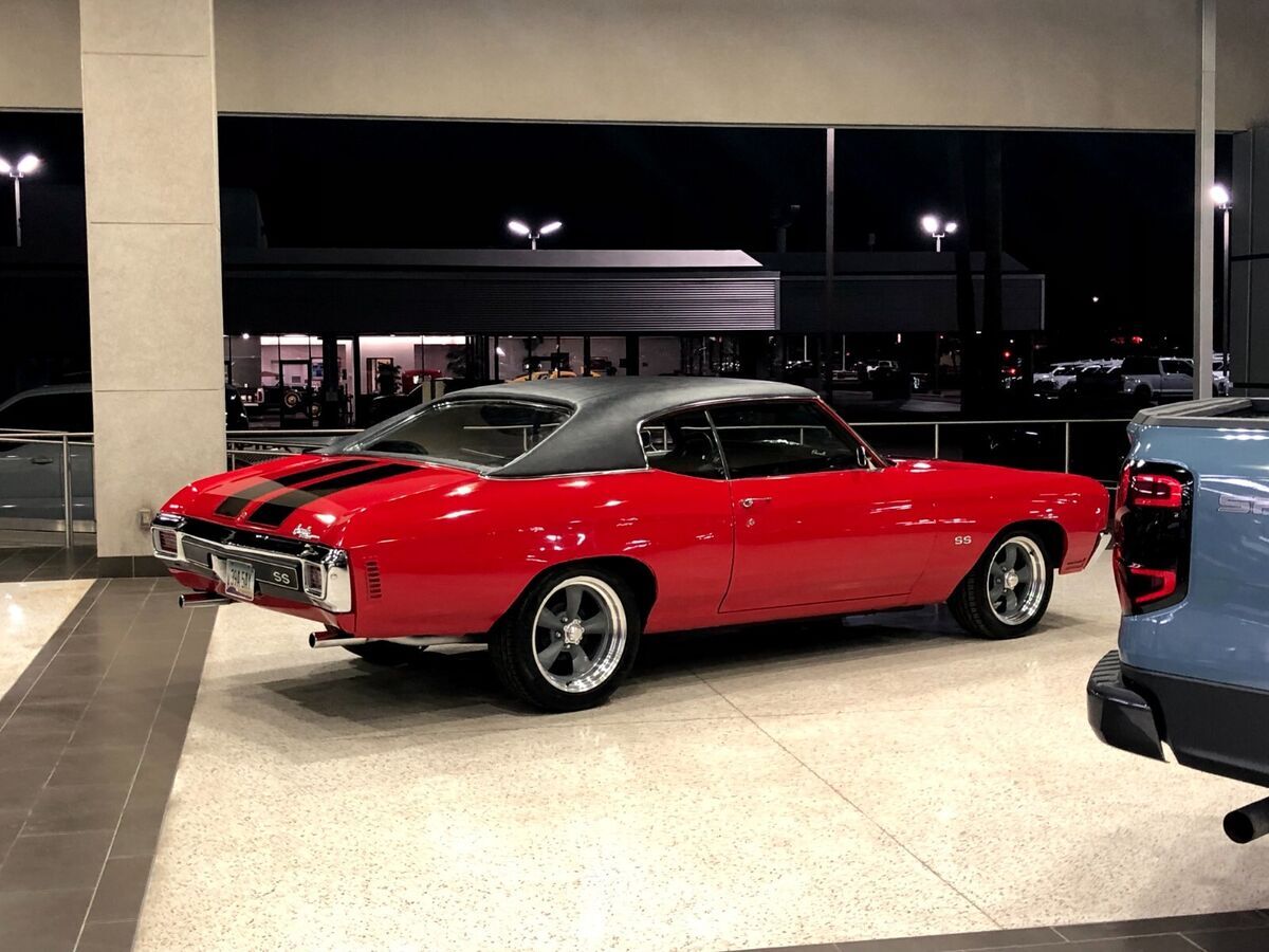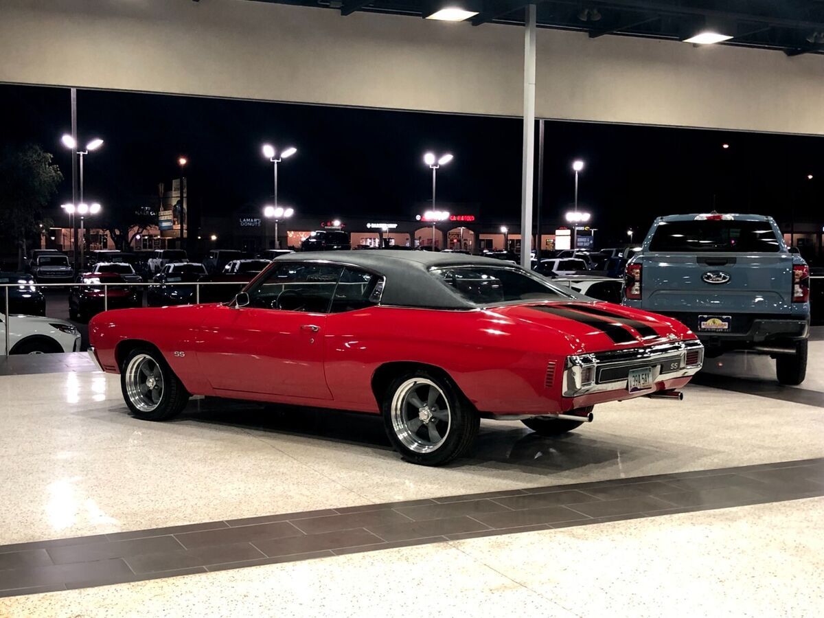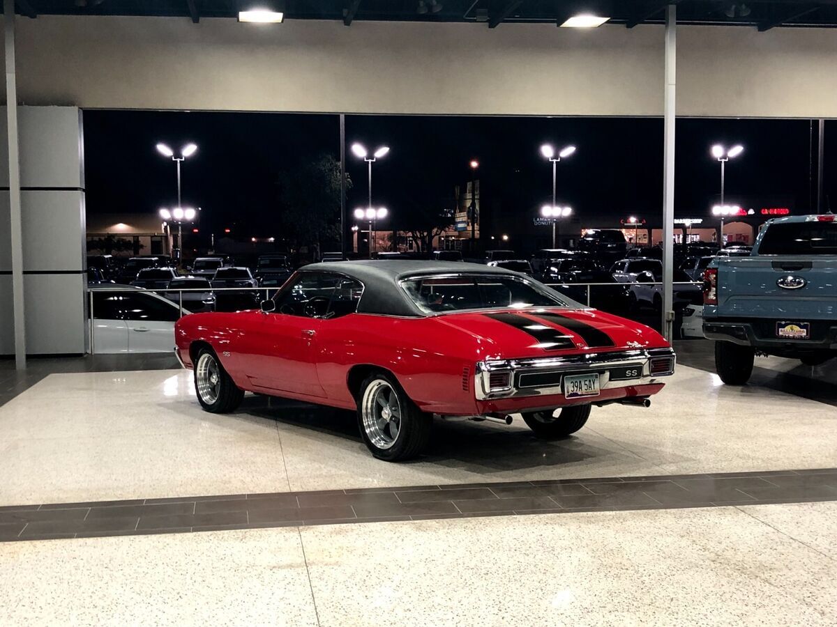 Welcome I am selling my 1970 Chevrolet Chevelle SS Tribute, let me start by saying this is a private sale, the photos were taken at a dealership, there are no sales tax or financing available, i am asking $41,900 or best offer, i am offering free shipping anywhere in the united states with a licensed insured and reputable company. This chevelle is absolutely gorgeous, done in gorgeous cranberry red with black ss racing stripes, it looks gorgeous when going down the road and has a gorgeous glow, wherever we take it it gets thumbs up and compliments, it is a joy to drive and truly captures the nostalgic feeling of driving a classic american muscle car. This Chevy was chosen to be redone in 2020 because of its amazing past, it has always been on the sunny west coast where it has cruised down the golden gate bridge, through the twists and turns of lombard street, and down famous highway 1 also known as "Pacific Coast Highway", the car is super solid throughout, it has never been in any accidents, and is turn key and ready to be enjoyed. It is powered by a V8 350 engine with some exciting upgrades, it features an upgraded 4 barrel 650 cfm edelbrock carburetor with matching edelbrock intake manifold, high performance long tube headers, dual flowmaster exhaust, and a great sounding stage 1 comp performance cam shaft, all tied to a turbo 350 automatic transmission, the engine and transmission were rebuilt in 2020 and currently the car runs fantastic, it starts right up runs well and shifts smoothly, and with its upgraded power steering and power brakes it is a breeze to drive. The wheels are stunning american racing torq thrust staggered diamond cut wheels wrapped around brand new z rated tires, they truly give the car a stunning and aggresive look. The interior features all black upholstery, showing nicely, and is very comfortable. Overall this chevelle is in nice shape, it runs well, has a great look, and would be a good investment for someone looking for a classic muscle car that will only appreciate over time. I am located in phoenix arizona, if you have any questions feel free to give me a call (480) 283-7459 My name is mark Below are photos of the vehicle, i also have a video i can send if you'd like to view it let me know, please be sure to view all of the photos and read my terms of sale below Thankyou for reading! < Terms of sale This vehicle has a clean arizona title, all viewing or inspections must be done before the auction ends, if you would like to view the car please me a call we can schedule that, you will not be dissapointed! i am offering free shipping anywhere in the usa, if you are out of the country please call me i would need to do some calling around to see if i can help, full payment will be due within 3 days of auction ending, if you need more time then that a $1000 non refundable deposit will be due, the vehicle will not leave me possession until all funds are cleared by the bank, i will only accept cash in person a bank wire transfer or a certifed or cashiers check which must clear my bank before the vehicle leaves, these terms are non negotiable, no escrow or any such will be accepted, i am selling this vehicle in as is condition and offer no guarentees or warrantys of any kind