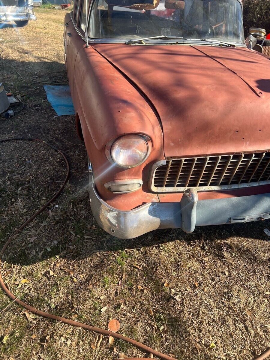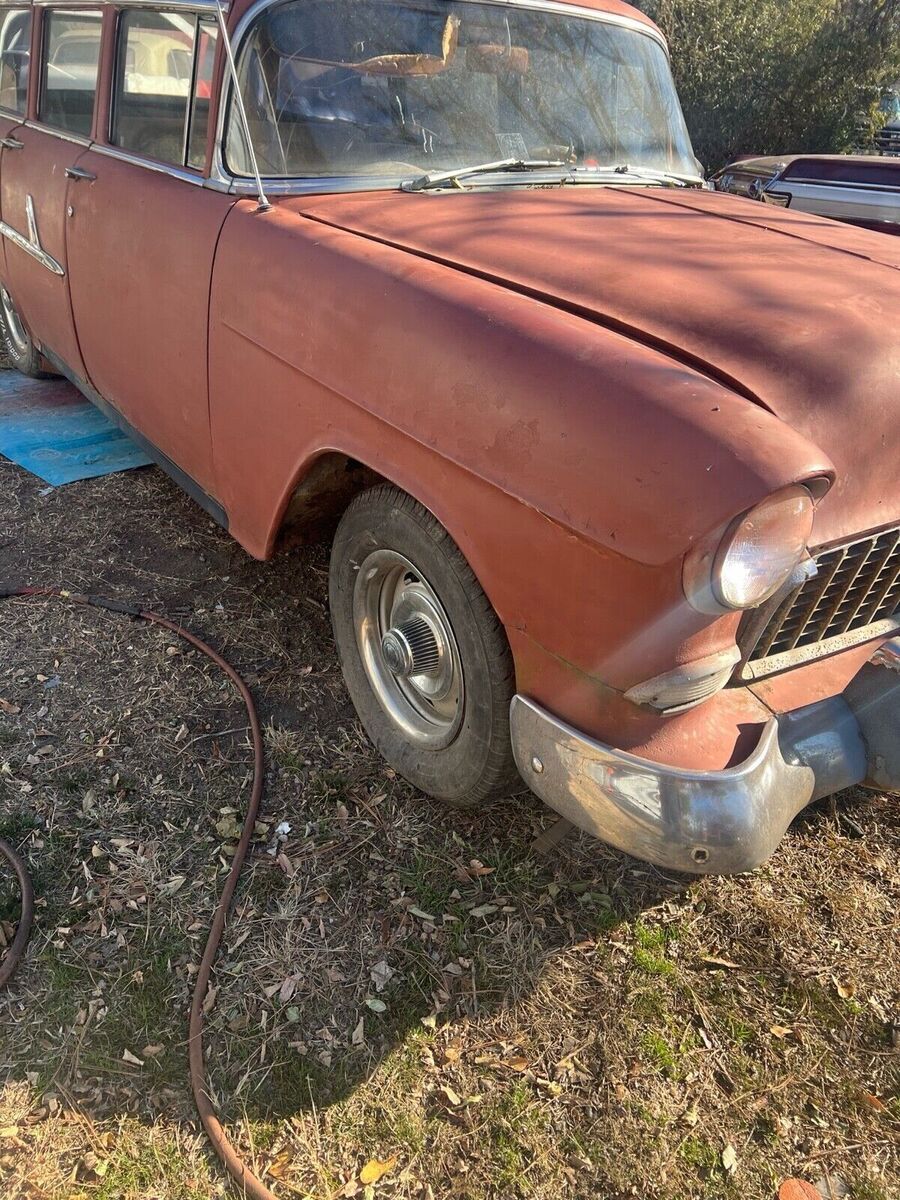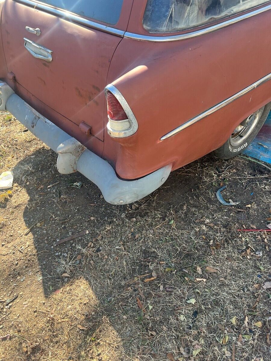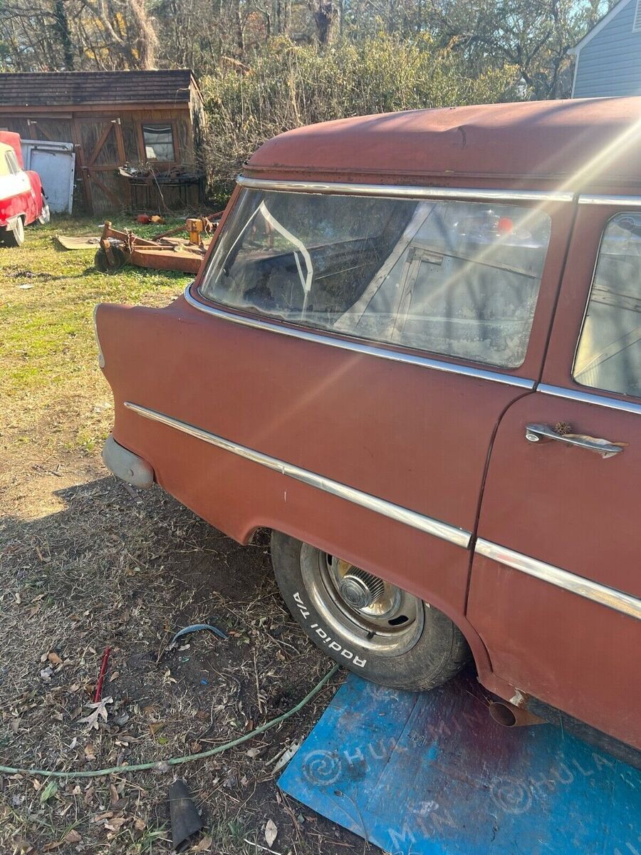 I have a 55 Chevy 210 four-door station wagon This would be a decent project car It has a small block Chevy 350 with a manual three speed in the floor Has a brand new gas tank and starts right up Has dual exhaust with headers The car does not have any brakes Call rolls on four 15” Chevy rally wheels It has had one rocker replaced on the passenger side. The rest of the body is decent, but will need work. It has the original front and rear seat in it The spare tire well is decent And not rusted out I have a video, but I could not load it to the listing of the car running There has been some light patchwork on the Floor pans If you have any questions, please ask I’ll get back to you as soon as possible There’s a nonrefundable $500 deposit do Within 48 hours of hitting the buy it now
