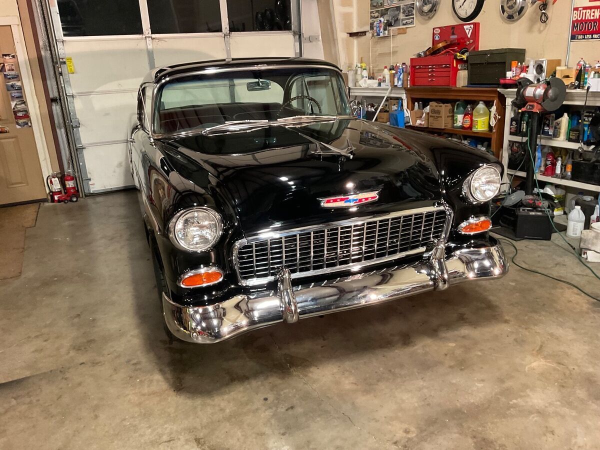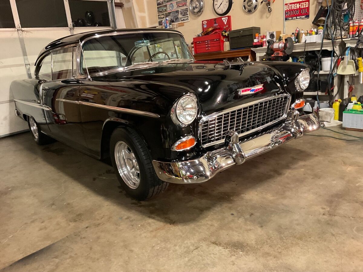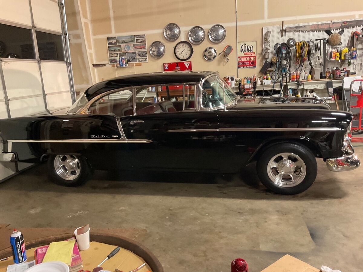 This listing is for a 1955, Bel-Air 150/210 completely restored frame off restoration Onyx black laser, straight body red interior 350/300 HP dino less than 2500 miles on rebuild engine, ceramic headers, aluminum intake edelbrock carburetor, power, front disc brakes Boyd Coddington aluminum wheels, BF Goodrich, tires, front end and brakes, completely rebuilt heater gauges Flowmaster exhaust exhaust all chrome and stainless has been removed and redone runs and drives excellent delivery is available, but not included in the price questions three six 0 306 4023 Jack no texting