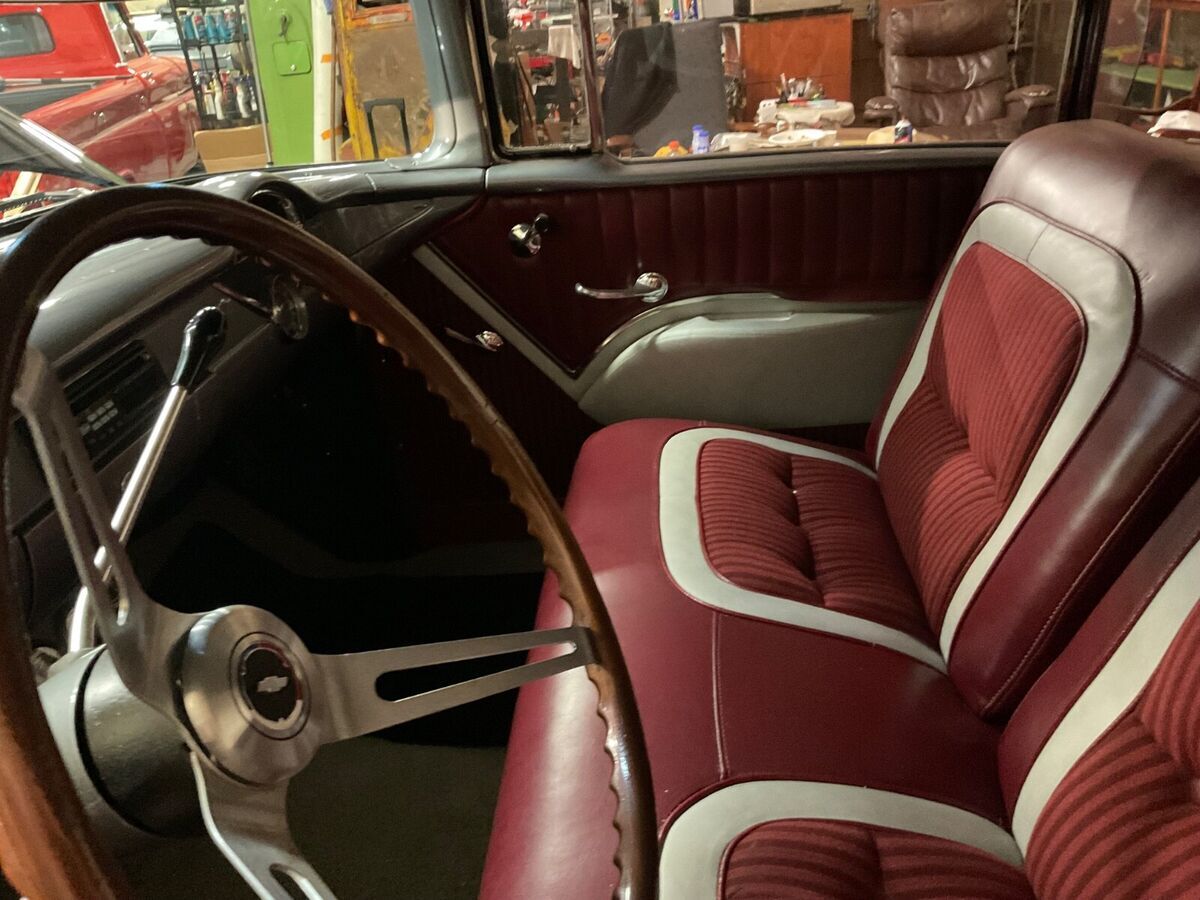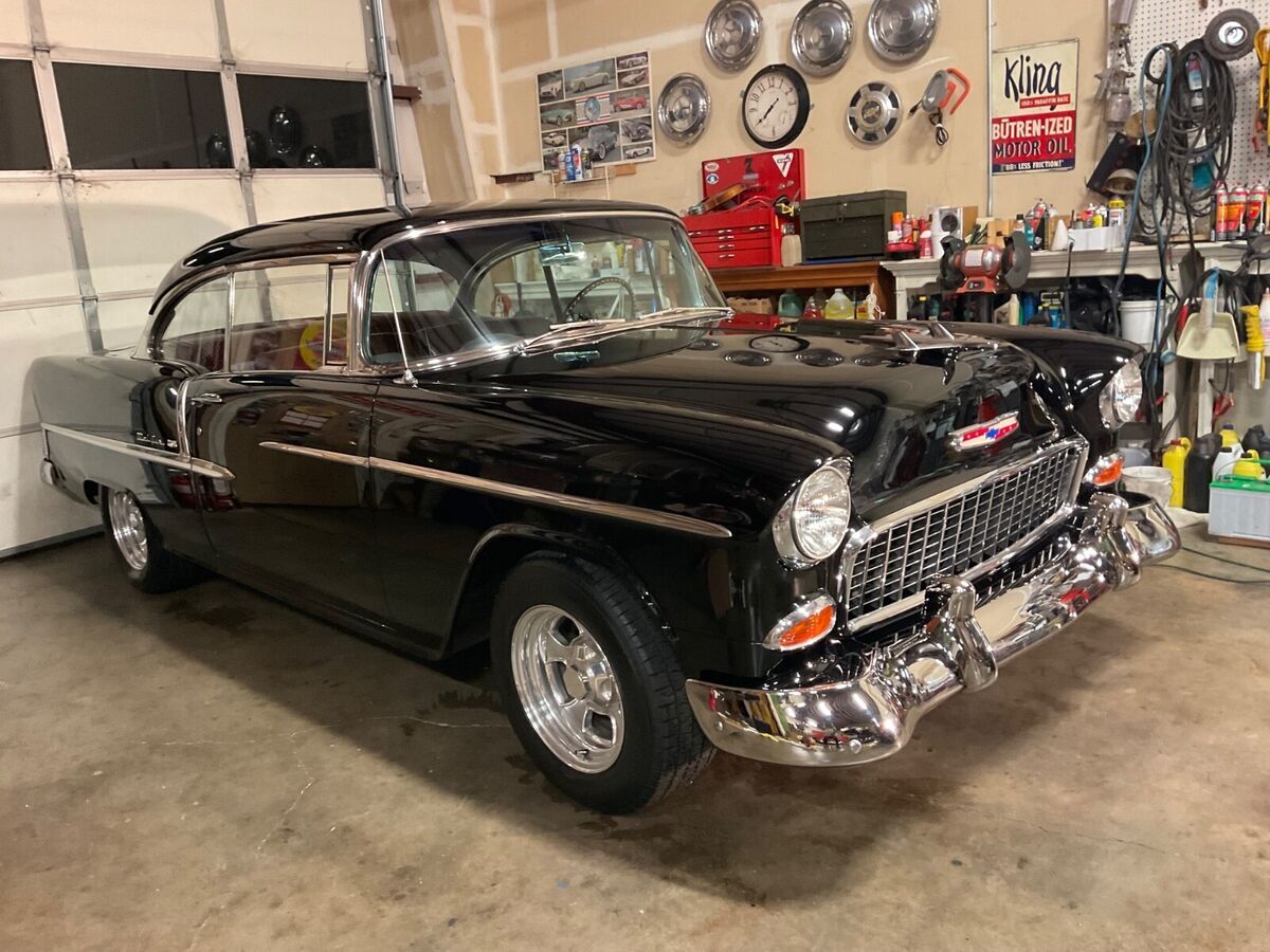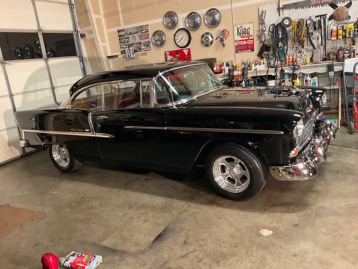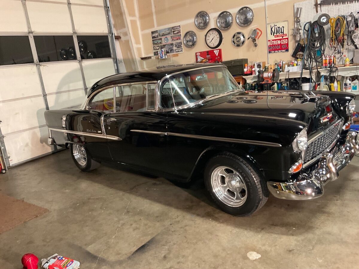This listing is for a 1955, Bel-Air 150/210 completely restored frame off restoration Onyx black laser, straight body red interior 350/300 HP dino less than 2500 miles on rebuild engine, ceramic headers, aluminum intake edelbrock carburetor, power, front disc brakes Boyd Coddington aluminum wheels, BF Goodrich, tires, front end and brakes, completely rebuilt heater gauges Flowmaster exhaust exhaust all chrome and stainless has been removed and redone runs and drives excellent delivery is available, but not included in the price questions three six 0 306 4023 Jack no texting