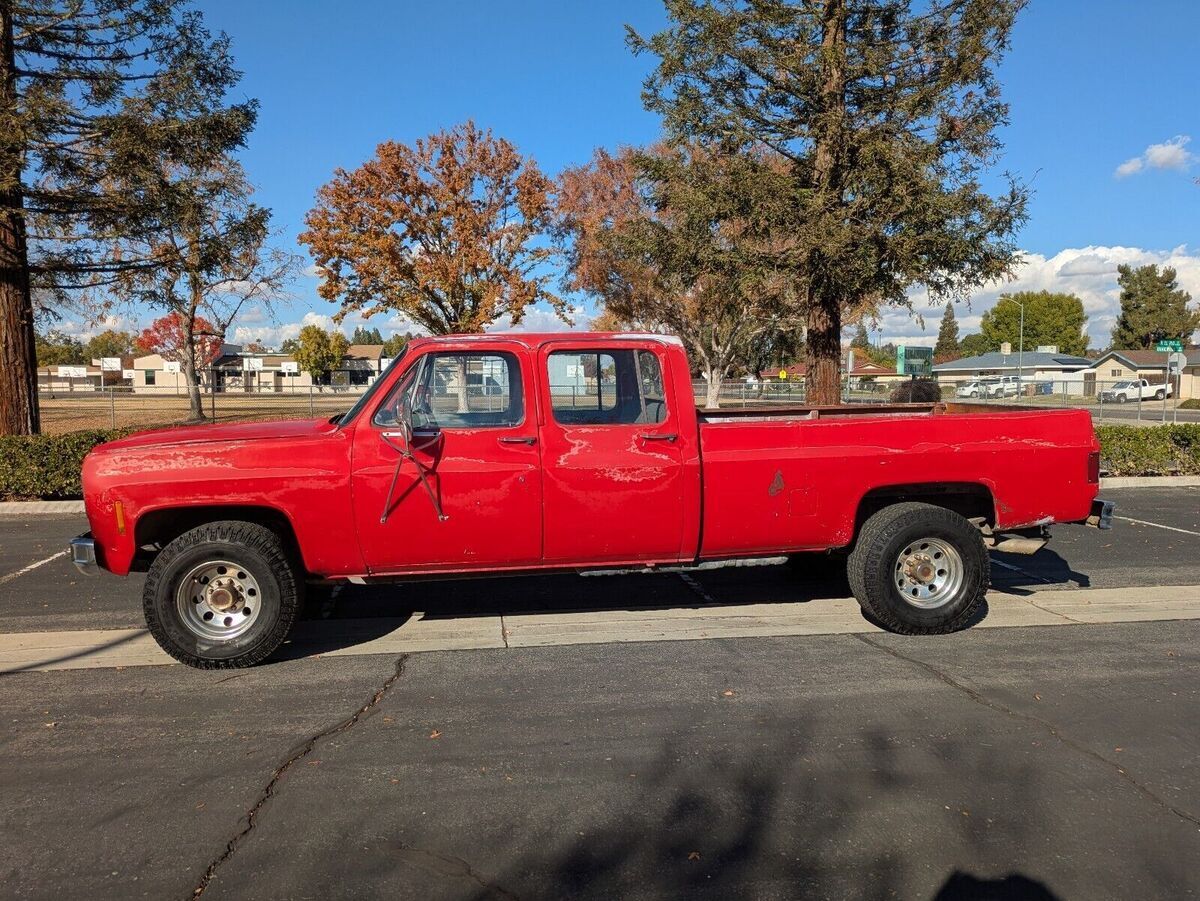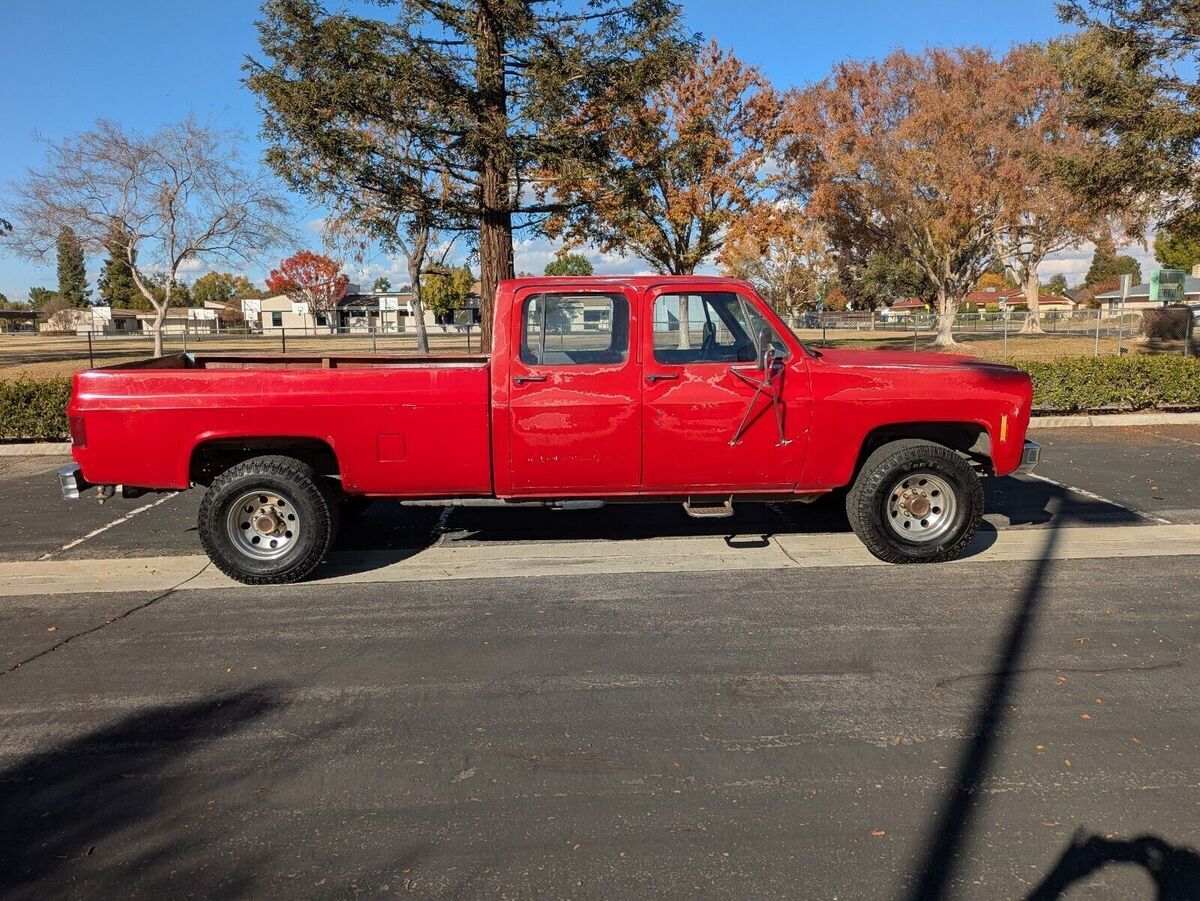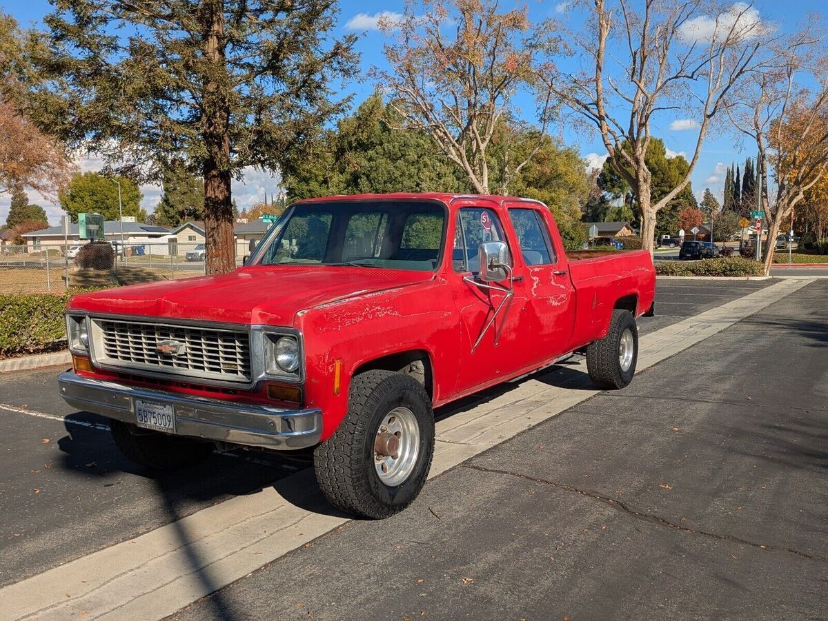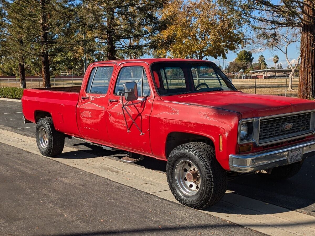 Rare opportunity to acquire a classic 1973 Chevy Crew Cab truck that has served as my reliable daily driver for over 20 years. Truck was repainted red some years ago and could do with redoing. It is 2WD, not 4x4. It has a 3" body lift, 33" Vortrac all terrain tires on 16.5" alloy rims, Edelbrock carburetor, headers and custom exhaust. This classic pickup runs and drives great, it does drop a little oil but that hasn't stopped it from getting me where I need to go including a cross country trip from California to North Carolina and back. If you're looking for a solid classic truck with seating for six that needs a little TLC this could be the one for you!