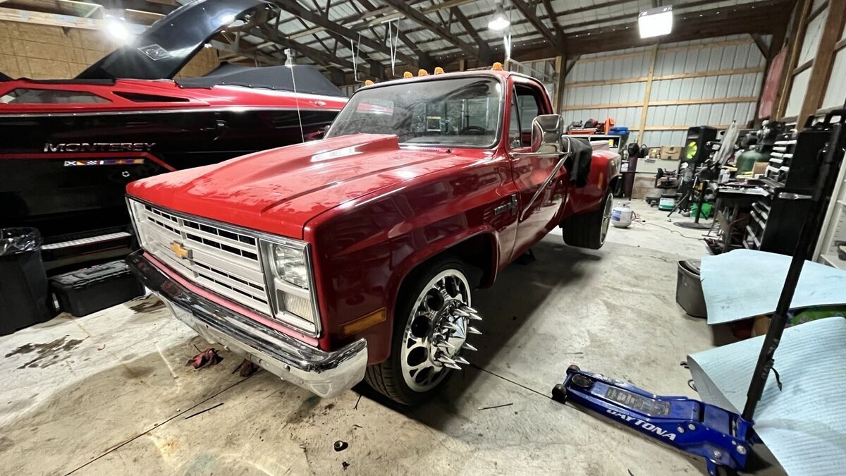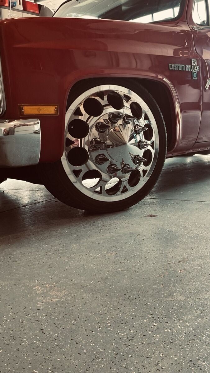 1985 Dually modified to run 24” super singles. (I have the original rearend). Lowered with spindles and springs in front, notched and flipped in rear.
