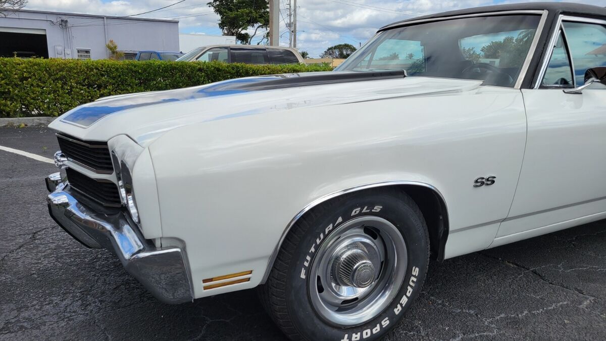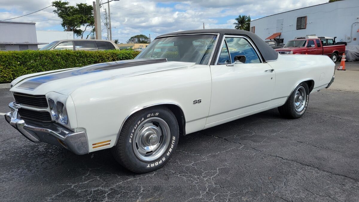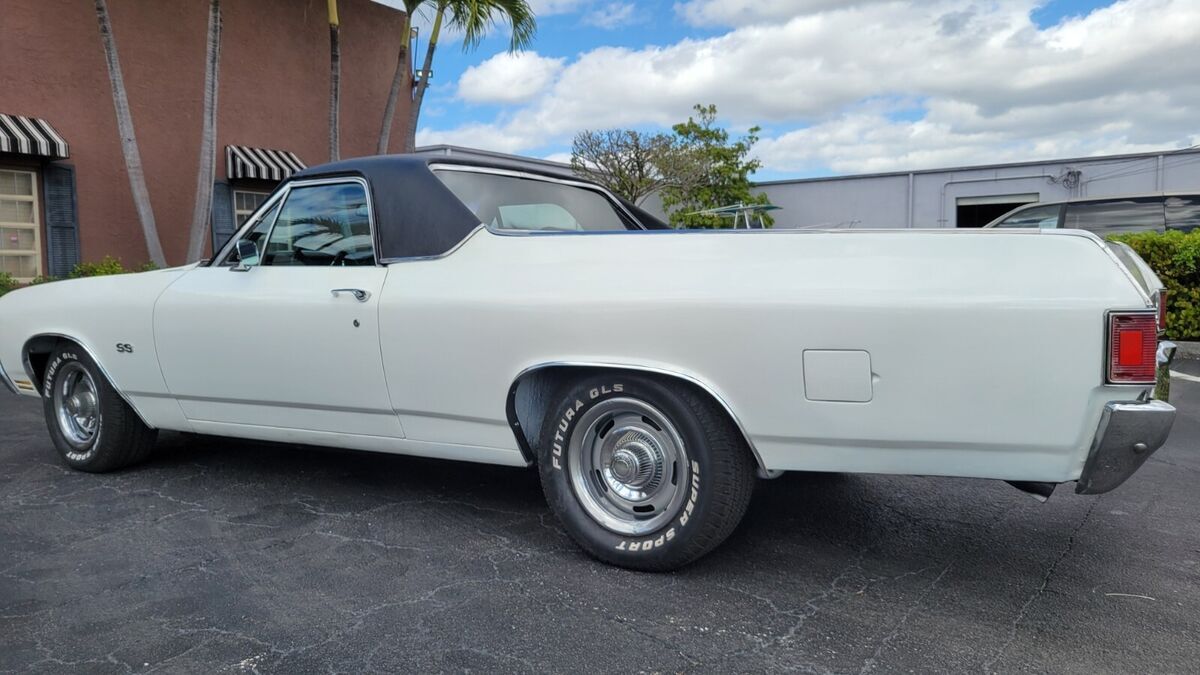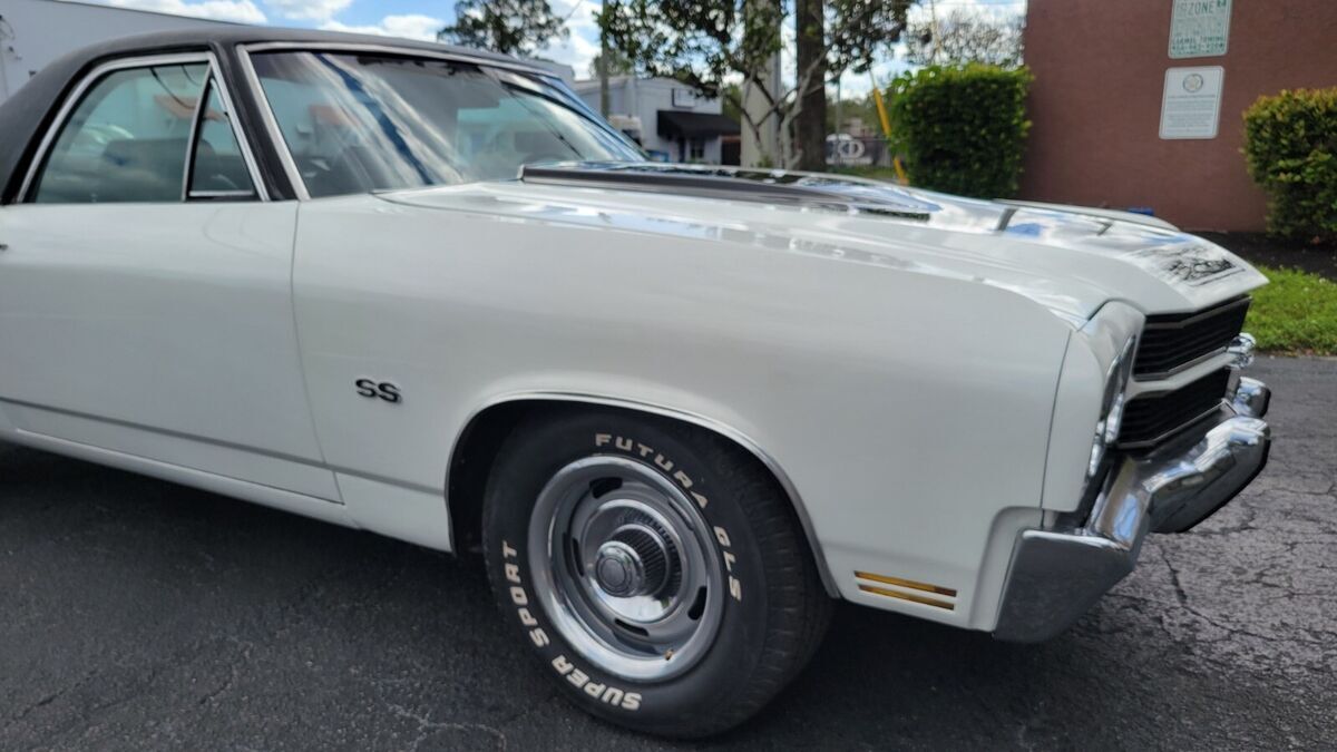 1970 EL CAMINO 396BB A TRUE SS CAR WHITE PAINT BLACK INTERIOR BUCKET SEATS CONSOLE OEM WHEEL STOCK ENGINE CORRECT YEAR NON MATCHING NUMBERS DUAL EXHAUST AUTO TRANS POWER STEERING POWER BRAKES VERY GOOD BUMPERS AND CHROME/STAINLESS SOLID TRUNK FLOOR AND UNDER CARRIAGE CORRECT SS RALLY WHEELS RUNS AND DRIVES INTERIOR BUCKET SEATS CONSOLE AM RADIO ENGINE AUTO TRANS AIR CONDITIONING CAR (ALL THERE), POWER STEERING POWER DISC BRAKES MANUAL WINDOWS AND LOCKS RALLY WHEELS SOLID FLOORS, SOME SURFACE RUST IN THE UNDER CARRIAGE.WE OFFER COLLECTOR AUTO LOANS AND WORLD WIDE TRANSPORTFREE SHIPPING ONLY WITH BUY IT NOW OPTION AND WITHIN THE CONTINENTAL USA ONLY FOR FULL PRICE NO BEST OFFER.NON Matching numbers 396 CI V-8 engine (no build sheet) ENGINE CORRECT YEAR NO MATCHING NUMBERSTH-400 transmissionPower steeringFront disc brakesSoft Ray tinted windshieldRally II wheelsDual Flow-master exhaustCenter console and horseshoe shifter is there but needs to be installed/connectedSPECIFICATIONSENGINEV-8TRANSMISSION:Automatic