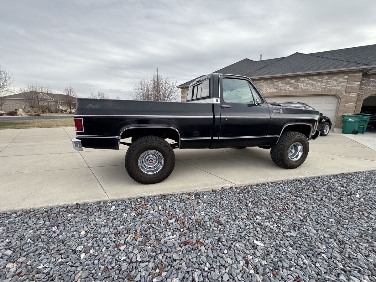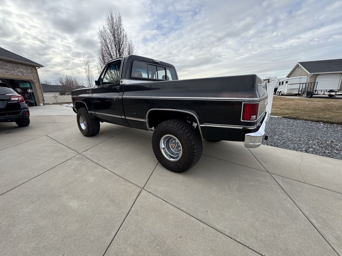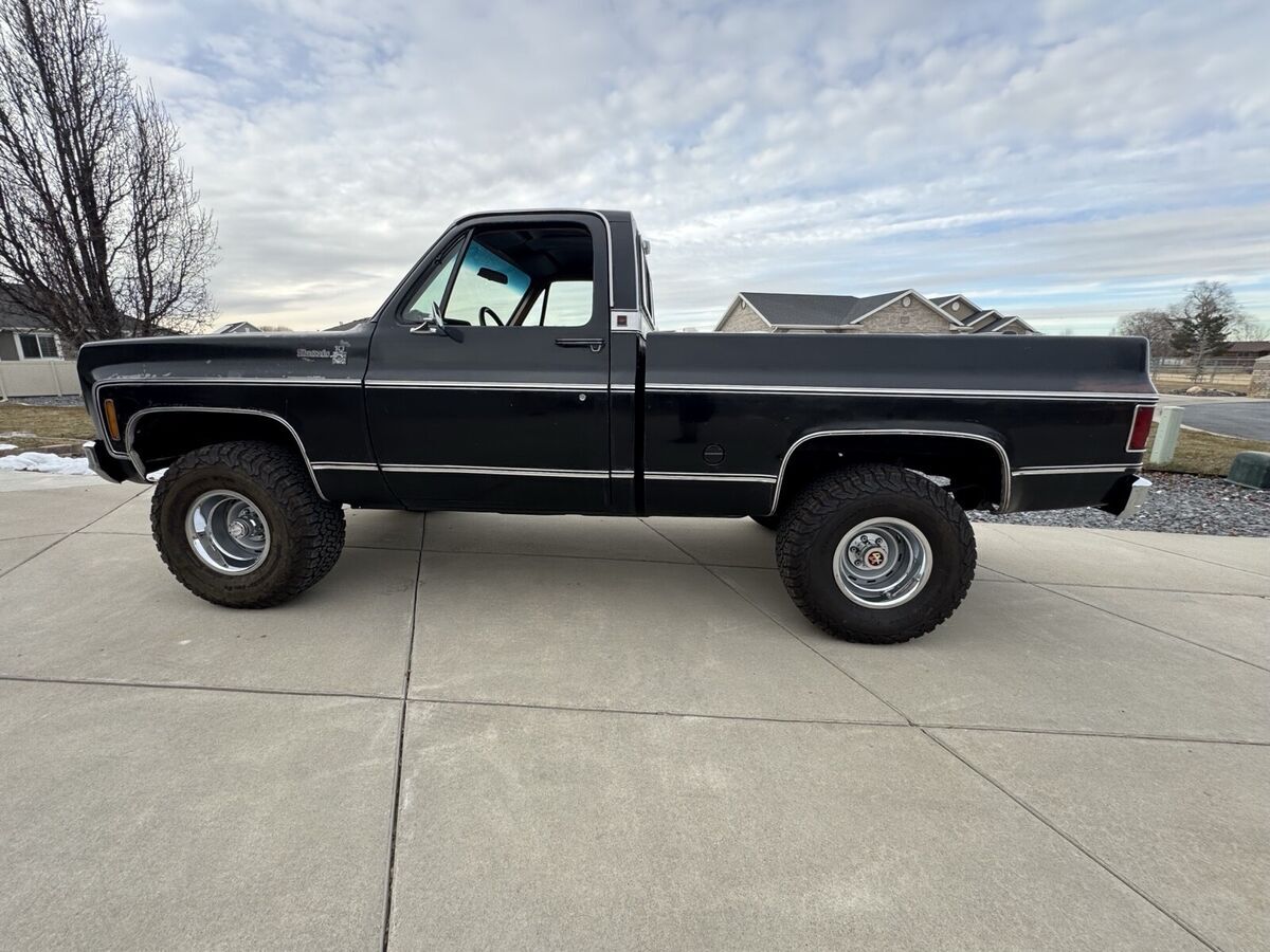 Totally rust free, older respray paint in original black has clear coat flaking off fenders. But a solid truck that runs great 350/ 4 speed manual transmission. Restored rally wheels on it 33” AT tires. Factory tach truck. All new interior. Heat works great. Everything on this truck works as it should.