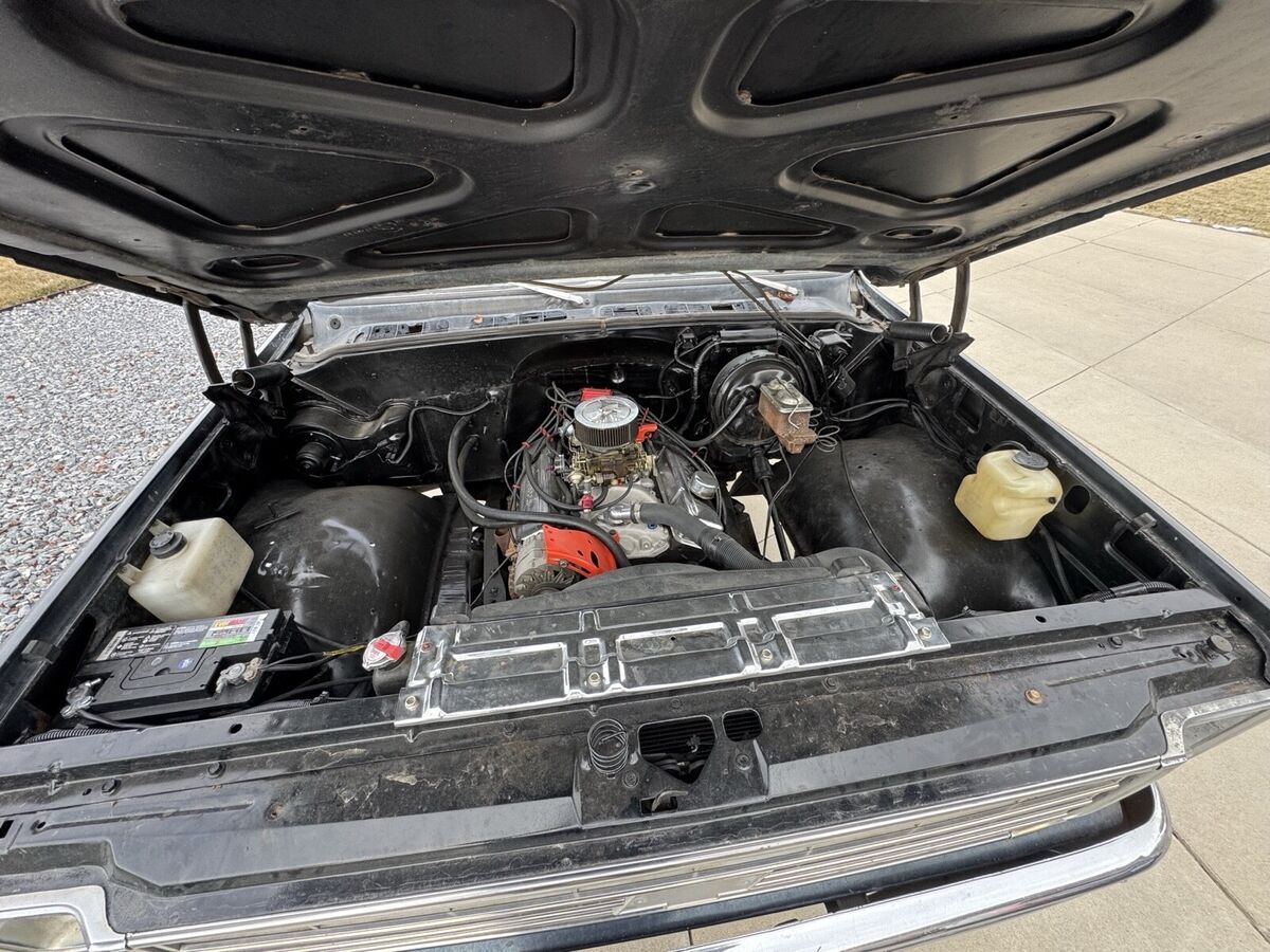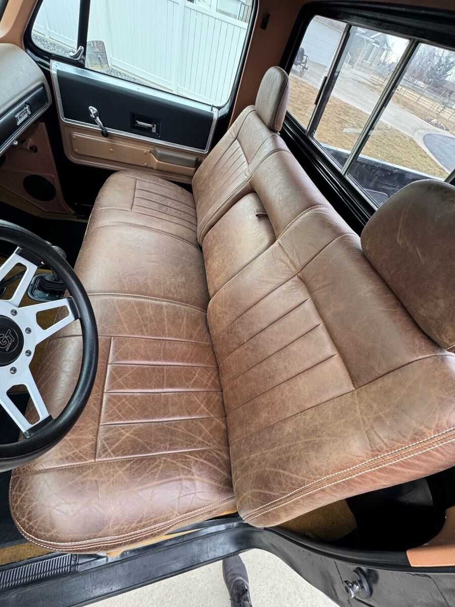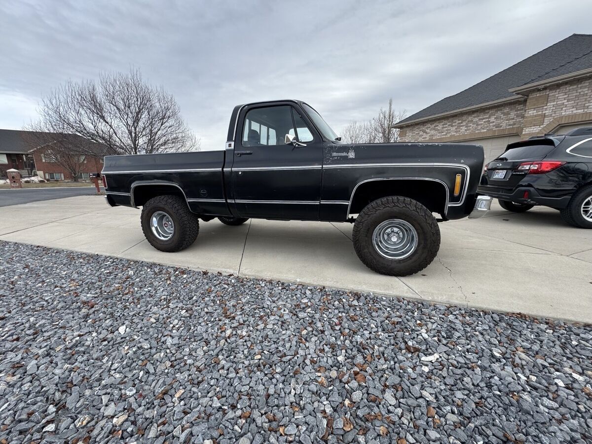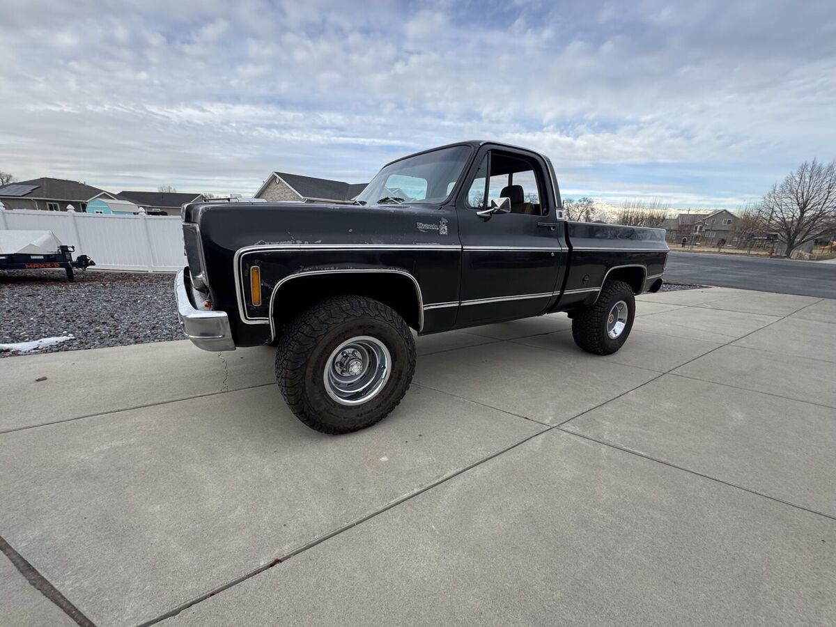 Totally rust free, older respray paint in original black has clear coat flaking off fenders. But a solid truck that runs great 350/ 4 speed manual transmission. Restored rally wheels on it 33” AT tires. Factory tach truck. All new interior. Heat works great. Everything on this truck works as it should.