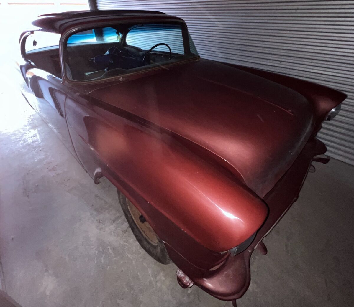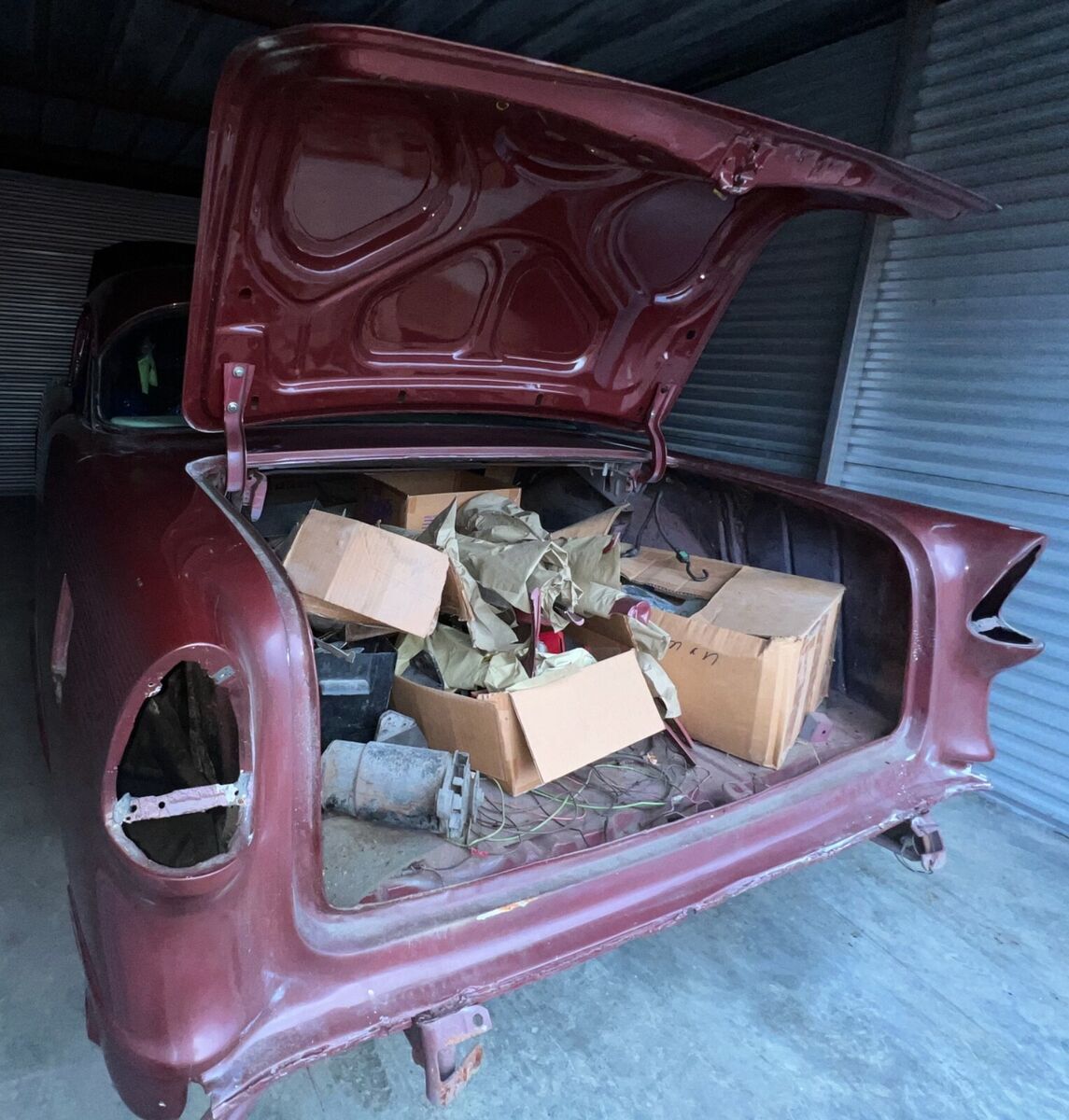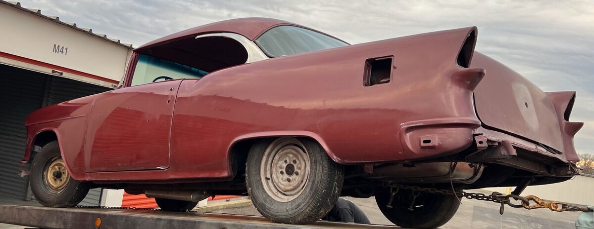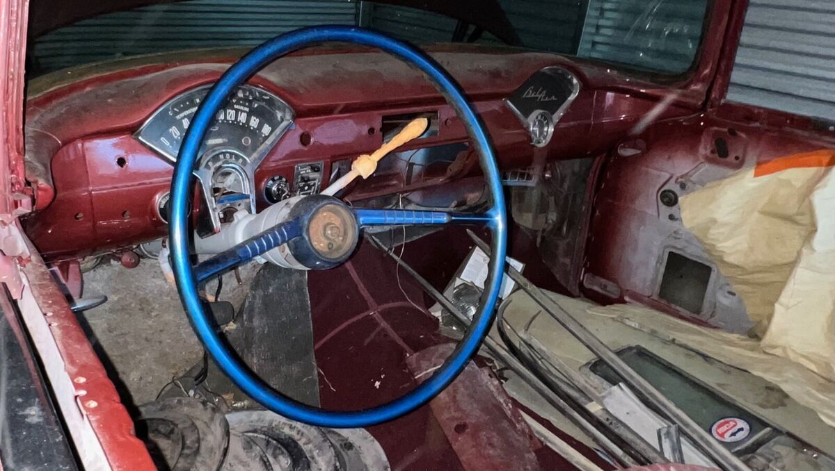 In 1955 exported to Bremerhaven, West Germany and sold by GM dealer Auto Staiger GmbH in Stuttgart. In 1969, the car was purchased from its previous owner (said to be a farmer) by US tank commander Chief Warrant Officer Larry S. Griffaw who was stationed there. At that time, the new owner installed a 327 V8 engine and a replacement windshield that he received via military transport channels. During the 10 years the new buyer was in Germany for the military, he conducted research and met the car dealer who originally sold it. He also accumulated numerous photos and documents relevant to this car. In 1972 it underwent it's first restoration at the Army Base Craft Shop in Fulda, West Germany. In 1979, the Commander returned to the US, making some changes to the car including sealed beam headlights and MPH speedometer to replace the KPH original. In 1974 it was restored a second time in Imperial Missouri. It was exposed to a garage fire in 1982 in Lawton, Oklahoma after which a third restoration was completed in1983 after which it competed in the first and second ISCA car shows (1983-84). In 1986, Larry Griffaw and members of his tank inspection team returned to Auto Staiger GmbH in Stuttgart for a visit, posing for pictures in front. At some point during the restorations, it was returned to the correct 265 with Power Glide. The car was since stripped to bare metal and repainted in the original Dusk Rose base color.