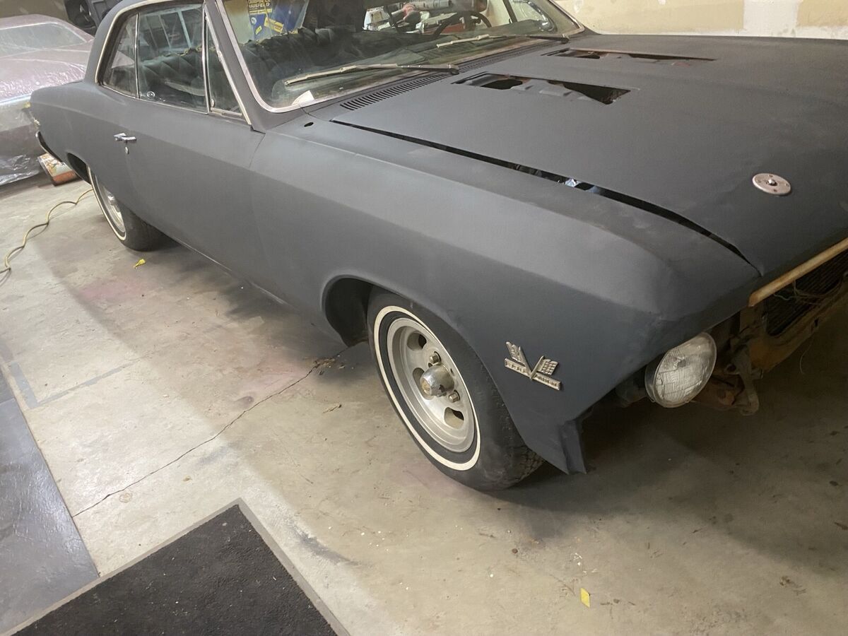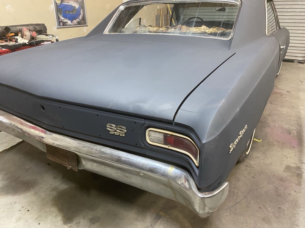 1966 Chevelle SS with a numbers matching 396 and 4 speed transmission and 12 bol. This is a New Mexico car with very little rust and is a solid project. The motor turns freely. The original interior is under the seat cover. The floors and trunk are perfect.