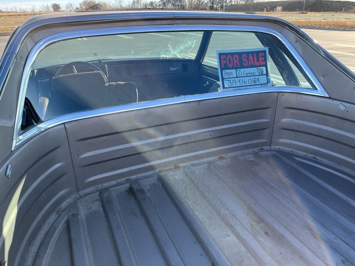 1984 Chevy El Camino 3.8L V6 Coupe Utility Pickup. Rear-wheel-drive, G-Body. • Clean Title • Runs well & Drives great • Please see pictures for accurate visual representations of the vehicle’s current condition, including normal wear and tear, and any notable flaws or damage which will also be noted in this description. • The Frame is solid, and in excellent condition with minimal surface rust, no holes or weak areas, and no repairs have been done on the frame. • Front windshield is cracked on the passenger side, as seen in pictures, does not leak water but needs replaced eventually. • Heat and AC both need some minor repairs. The heat doesn’t blow but gets warm over time, and the ac system is not hooked up to run, missing a belt and some refrigerant lines. • The Gas Guage has a bad ground wire that needs attention. • Needs a new Ignition actuator, which is the little plastic gear piece that Actuates the Column Ignition Switch Rod to start it. It starts with a screw driver at the moment. • Needs the ignition lock cylinder with a key. • The harmonic balancer needs the rubber seal that seats around the front of it that is currently missing, which in turn causes it to make a knocking noise briefly and only right after you start it, then the knocking goes away. It needs the rubber seal that is currently missing, which that and the ignition parts are all $10-$20 parts. • Fully functional, working as they should, air shocks were installed in the rear recently. • I’ve got a mechanic that can do the ignition repair and the front main seal on the harmonic balancer, get the heat going, and the gas guage working. It’s just a matter of matching schedules with him and having the time to do it. ***With that said I’m selling it AS IT IS currently in the condition it’s in, described here and seen in the pictures. I’d like to get some small repairs done to fix some of the minor discrepancies listed in the description, between now and when it sells. If I do get any of it done I will update here in the description. *** Selling AS IS in its current condition. Please note that it Starts right up, Runs Great and Drives Great despite having a few minor mechanical repairs needed, all of which that are known are listed in this description. Shipping cost and arrangements are the buyers full responsibility. I will deliver up to 500 miles distance for a charged rate to be agreed upon between buyer and seller, and paid for separately at the time of vehicle purchase.