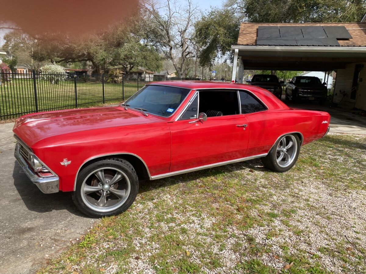 1966 Chevelle Malibu One Owner(prior to me). I bought this a year ago from the son of the original owner who parked it in his garage for 12 years after the original owner passed away. Original owner installed a crate 350 and 4 speed manual transmission (was originally 3 on tree). He Painted it 20 yeas ago and paint is tired but serviceable. No rust. New tires, wheels, complete exhaust, partially installed new “retro” stereo system. Interior is nice with bucket seats and good carpet. A few lights here and there don’t work but most everything works, even the clock. Manual steering and brakes. Beautiful car, not many in this condition. Car runs and drives strong. I’ve got too many toys and thinning the herd.