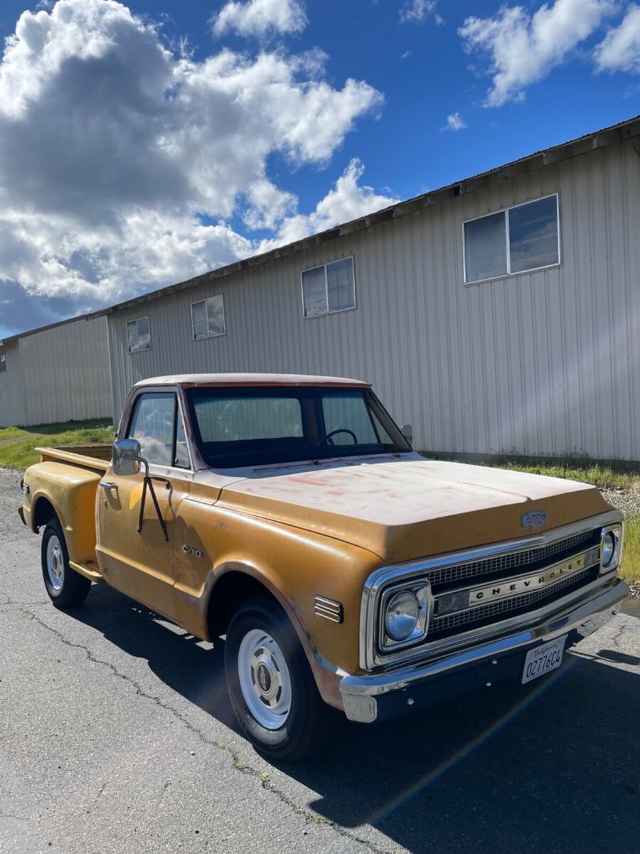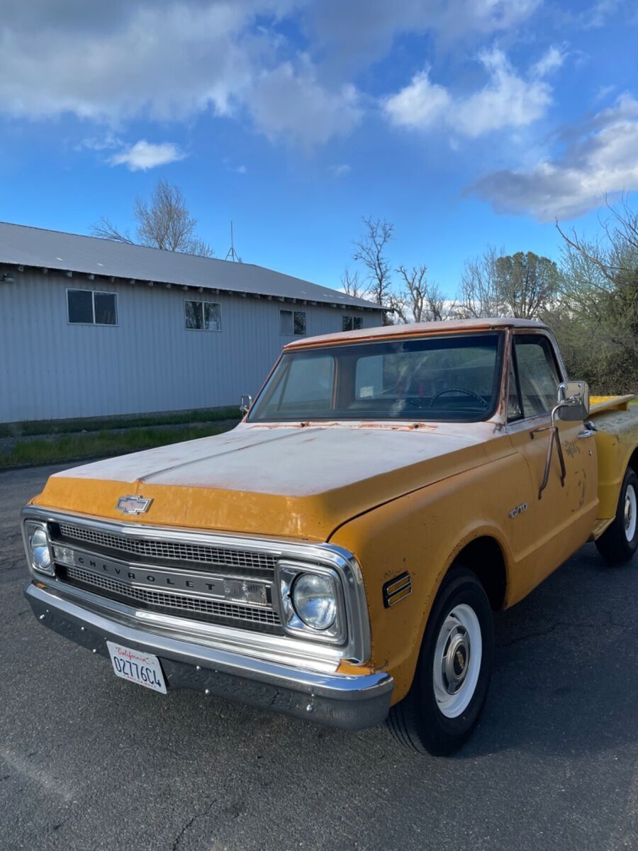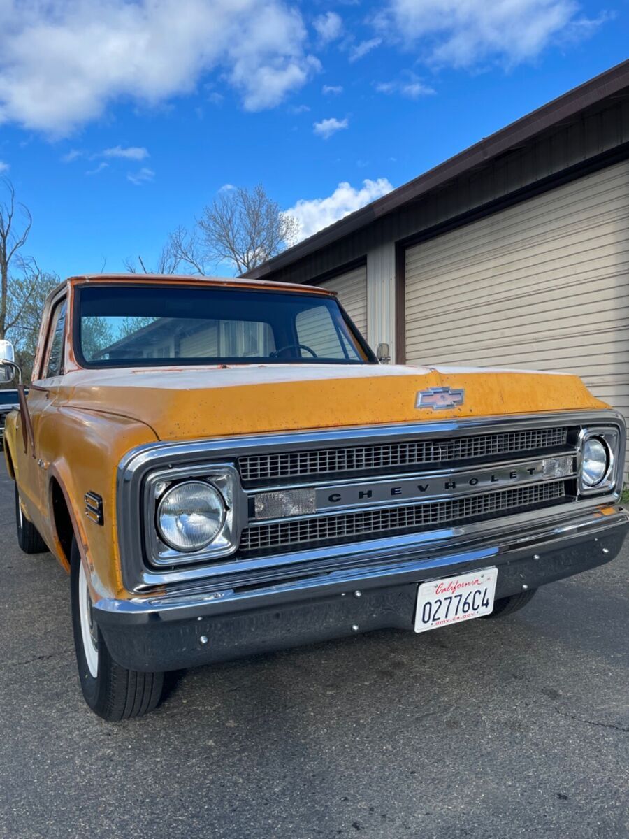 1970 Chevy C10 factory shortbed stepside 2wd pickup. Original California built survivor sold originally in Fresno, Ca. Owned by an elderly gentlemen before me for over 30 years and only used on the ranch. Original Chevy numbers matching cab and original frame. Factory Hugger Orange truck only had one repaint in 55 years. Only 98,000 original miles! Zero rust anywhere in this truck. Has original rockers and cab corners, no patches anywhere. Strong running rebuilt non numbers matching 327 small block and original numbers matchingTH350 3 speed automatic. Factory numbers matching 4:11 12 bolt rearend. I just went through the truck from front to rear and fully detailed the chassis and engine bay. Been converted to 5 lug discs up front all new brake parts front to rear including rotor, calipers, brake hoses, shoes, wheel cylinders, brake hardware and new drums. New windshield, upholstery, carpet, door sill plates, dash pad, gauge cluster, steering wheel, front and rear bumpers, inner and outer grille, tires, etc. too much to list. Clean California title in my name currently registered turnkey. I do not accept CARAMEL as a form of payment. Payment to be made via bank wire transfer or cash in person only. Call Dean at (530)953-6092 for more information.