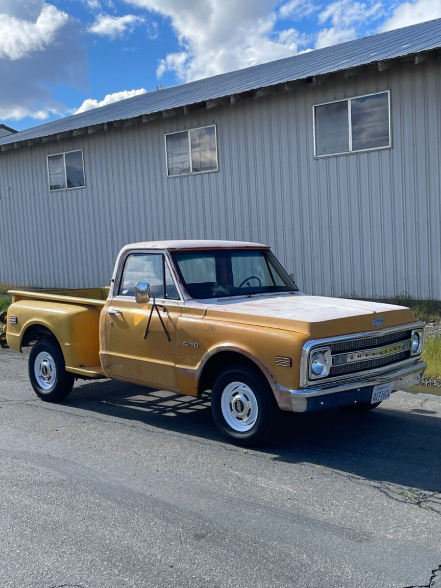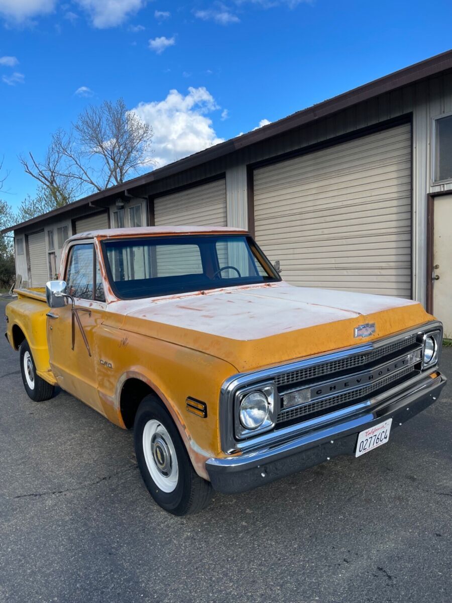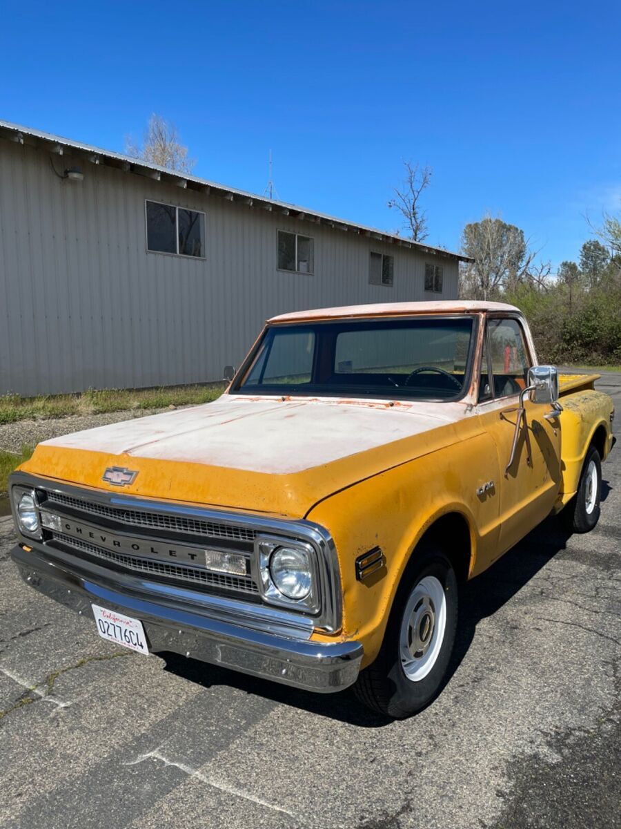 1970 Chevy C10 factory shortbed stepside 2wd pickup. Original California built survivor sold originally in Fresno, Ca. Owned by an elderly gentlemen before me for over 30 years and only used on the ranch. Original Chevy numbers matching cab and original frame. Factory Hugger Orange truck only had one repaint in 55 years. Only 98,000 original miles! Zero rust anywhere in this truck. Has original rockers and cab corners, no patches anywhere. Strong running rebuilt non numbers matching 327 small block and original numbers matchingTH350 3 speed automatic. Factory numbers matching 4:11 12 bolt rearend. I just went through the truck from front to rear and fully detailed the chassis and engine bay. Been converted to 5 lug discs up front all new brake parts front to rear including rotor, calipers, brake hoses, shoes, wheel cylinders, brake hardware and new drums. New windshield, upholstery, carpet, door sill plates, dash pad, gauge cluster, steering wheel, front and rear bumpers, inner and outer grille, tires, etc. too much to list. Clean California title in my name currently registered turnkey. I do not accept CARAMEL as a form of payment. Payment to be made via bank wire transfer or cash in person only. Call Dean at (530)953-6092 for more information.