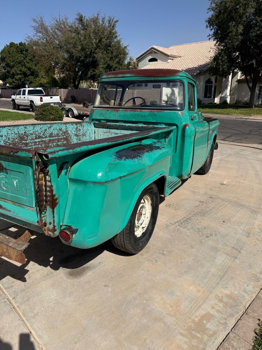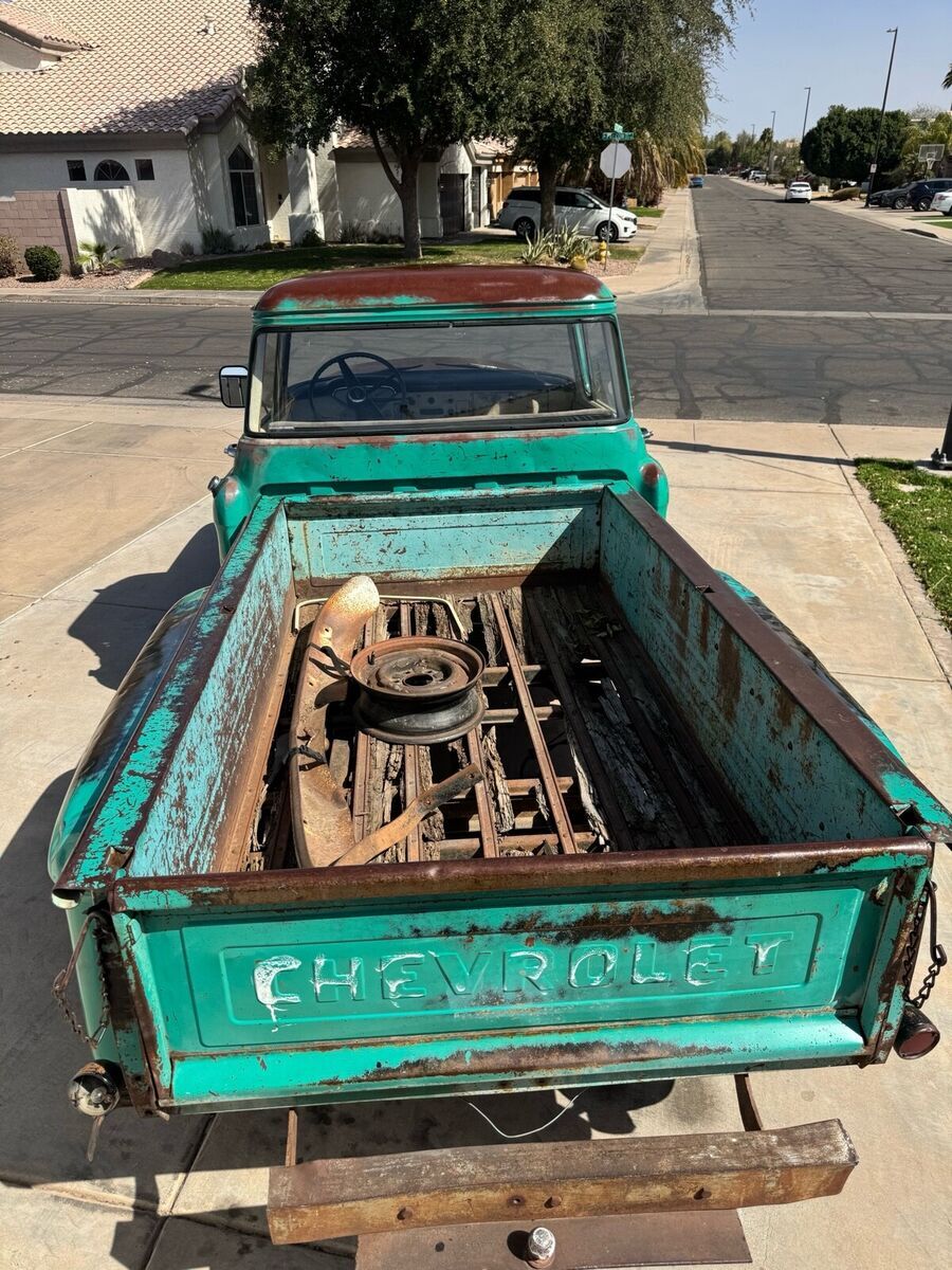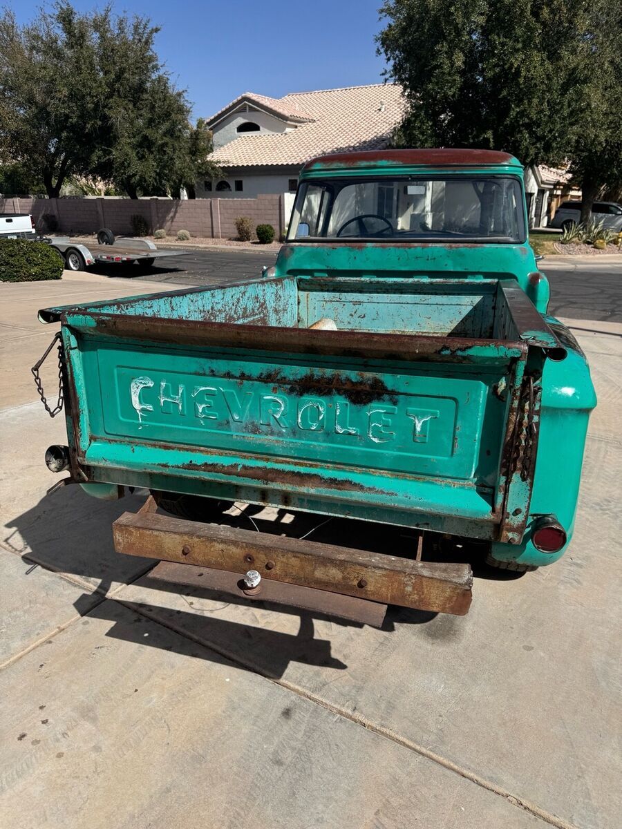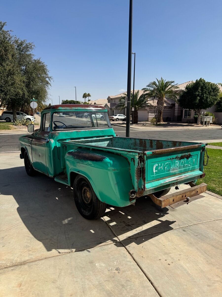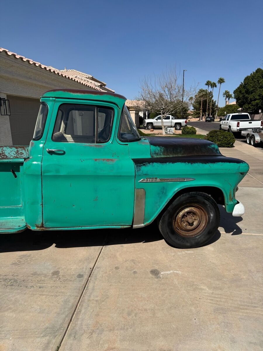 1955 Chevy pickup in factory Galway Green half ton big back window stepside in-line six motor manual 3 on the column This truck remains in its factory original state, including the highly desirable original patina. Clean Montana title. Vehicle is located in Gilbert, Arizona This vehicle starts and drives short distances due to brakes not working at this time. Shift linkage needs to be adjusted as well. New Fuel cell. This truck is 70 years old and does include various bumps and scratches as seen in the pictures All glass is original, including the wood in the bed. Also, this truck does not have the wheel cut out on the driver rear fender. Metal work has been completed professionally on both bottom front fenders. To view motor running copy and paste this link below : https://www.instagram.com/reel/DGq97AgSBW7/?igsh=MW5kYjBjaTV4MzcwdA==
