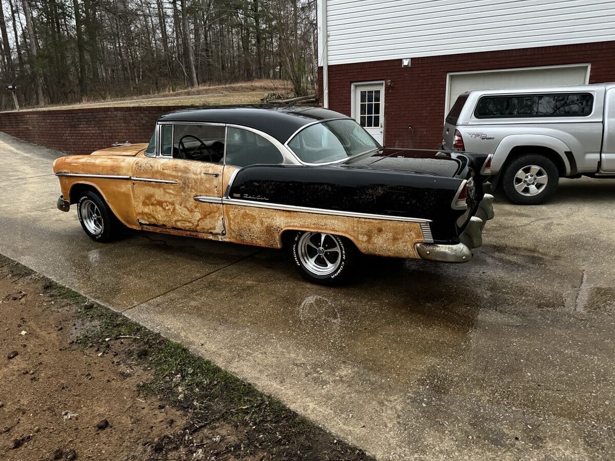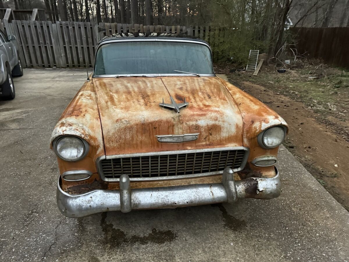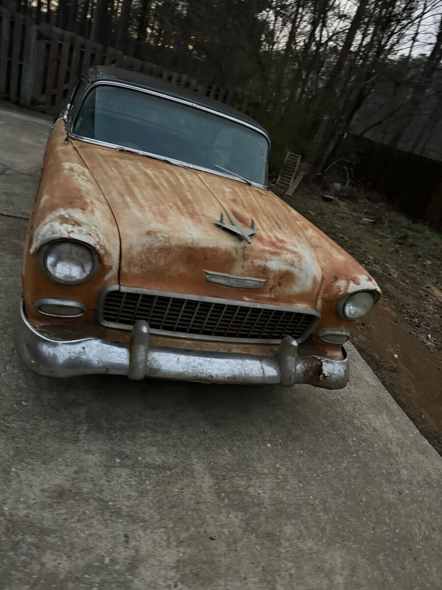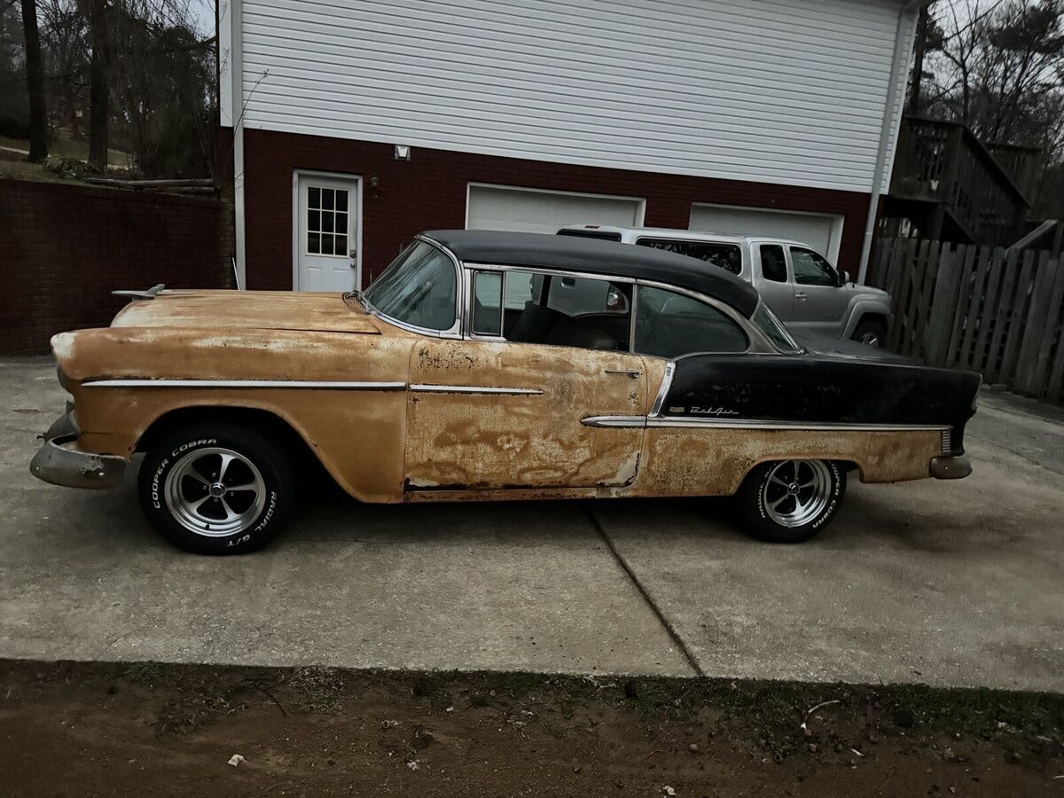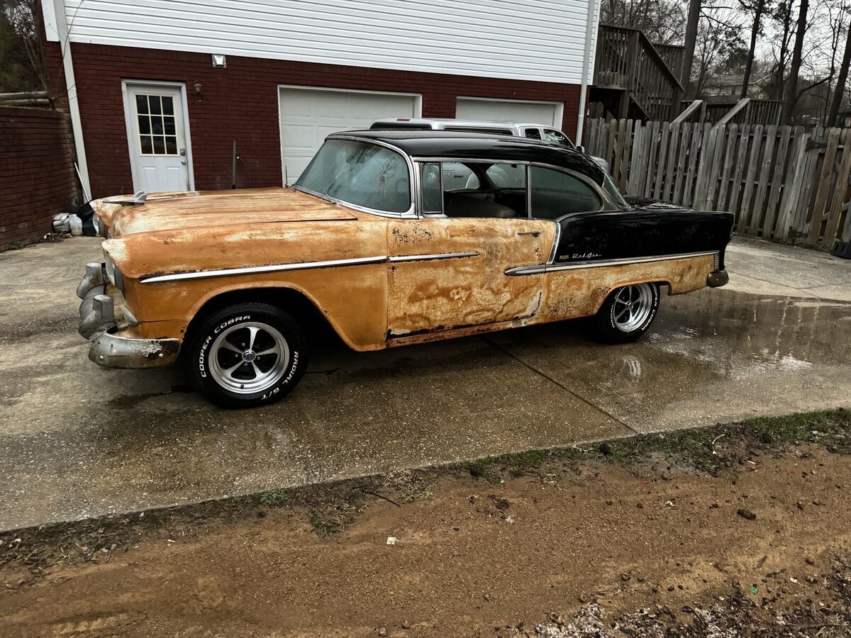 1955 Belair two-door hardtop V8 car three speed on the column. Has been stored in a barn for almost 4 decades . Great car to do a restoration on. The engine has oil in it. I have not tried to spin it over. Black and white car. This car has been stored in a barn/covered shed for probably close to four decades. It will need two front floor pans And the drivers door at the very bottom has some holes. The trunk overall is solid. It will need the lip replaced just in between the bumper on the left side. I guess maybe just replace the whole piece the rest of the body from what I can tell looks good. The car has all of the stainless trim, the two fender skirts 4 hubcaps, The wheels and tires pictured are not included. They can be purchased. They’re almost new. The car will come with four good 14 inch wheels with very nice tires and the factory wheels. I believe this car has original drivetrain. I have not located the identification plate. There is nothing on the pillar. I will try to get something and clean the frame I was reading you can find the identification on the frame. I believe this car to be in Alabama car since day one. The car will be sold with a bill of sale. Only Alabama did not title cars until 1975. That would be $500 nonrefundable deposit due at auction end. any questions call or text Dalton 205337445seven. Arizona