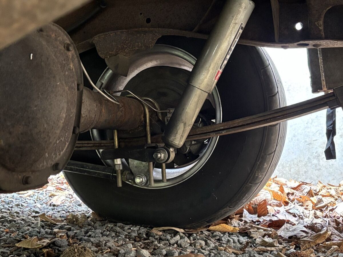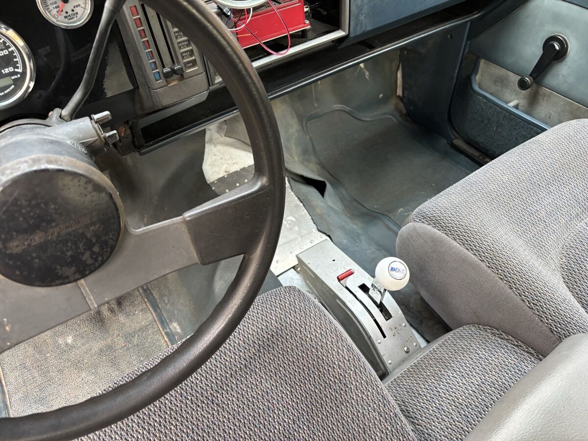 Transmission is a TH400 rebuilt when truck was put together has a shift kit and a b&m ratchet shifter. Rear end is a narrowed 8.8 out of an explorer 31 spline axles and 373 LSD (rear discs).