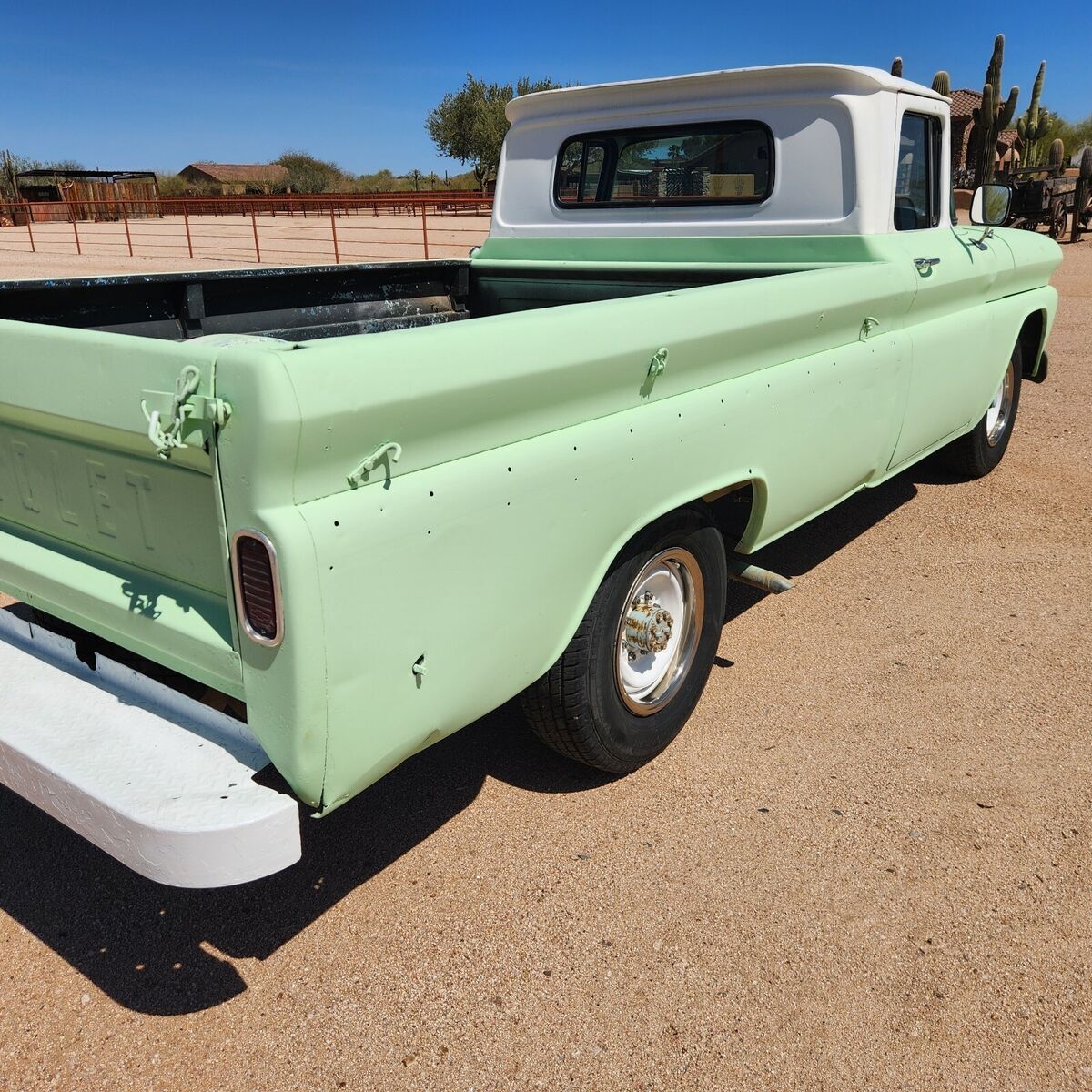 Truck runs and drives great. It's a v8 automatic, I dont know engine size. New brakes parts, dual exhaust . Original bed wood. Minor rust spot drivers floor. Very solid az truck. It's a 3/4 ton two wheel drive. After market stereo. Clean az title no issues. Truck is sold as is no warranty expressed or implied. Funds must clear before truck or title will be released. No trades cash only or wire transfer no checks. Send phone number if have questions before you buy not after. I will call you and answer your questions. Buyer is responsible for all taxes and fees your state may require. Shipping is buyer cost and responsibility. Miles not actual.