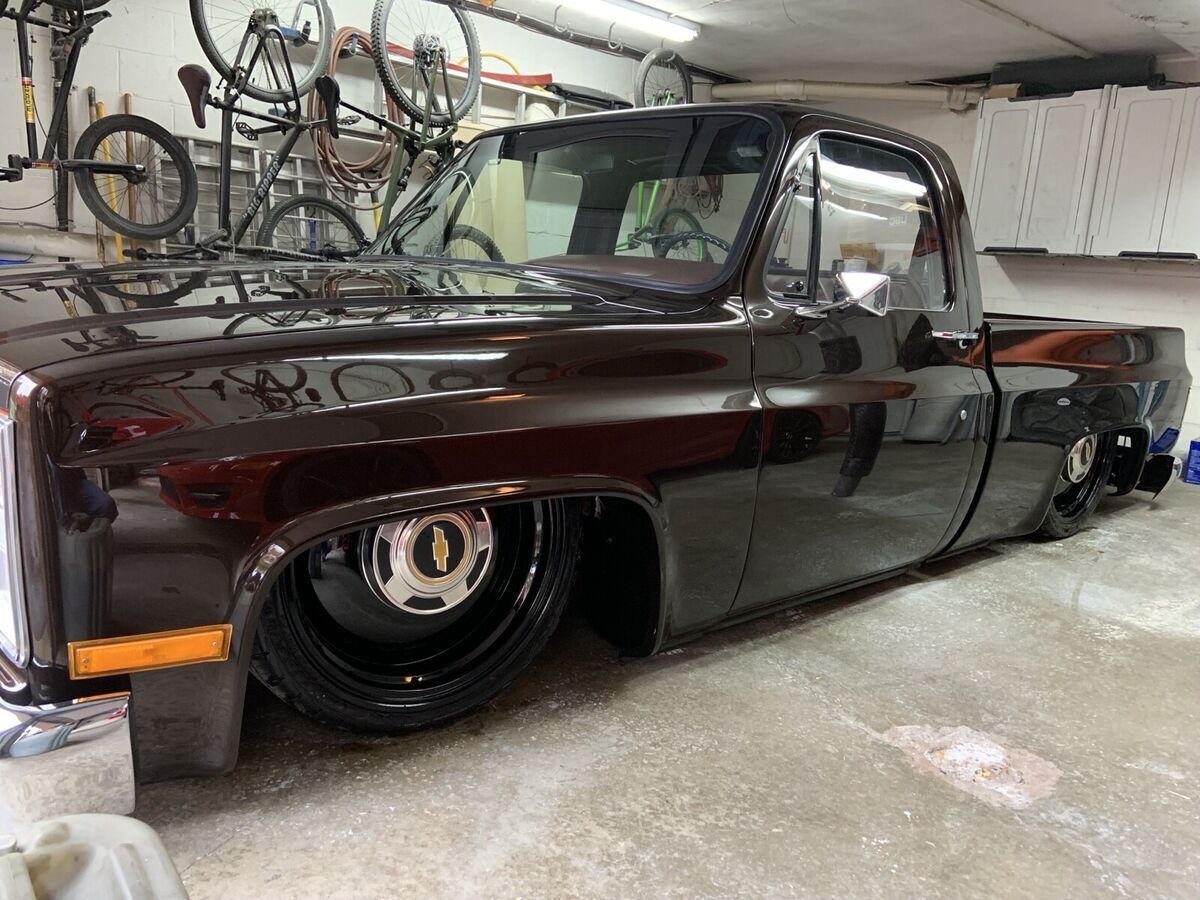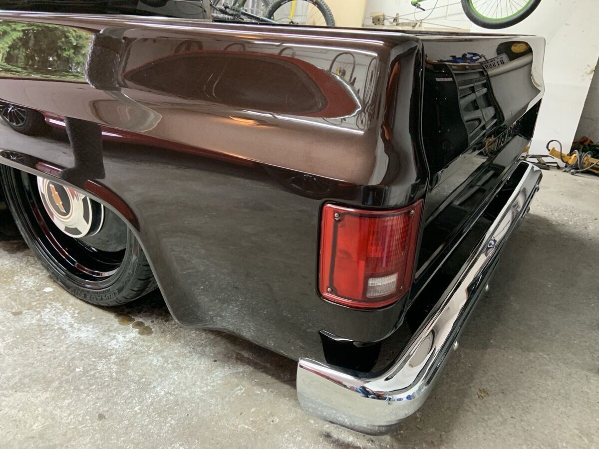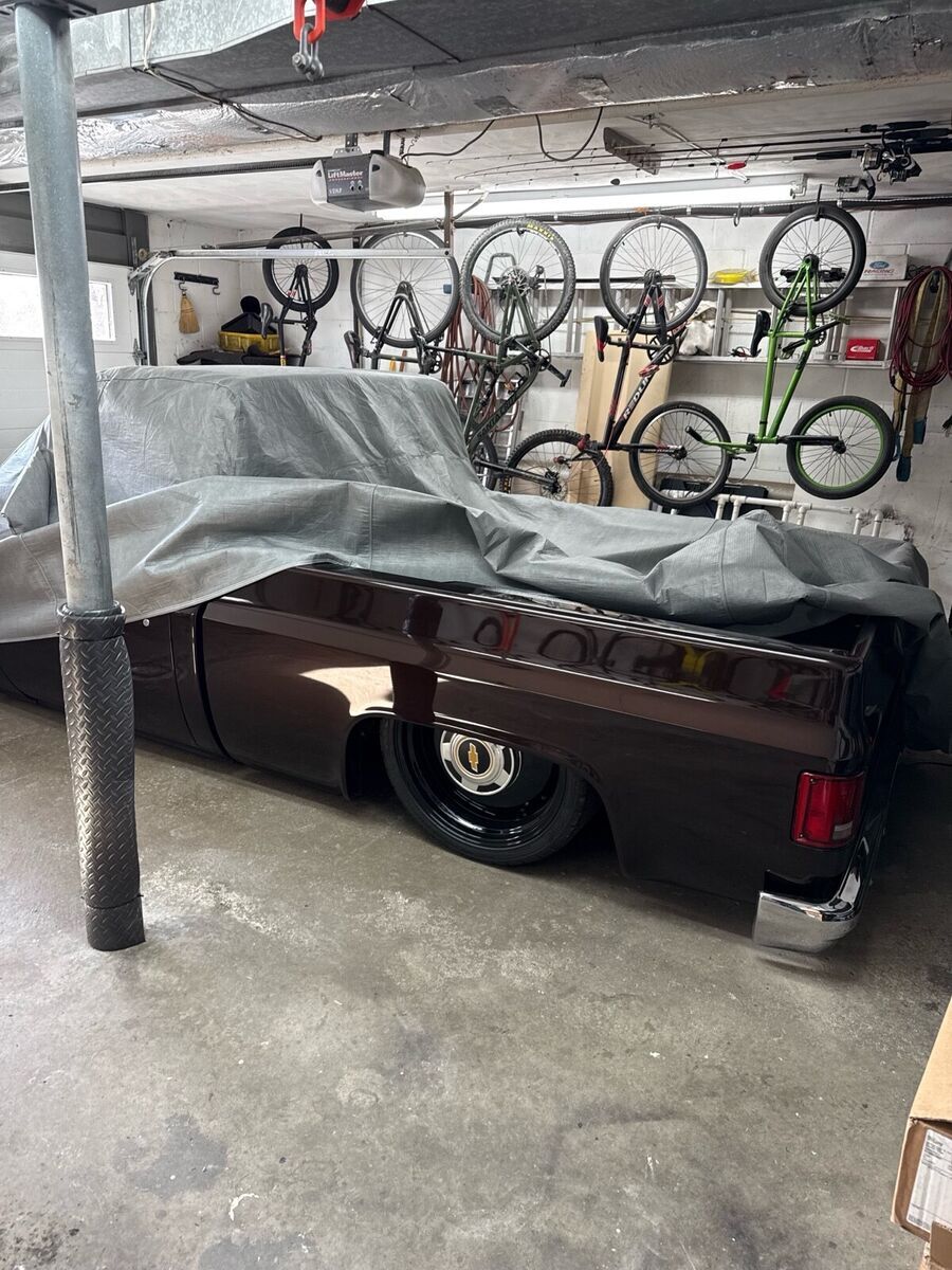 Rust free Texas truck sitting on full porterbuilt level 3 suspension with accuair elevel air management. The truck is powered by a tuned and cammed 5.3ls backed by a 4l60 transmission. The truck was professionally painted dark espresso metallic with the wipers,cowl vents, fuel door, emblems, stake pockets all being shaved.