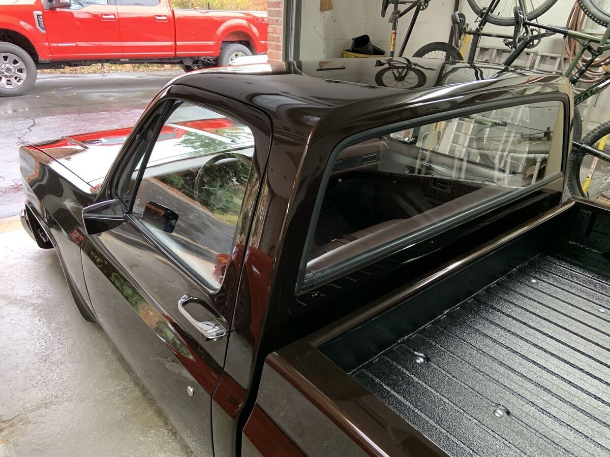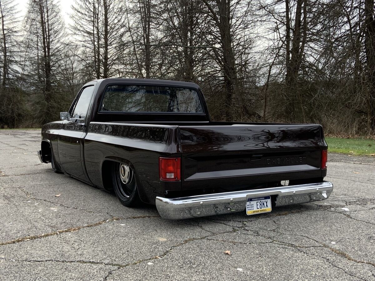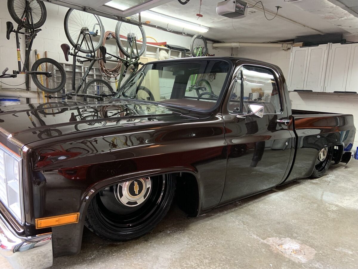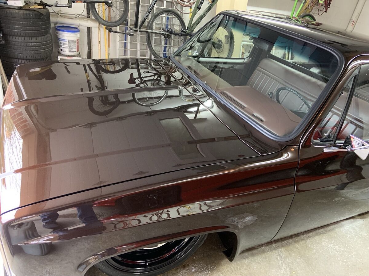 Rust free Texas truck sitting on full porterbuilt level 3 suspension with accuair elevel air management. The truck is powered by a tuned and cammed 5.3ls backed by a 4l60 transmission. The truck was professionally painted dark espresso metallic with the wipers,cowl vents, fuel door, emblems, stake pockets all being shaved.