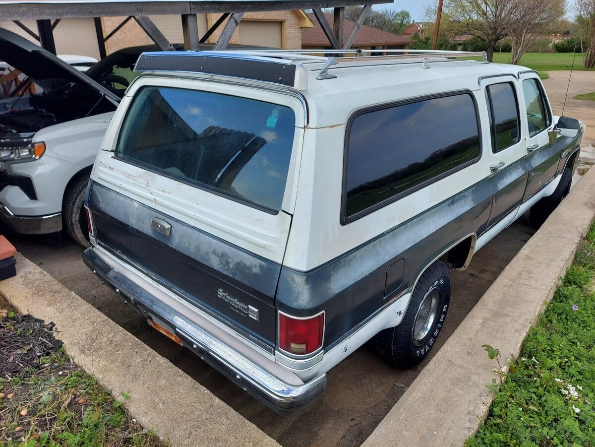 Half ton 4X4 Suburban project. 350 4 barrel engine runs excellent. Drives, but will need the 700R4 transmission rebuilt. Only shifts up to second gear. It does go into reverse. Converted from TBI to carb. New fuel pump/tank, radiator, water pump, timing chain and harmonic balancer. Body is straight and rust free except for rust beginning in the rockers. Bought from an estate. Have paperwork from executor to get a duplicate title.No trades.