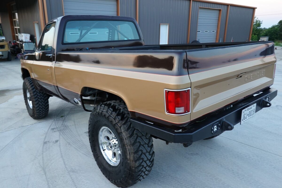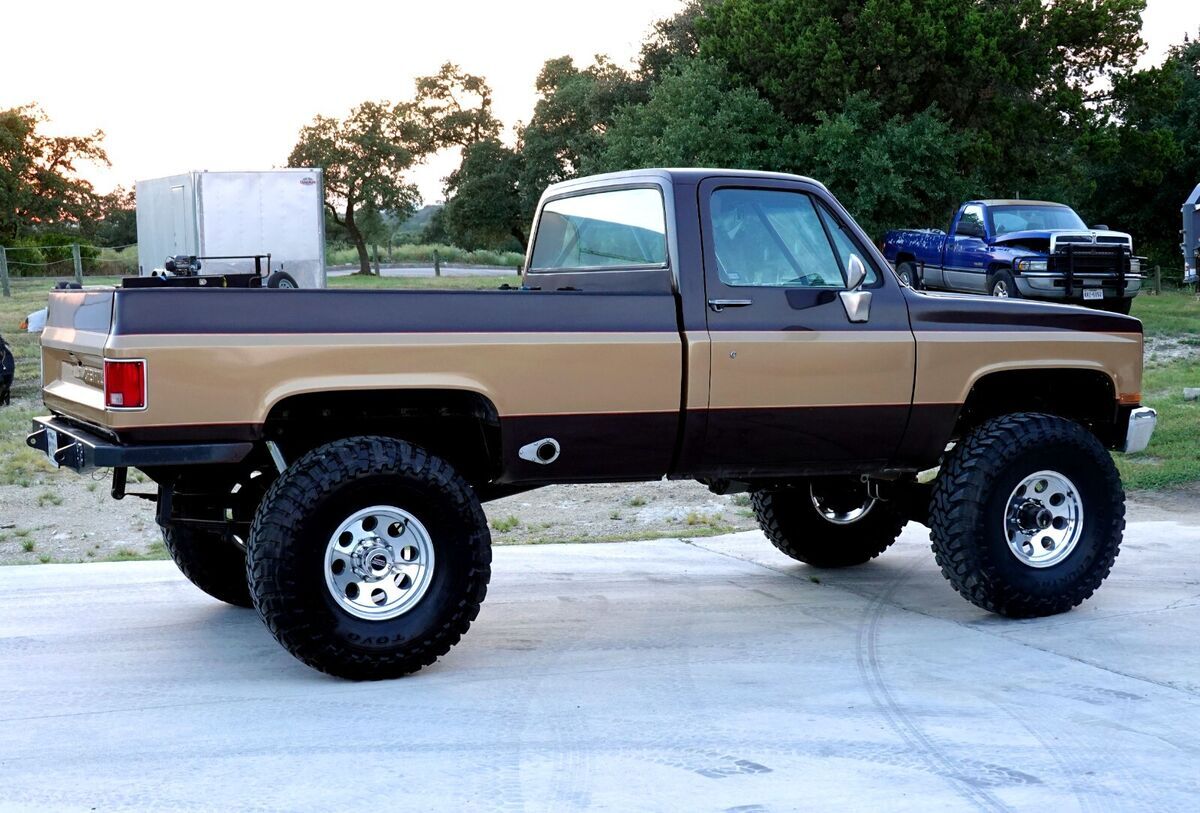 1985 Chevrolet K30 "Fall Guy"Clear Texas Title | Diesel (Previously Registered in CA)Fully restored, frame-off build with meticulous attention to detail and performance. This truck was built to handle Moab trails or weekend cruises without sacrificing style or reliability.Drivetrain & Performance:- Reman 12-valve Cummins with DCS Billet High-Mount A/C- Built 180HP P-pump by Bec Pacific LTD with 4K GSK- 165g FASS fuel system with 5x.014 PDD injectors- 40-gallon fuel box in bed with Beans sump feeding the FASS- Custom stainless 4" exhaust, splitting into dual 3" side exits through the bedsides- Rob Bonney Fab motor mounts, crossmember, and boxed front section- Rebuilt NV4500 transmission & NP205 transfer case- JB Custom Fab Twin Stick Shifter- Rebuilt Dana 60/14-bolt axles with 4.56 gears and Detroit locker-Will cruise at 2100-2150 RPM @ 75 MPHSuspension & Steering:- 52” custom leaf springs with DIY4X B52 kit- ORD crossover steering and sway bar- New 2WD steering box- New 40x13.50r17 Toyo M/T tires on 17” American Racing aluminum wheelsBody & Exterior:- Fenders stretched 4" and rear bed sectioned to a short bed- Fresh paint in "Fall Guy" colors, finished with a custom pinstriping by Joe Martin (Martin Bros / *Iron Resurrection*)- Custom roll cage, tight to the cab for a clean look, unobstructive build for tall driver comfort- Custom rear bumper with inset Rigid lights- Bed, cab interior and underside of cab are Line-X coated- All new hardware throughout complete with rebuild doors and new seals.Interior & Comfort:- Fully redone interior with manual tilt columnand hydraulic pedals- Porsche Momo shifter knob- Axia Alloys sun visors and rearview mirror- Vintage Air A/C and Dakota Digital gauges- Alpine sound system with speaker box behind the seatThis truck needs nothing. It's a turn-key, show-stopping build that performs as good as it looks. Built tough but refined—ready for the trail, the show, or the open road.