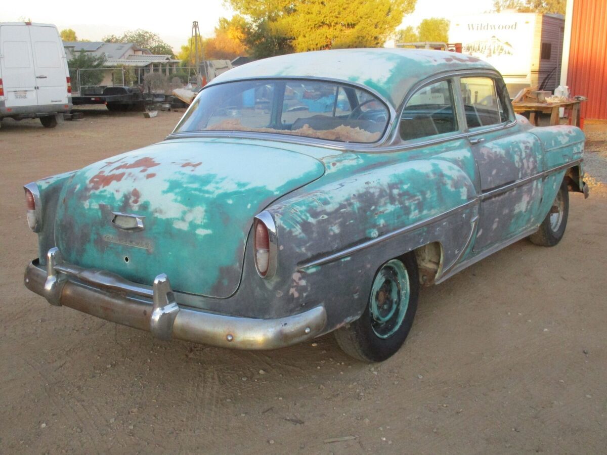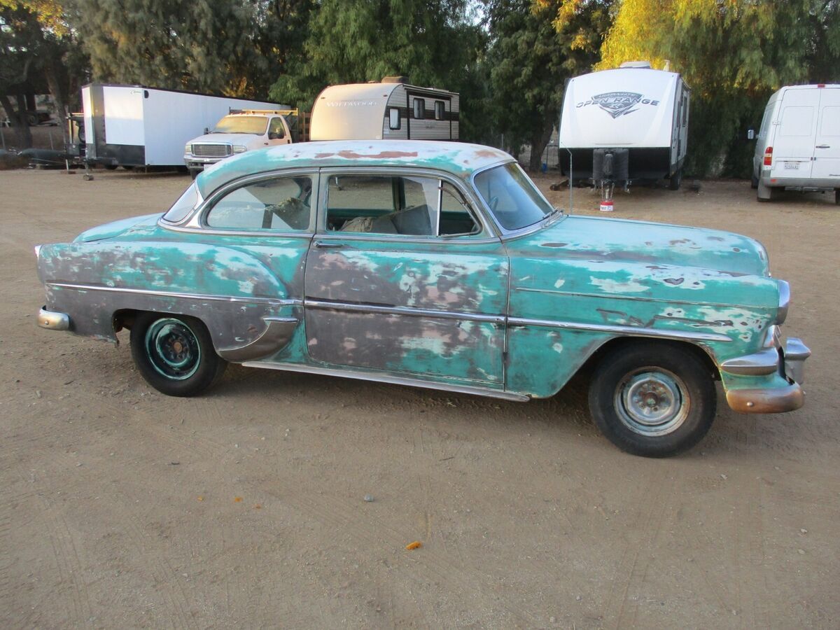 Garage Classics is proud to offer you a1954 Chevrolet 210 sedan.1 year body style 2 door model.I am happy to answer any questions over the phone.714 364 7320Happy to send as many pictures as you need..Cowl #s are as follows...Body # VN 699Style 54 1011WATrim 333 (light Green)Paint code 555 (two tone India Ivory and Surf Green)TOP ACCEZ1Engine looks to be the original 235 ( I have not confirmed this)with a manual trans (column shift).Engine Cylinder head and pan were removed decades ago so engine will need to be removed and rebuilt.Condition of transmission is unknown. Car rolls easily.BodyBody panels are excellent.Only very minor dings and dents.There is a little filler in some areas but nothing major(mostly on passenger door).The body, floor and trunk are very solid.I don't see any rust holes in the floor.Roof has a fist dent on the driver side.Drip rail area is solid, No rust.Quarters are solid with not rust holes or repair.This car is super solid.Hood and trunk look great with no rust issues or repairs.Hood, trunk and Doors open and shut nicely and hinges are tight.I believe it was repainted a darker green over the original Surf Green paint.Hood is missing the ornament.Bumpers are pretty straight and both have the cool bumper guards.Odometer shows 80000 miles.All the glass is in good condition with the exception of the driver side vent window that has discoloration.The passenger side vent window is missing and the vent frame is broken from the door frame.The windshield has a little discoloration on the edges but is in pretty good condition.There are 2 dents on the passenger side window trim but the rest of the upper stainless is very good.The lower stainless trim most of which is present, has the typical dings and dents.There are no keys.The steering center link was detached so I installed two bolts so we could move it around.Car rolls easily.I will be happy to provide any additional info or pictures.Just send me a text or call.Craig 714 364 7320Overall this is a very solid straight car that would make a great builder for a LS swap, Gasser or restore to original.Car was a stored in the high dry desert for more than 30 years.There is no title. I will provide a bill of sale.A California Title will cost about $300 (easy)I checked the VIN in the NICB website and it is clear/ out of the system.I will be happy to give you the VIN so you can check for yourself upon request.We require a Non Refundable $1000 deposit and full payment within 7 days.We can store the car for up to 30 days.Give us a call if you need any additional information.714 364 7320 CraigCheck out our Garage Classics store for more parts! Track Page Views WithAuctiva's Counter