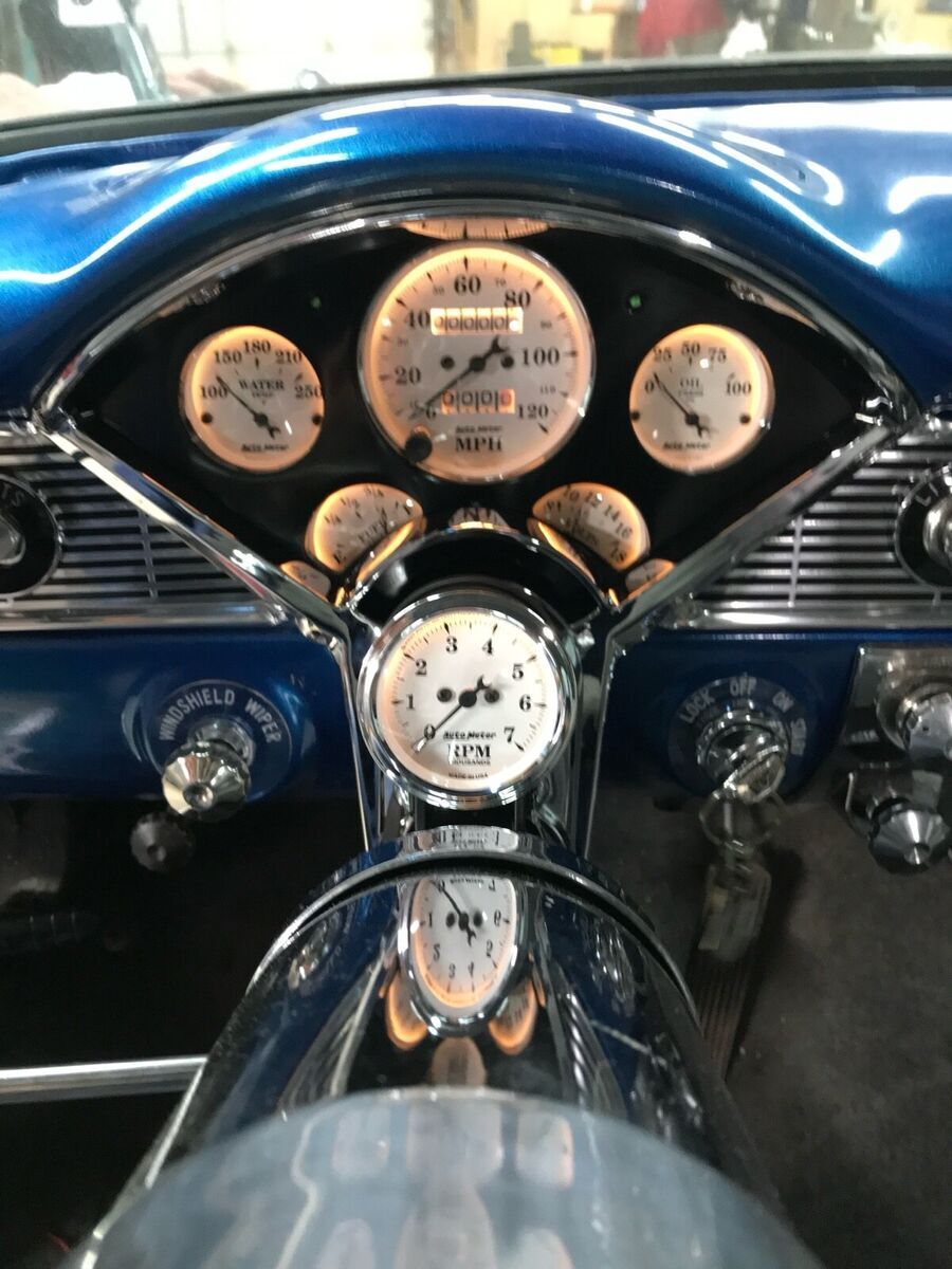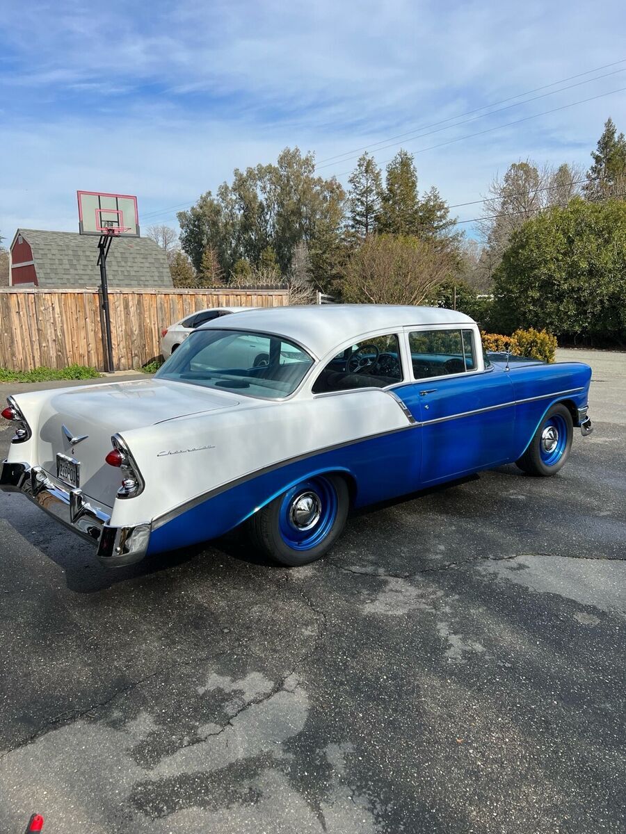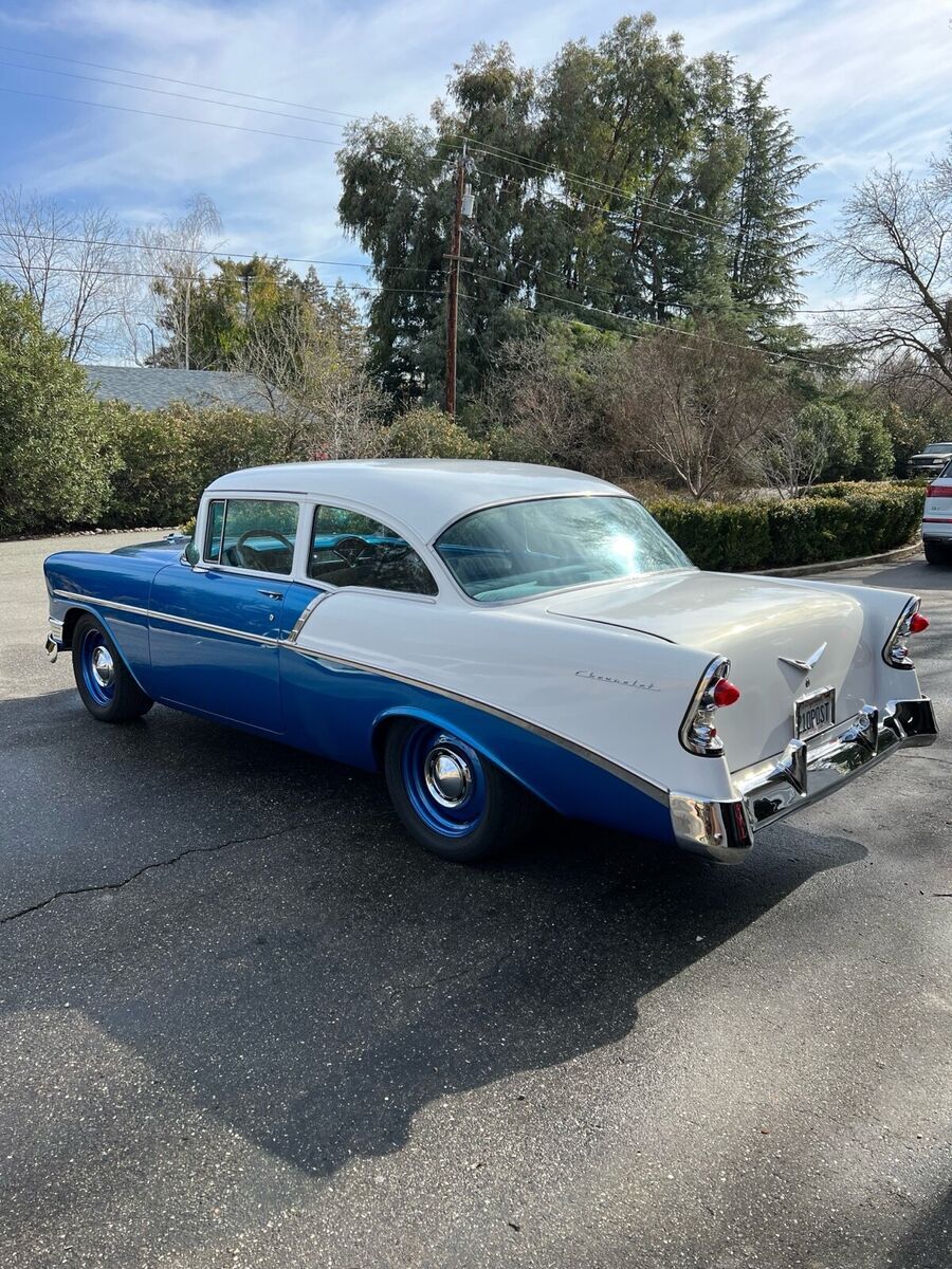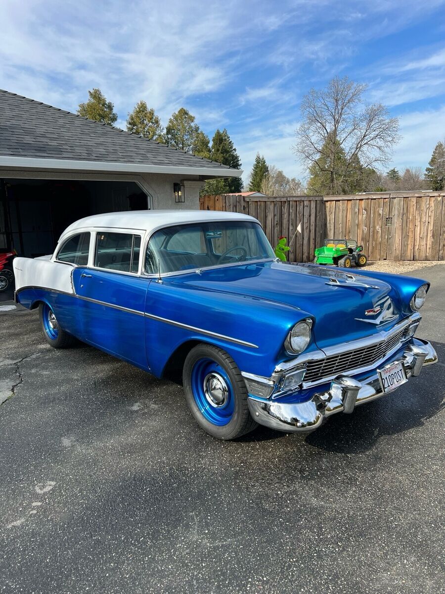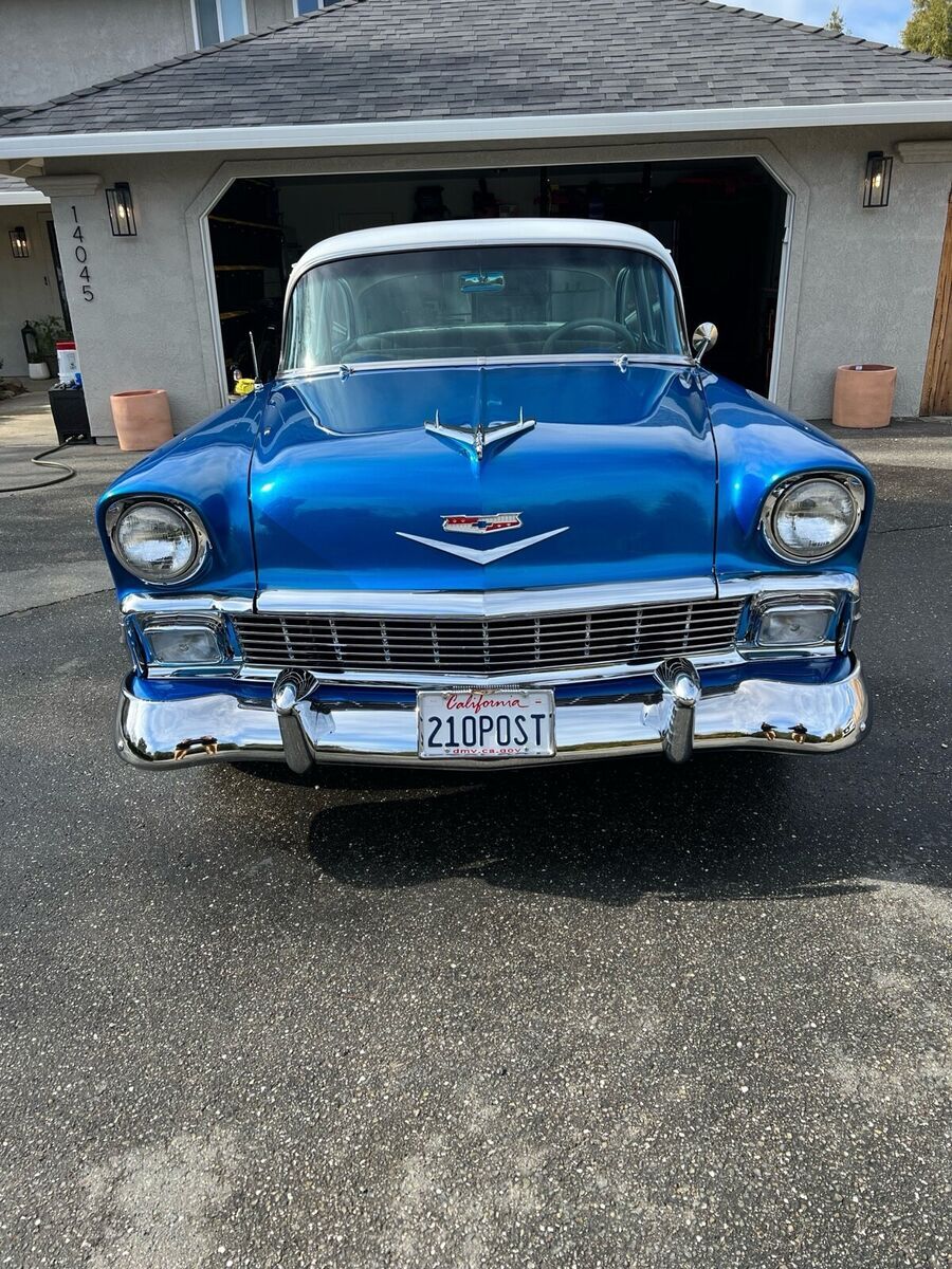 1956 Chevy 210 Post $48,000 OBO Only 1,800 miles on rebuild, Full frame-off rebuild with pictures available upon request. Electric Blue and Pearl White, 90% of All Chrome has been Re-Done, CA 1-Piece Front and Rear Bumpers, Entire Chassis and Sub Parts Powder Coated, West Coast Engines Built 383 Stroker Hydraulic Roller Cam, APE Aluminum Heads, Eagle Crankshaft, Edelbrock Performer RPM Intake, Aluminum Valve Covers, Cloyes Timing Gear(Full Build Specs and Dyno Sheet Available), TCI Street Fighter 700R4 Transmission with Front Mount Maxx Cool Trans Cooler, TCI Street Fighter Torque Converter 3000-3600 Stall, Lokar Trans Dip Stick, Ford 9 Rear End w/ Strange Engineering Pro Iron Eaton TrueTrack-3.50 Gearing, 31 Spline Axles, Aluminum Driveline, Custom 17 Steel Wheels and Dog Dish Hub Caps-Paint Matched, CPP Tubular Control Arms with Lowering Springs, 2 Drop Leaf Rear, Hydroboost Brake System with GM Disc Front and Drum Rear, Custom Built Radiator Support with Twin Cooling Fans, Billet Specialties Aluminum Pulley Set-Up, B&M Quicksilver Shifter, Autometer Old Time Gauges with Custom Billet Aluminum Gauge Insert, Holley Fuel Pressure Regulator, Patriot Tri 5 Ceramic Coated Headers, FlowMaster 40 Series with Turndowns, Holley Street Avenger 770 Carb, MSD Pro Billet Distributor, MSD Street Fire Ignition Box, MSD Blaster 2 Ignition Coil, Full Trunk Coating with Battery Relocation, Custom Autosound Radio made to look period correct and have digital and Bluetooth capability I'm sure I am missing stuff but the car speaks for itself. Only Issues: Has Small Trans Pan Leak Likely From Gasket. Driver Side main window has crack but I do have the replacement pane to fix. Just not installed yet. Car runs awesome with tons of power. $48,000 OBO Buyer to pay all shipping/transportation costs.