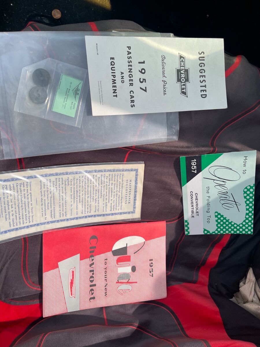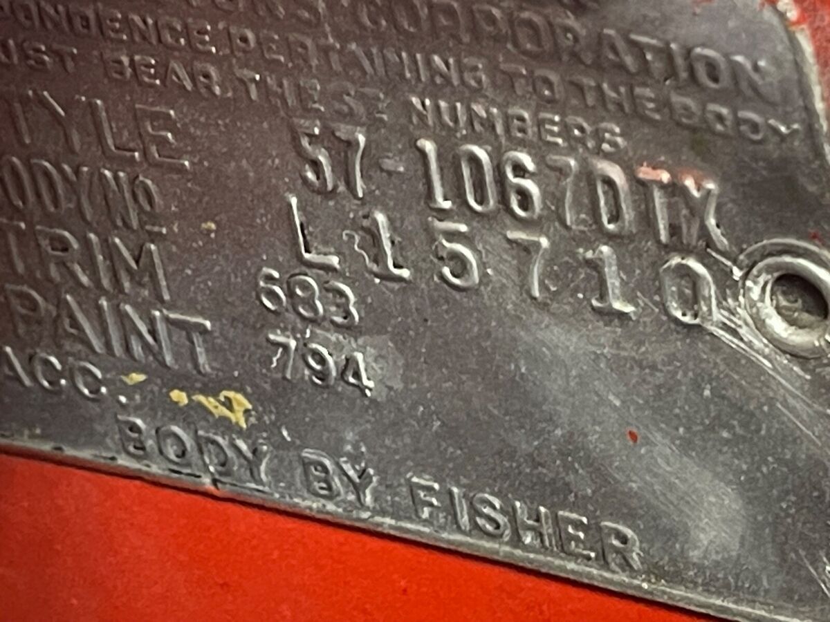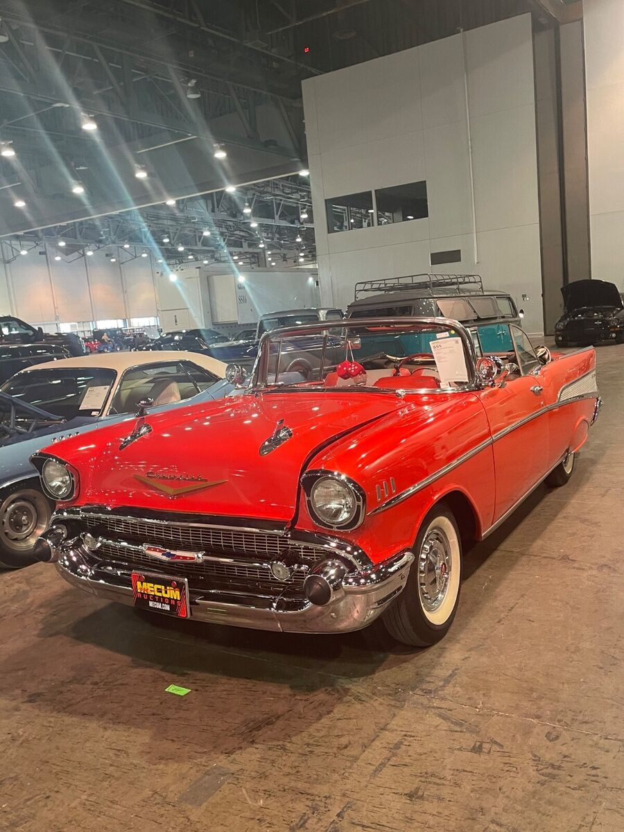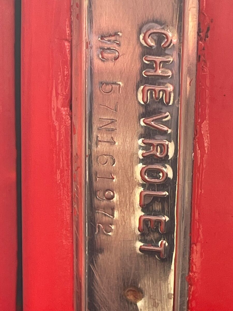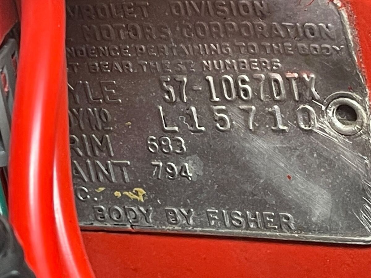The 1957 Chevrolet Bel Air/150/210 Original is a classic convertible car with a red interior and exterior color. It features a spacious interior with 6 seats and an automatic transmission. This vintage Chevrolet has a powerful 283 V8 engine, making it a reliable choice for car enthusiasts looking for a piece of automotive history. With a service history available and a clean vehicle title, this 1957 Chevrolet Bel Air is a desirable option for those seeking a timeless classic car experience. Adjustments only consist of new brakes & EFI see pictures .. Totally original with those exceptions. Still have the original manifold & carburetor if wanted. Told all of the numbers are corresponding within the vehicle but never verified. Drivable is as is. Beautiful car.
