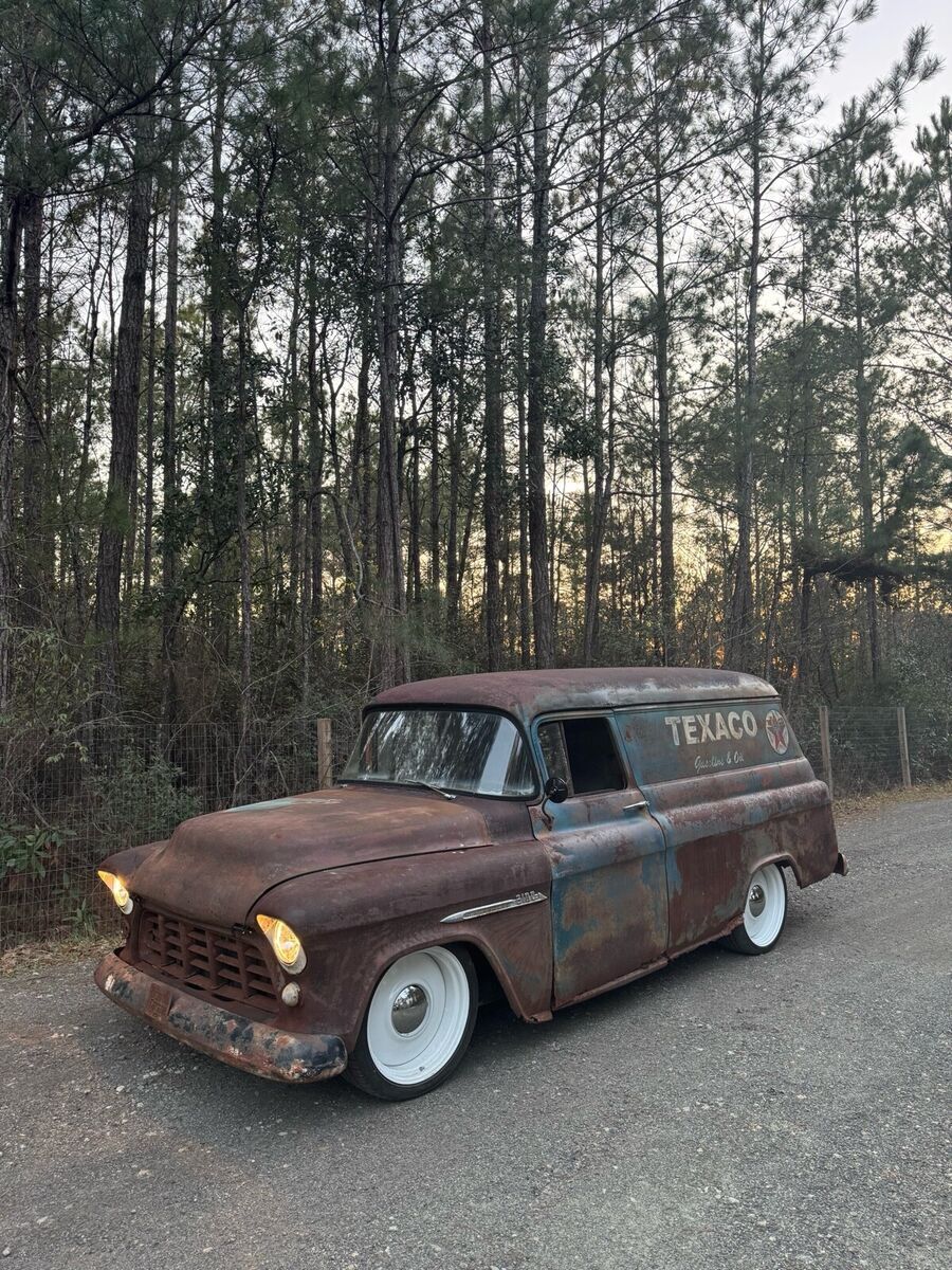 1955 Chevy panel 3100 . S10 frame and running gear ! Daily driver that’s ready to go. Great advertising piece for buisness or delivery truck! Easy to drive and tons of attention!