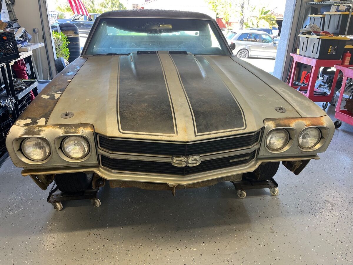 1970 El Camino SS 396/350 hp w factory Cowl Induction. It was parked sometime in 80's sitting inside an airport hanger and remained till found in 2023. Odometer shows 51k miles and his kids said that would be original since he didn't use the vehicle too often. I've been into El Camino's for years, finding excellent examples to restore are getting rare! Especially for 1970 This is a original west coast car still titled in original owners name. If you're looking for a Camino to restore then you just found the perfect candidate for frame off rotisserie. BODY: The car only has small rust on each quarter on the bottom corner (See Pictures). Floors are like new, smuggler box is like new, bed is basically scraped up only. The passenger fender has a NOS and included is also a NOS Drivers fender. Doors are mint. Original silver paint remains on 95% of the car. The original owner did some minor sratch repair using a rattle can primer as seen in pics. Tailgate has no rust and bottom is excellent. No dents or damage. The original front bumper has been removed and rechromed plus I bought an original 70 rear bumper core and had that rechromed as wellI removed the carper and gas tank trying to find the build sheet but no luck. You'll see in picture of back the gas tank strap hanging down. I just didn't bolt it up yet.Frame: Like NewInterior: Seat is shown and will need recovering. Original carper is included but worn by drivers side pedals. Dash pad is excellent, no cracks. Non gage package. AM Radio. Door panels are excellent but they has speakers installed probably back in 70's.Drivetrain: The original block was replaced with a 1972 396 short block. The heads/intake/carb/riser/air cleaner are original to car. By the amount of grime on the engine I'm going to assume this was done in 70's. I did purchase a CE 396/350 engine (see Pictures) complete with Dec 69 build date which is not included but I will sell separate to buyer or after car is sold. NOTE: It would be included in BUY it NOW. Plan was to use the short block since the dates fall perfect within warranty limits for 1970. The engine is complete so can be used as complete or used the original heads/intake. Transmission is original as is the 12 bolt rearend with 3:31 gears Factory exhaust manifolds are on the engine in car. I did get the engine in the car running but did not put gas in fuel tank. Only ran when using gas down carb. Have never driven the car. Radiator and shroud etc all original. PS/PB disc brake car.I bought this car to do a frame off restore. Only selling to make room for another car I recently purchased so decided to let the Camino go. A factory Silver/Black stripe cowl induction car is beautiful when restored. I've bought every NOS emblem for the car minus the fender SS which are readily available. I even have a rare complete set of NOS wheel well mouldings and most of the trim in NOS. NOS door edge guards and on and on. Have complete set of AO code wheels. I'm located in San Diego, car is available to view by appointment. If you have any questions, please ask. My feedback is always 100% with exception to selling my dads cadillac several years ago and the buyer trying to scam me out of money months after purchasing the car. It was also stored in a climate controlled building for 28 years! I won't deal with scammers, I felt horrible being it was my dads car who willed it to me when he died in 94. Scam didn't work so he felt compelled to leave negaitive feedback Showed all the evidence to ebay and they do crap for the seller. I'm just an honest car guy that loves cars. Embarrassed but I know who I am so sucks I have to explain but so be it.If you purchase the car. I will only accept wire transfer or cash. Ebay charges crazy fees to pay through them. If you want to use ebay then you will pay the additional fees on top of the final purchase price.Deposit of $500 must be paid within 24 hours and is non-refundable. Shipping is responsibility of buyer. I will assist with loading etc and all parts would be in the interior. If you buy with the CE engine then that will be crated and strapped in bed. I do have an amazing trucking broker that is the best in the market and delivers 1st class and great pricing. I'd be more than happy to share his information.
