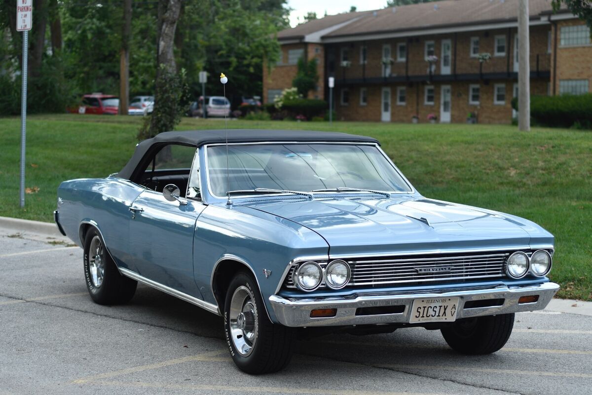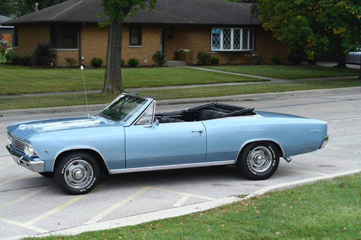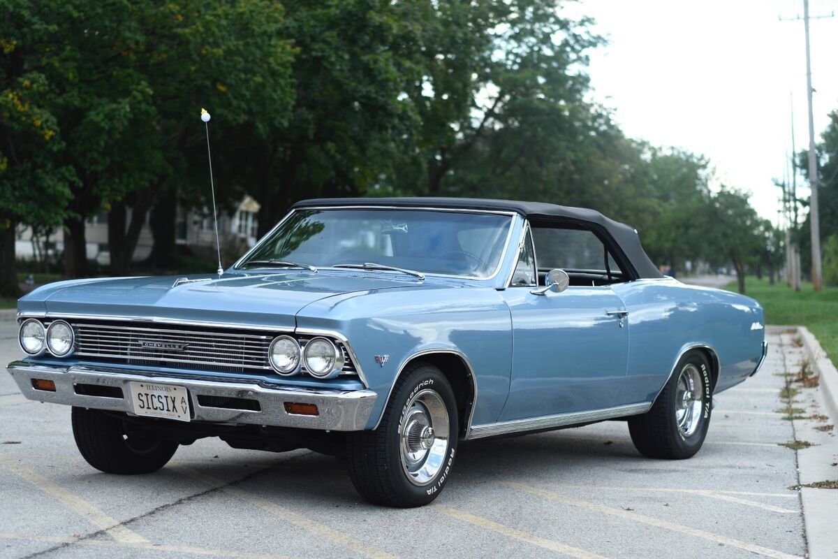 Experience the classic charm of the 1966 Chevrolet Chevelle, a quintessential piece of automotive history. This convertible model boasts a smooth automatic transmission, making for a comfortable and effortless ride. The exterior is finished in a striking blue, which complements the vehicle's timeless design and adds a touch of sophistication. Inside, the Chevelle seats up to five people, allowing for a intimate gathering or a relaxed drive with friends. The vehicle title is clean, ensuring that this Chevelle is ready for the road and poised to be a standout at any car show or cruise event.SUPER clean SUPER good driver with a BIG BLOCK CHEVY! the car was fully paint and body restored about 20 years ago and slowly put together after that. All restoration and parts have less than 1000 miles including engine, transmission, rearend and manual convertible top. lots of new parts under 100 miles. all new bushings throughout the suspension, new power disc brakes in the front. new aluminum radiator, electric fans and high flow water pump, car runs under 190 degrees even on the hottest days of the summer.-Drivetrain468 big block chevyTH400 transmission10bolt rear end with a fresh posi and 4.10 gear
