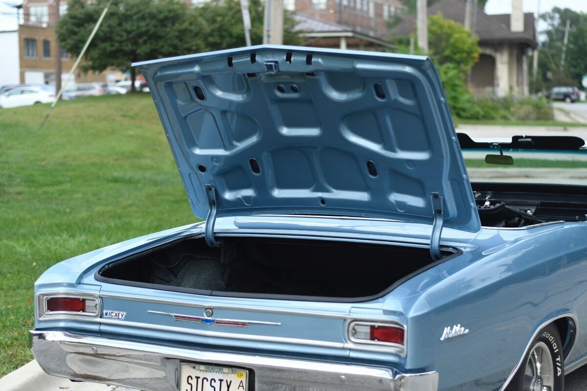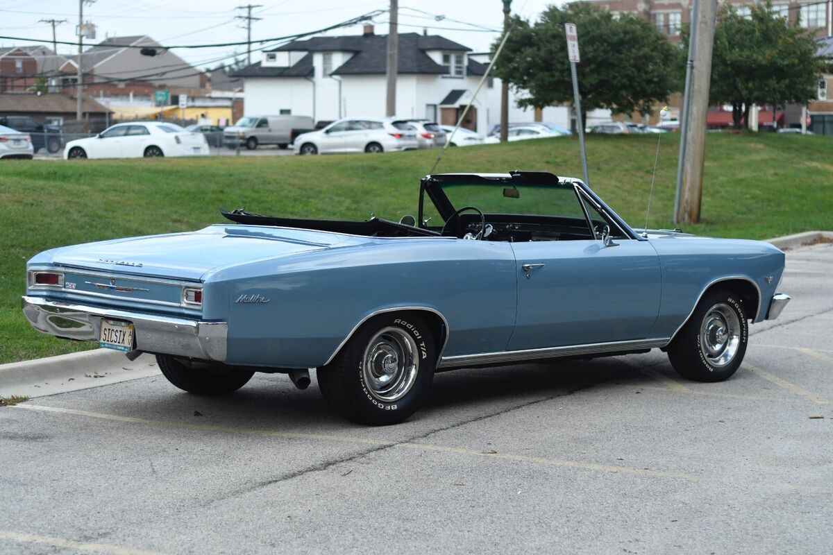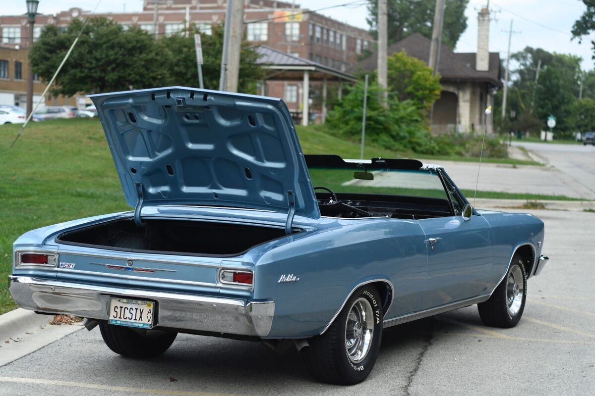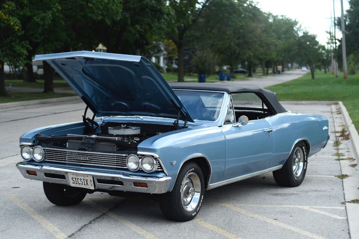 Experience the classic charm of the 1966 Chevrolet Chevelle, a quintessential piece of automotive history. This convertible model boasts a smooth automatic transmission, making for a comfortable and effortless ride. The exterior is finished in a striking blue, which complements the vehicle's timeless design and adds a touch of sophistication. Inside, the Chevelle seats up to five people, allowing for a intimate gathering or a relaxed drive with friends. The vehicle title is clean, ensuring that this Chevelle is ready for the road and poised to be a standout at any car show or cruise event.SUPER clean SUPER good driver with a BIG BLOCK CHEVY! the car was fully paint and body restored about 20 years ago and slowly put together after that. All restoration and parts have less than 1000 miles including engine, transmission, rearend and manual convertible top. lots of new parts under 100 miles. all new bushings throughout the suspension, new power disc brakes in the front. new aluminum radiator, electric fans and high flow water pump, car runs under 190 degrees even on the hottest days of the summer.-Drivetrain468 big block chevyTH400 transmission10bolt rear end with a fresh posi and 4.10 gear
