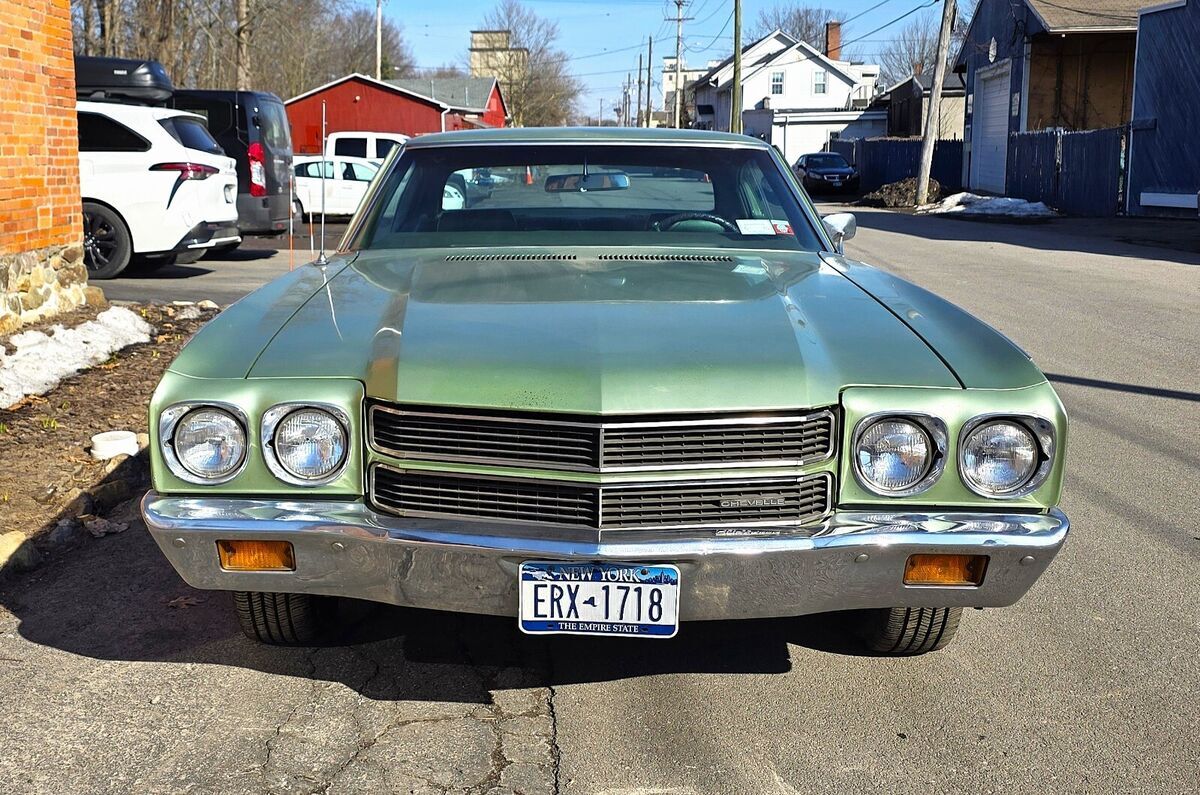 Camaro Specialties is selling this 1970 Chevelle Malibu. This car is extremely original, with only 47,000 original miles! It came from the factory painted in "Green Mist" with a green standard bench seat interior. It was ordered as a 307 car with power brakes, power steering and the trailering package. The trailering package included front disc brakes, boxed rear control arms, a turbo 350 transmission and a rear sway bar! All these features are still present on the car today. Over time the original 307 has had its' cam replaced and a 4-barrel carb, intake, and air cleaner installed. The original exhaust was also upgraded to duals and aftermarket cruise control has been installed. This car runs, drives, and stops as smooth as can be. This car retains all of its' original sheet metal and we estimate that the car is about 90% original paint and the interior is all original as well. There has never been any floor work done, nor does the car need any. There are some minor dents, dings and chips as the car is old and has been driven. Rims have been replaced with 15". You will be hard pressed to find a 1970 Chevelle in a more original "survivor" condition. Feel free to view the car at Camaro Specialties in East Aurora NY, view our facebook page, or contact us for more information. (716)-652-7086We can also assist with shipping this vehicle!