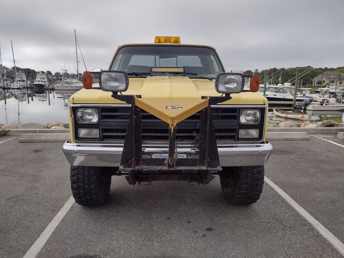 1980 Chevy K20- 454BBC- SM465-205TC-4.10 Gears-Locker Rear. Custom Convertible. ConvertIble top was done by a professional body Shop. It is a 1974 Blazer Top and a Pickup truck rear sliding window Combined. Does not Leak. Has Roll Cage inside cab.8 ft. Fisher Plow HYD. Belt driven pump, Custom plow controller mounted underneath the Dash, + is trimmed out of dash, shown in pics, handle is unscrewed in pics. Plow is freshly painted CAT Yellow and fully operational. Engine is a 454 BBC with Chevelle heads,gear drive timing, mother thumper cam, High rise Air Gap intake, Summit/Holley 750 Carb Dual Feed lines, High flow air filter, Manual Choke, New HEI Distributor, Ceramic Boots on Plug Wires, Long Tube Headers with 2.5 inch exhaust with 1 chamber flow masters, no oil or antifreeze leaks, Brass 4 core radiator, new Master Cylinder, and front calipers and pads, stainless steel brake lines, Rancho 4 inch lift kit, Foose Black Widow Wheels with 35x12.5xR20 Federal Mud Terrains, Like new Tread, Rebuilt SM465 4 speed with granny gear, 205 Cast Iron T- Case, New rear driveshaft, 4.10 gears with locker in rear, locking hubs on front axle, all the vents on everything have been raised up onto the firewall with filters on them, has custom strobes on Custom rear bumper and reverse lighting, has roof strobe and Front hood mounted remote control light bar with different functions and strobes, Fiberglass Cowl Hood, Chrome hood Hinges and Heater box, Short bed, Dual fuel tanks, needs fuel door repairs on driver's side, power locks, led bulbs front and rear parking lights, 5 inch racing tach with shift light, also has custom gauges in dash, Side steps are frame mounted very solid, 2 inch receiver hitch and has ball mounts on rear bumper, has electric and mechanical fuel pumps, everything works on the truck. Truck has some rust on rocker, cab corners, front fenders, shown in pics, any questions please send me a message. Thank for Looking