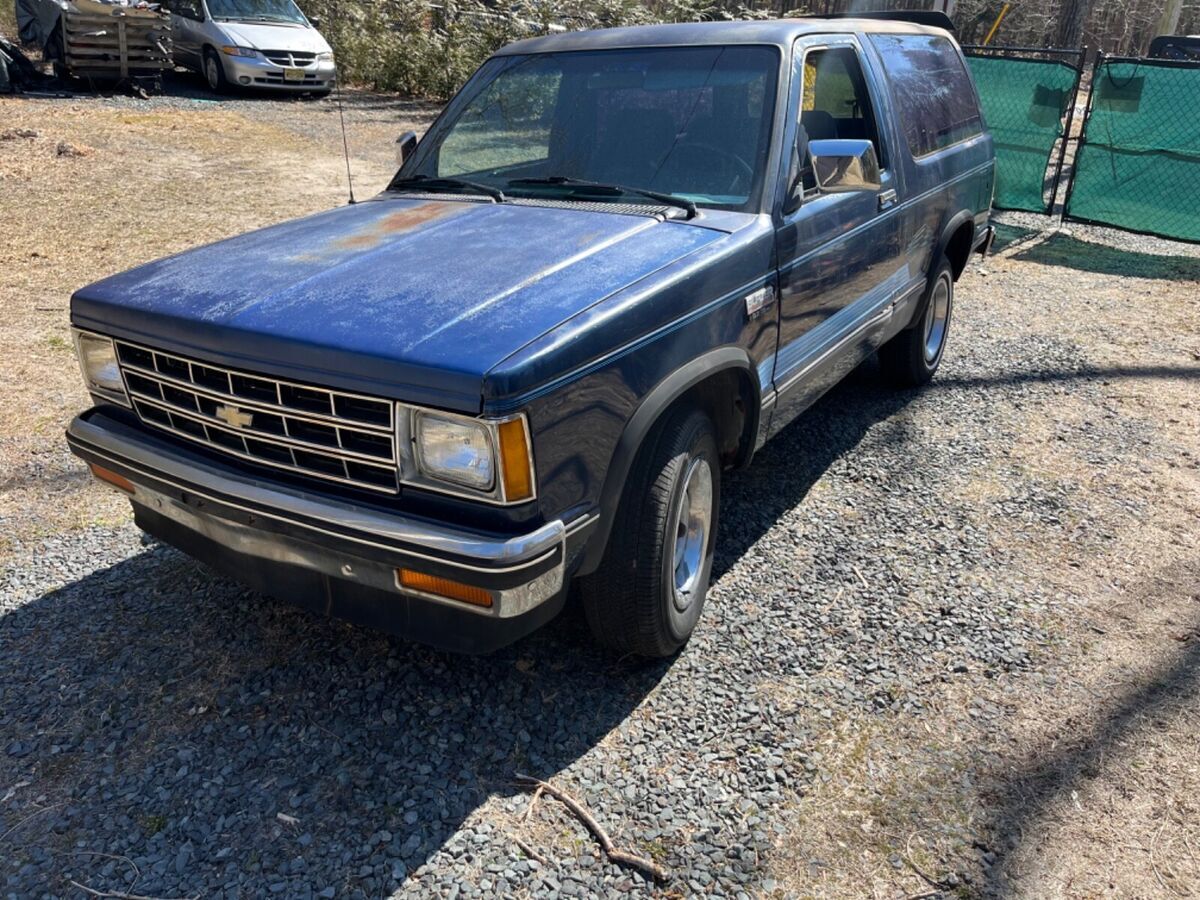 1987 Chevy Blazer S10 with a v, this is a 2wd truck and in my opinion excellent for a LS Swap and an amazing build to typhoon clone. Love the truck just don’t have the time to put it together. Only has some rot(not much at all) in the rocker panels which are easy fixes they sell them cheap. Blue on Blu, some cracking on dash which is common otherwise clean interior, Runs and drives currently and has a clean title in hand. I’m in Jackson NJ 08527 please ask any and all questions before purchasing as there are no returns, I’m more than happy to provide shipping free if local. Reach out with any questions before bidding, thank you guys.
