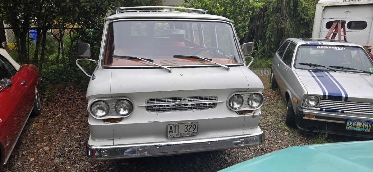 1964 Corvair Greenbrier 8 door brought from Portland Oregon. Flat 6 cylinder, 4 speed manual. Perfect project for someone dedicated to fix and run her.