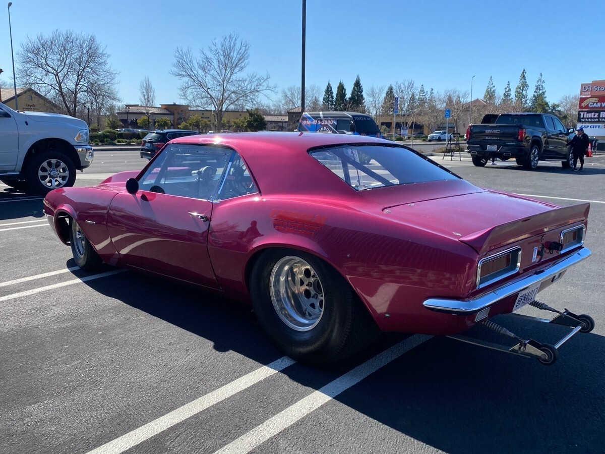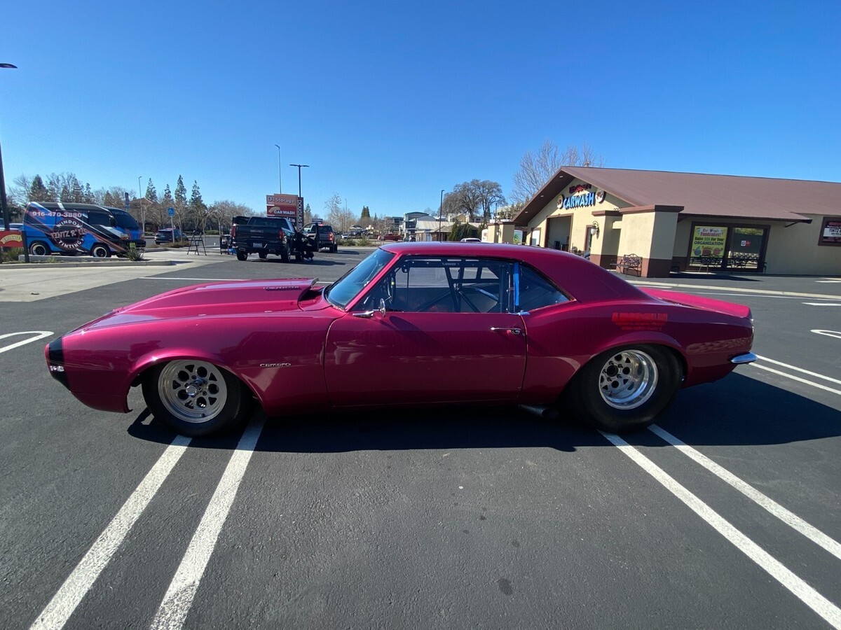 1967Camaro RS NHRA/Prostreet:I have had the car for approximately three years and spent the time going through the roll cage, electrical, fuel system, installed new brakes, they are still new with about 3 half passes on them. I did not build the car originally. I have only taken it to the track onetime for a test day to test the onboard electronics, Launch Control, Rev Limiter Trans Brake & Line Lock. We were, not allowed to make a full pass only half passes. Everything did work perfect; we only made a few half-passes but still ran low 10’s. Car is capable of high 8’s low 9’s. Funny car cage certified 8.0. The car was voted the nicest car out there day we took it for test day. The car looks beautiful and stops people in their tracks to look at it, sounds amazing and runs great, no issues or leaks.