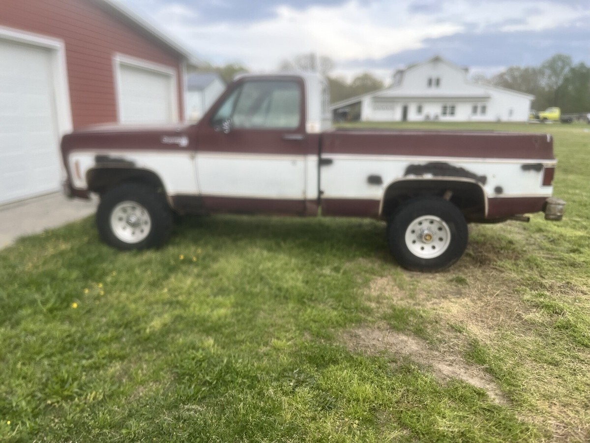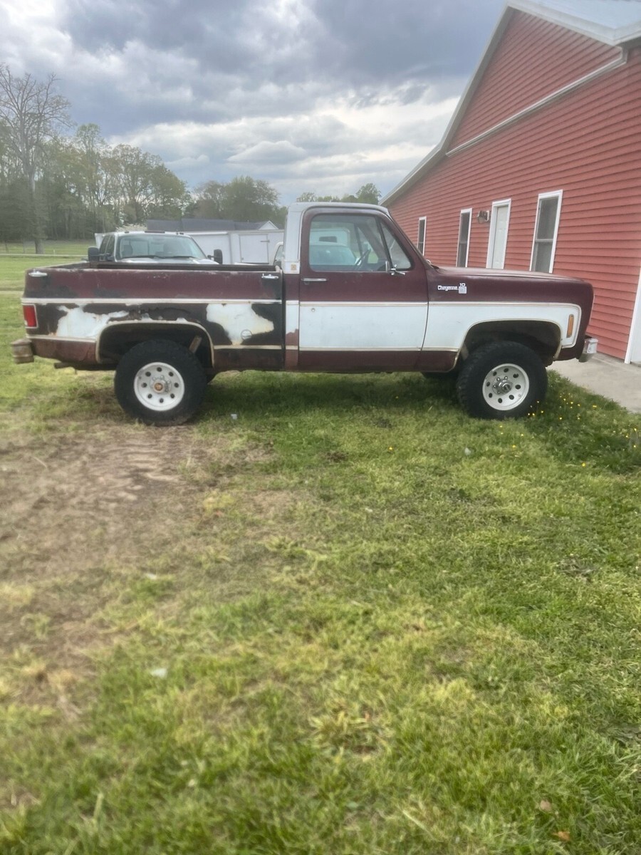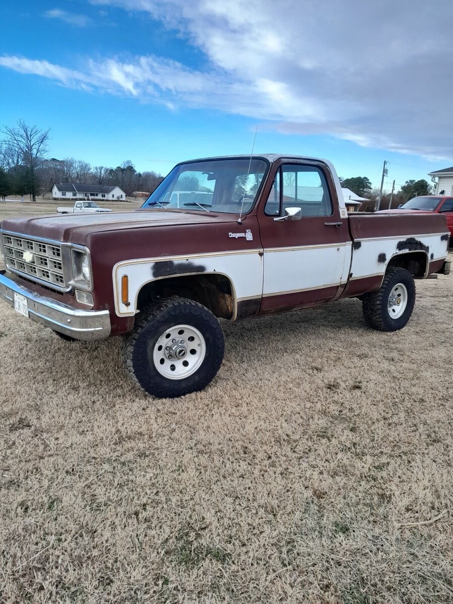 1977 chevy 4x4 k10 Cheyenne short bed. Factory 350 with 4 speed trans, np205 transfer case. Dana 44 front, 12 bolt rear, power brakes, power steering, tilt wheel, air conditioning, manual locking hubs. Truck had the following new parts replaced in past 3 months new water pump, spark plugs, plug wires, cap, rotor, fuel filter, carb rebuild, front brake pads, front brake calipers, front brake hoses, repacked all front hub bearings, grease seals, new warn manual locking hubs, thermostat, all coolant hoses, master cylinder, rear wheel cylinders, rear brake shoes, brake hardware kits, alternator, starter, rear e-brake cables, e-brake intermediate cable, rear axle seals, serviced the front axle, serviced rear axle, serviced transfer case, serviced transmission, changed engine oil and filter, over 7k spent in parts and labor. Mechanically solid. Truck runs good, stops and steers great. Truck now needs cosmetics such as rust repair. The frame is solid. I have 2 new floor pans included with the sale. Needs bedside patches and fender patches. Truck has a clean Virginia title. Will be an awesome truck with a little more work. Truck is located in Toano, Va
