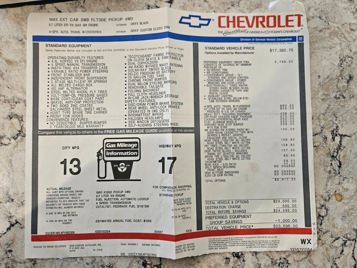 1993 Chevrolet Silverado K1500 1500 4x4 Z71 Extended Cab Chevy MINTY CLEAN TRUCK