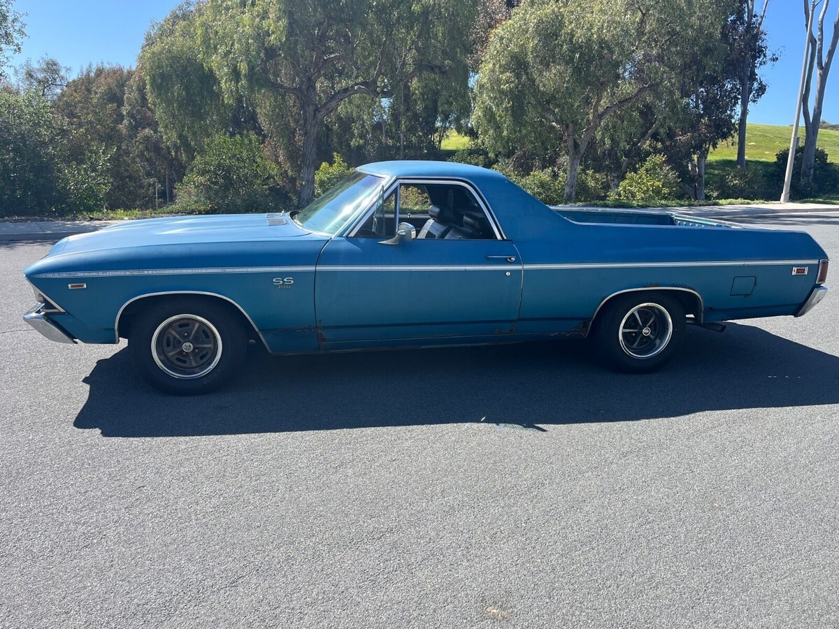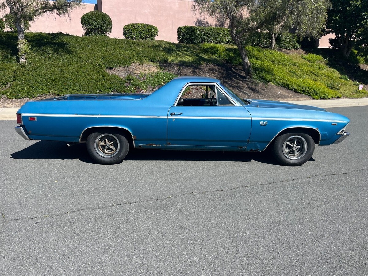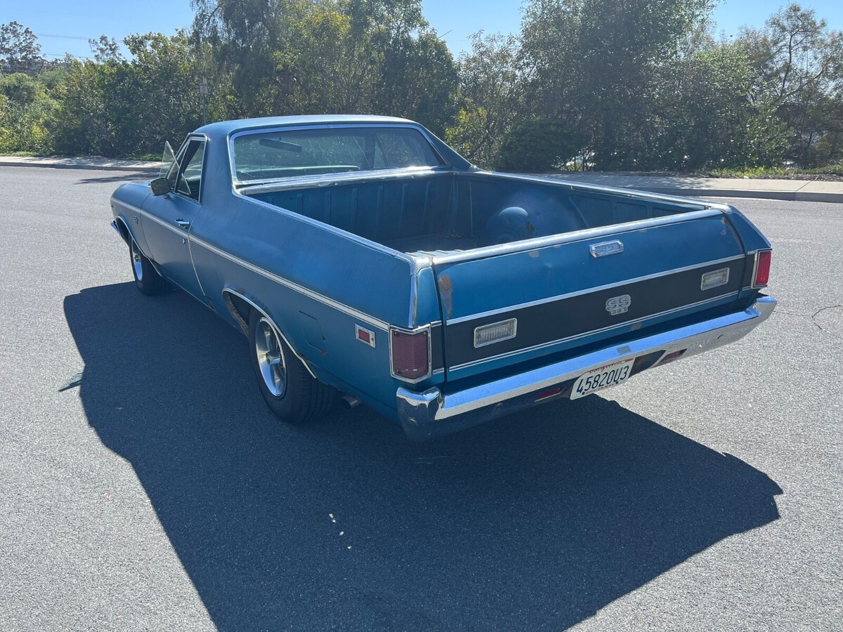Its factory Le Mans Blue with original paint side stripe is on the car and believed to be original. At some time it had body work on lower fenders. If you are restoring the car, it will need full restoration including the frame. This car came out of Saginaw Michigan back in 2022. It had been sitting for decades and still had wide oval tires on it when I found the car. It has rust! Frame has rust! Floors have rust, fenders and quarters have rust, doors have rust! So don't ask me for a ton of pictures because guess what---it has rust!I bought the car because I love original paint cars, it was too cool to not put back on the road....sooo I spent money/time getting it back on the road. New Gas Tank and sending unit/New Fuel and Brake lines/New brakes all 4 Corners/New Master Cylinder/New Alternator/New Starter/New Fuel Pump/ 4 New Radial Tires. All fluids were changed etc... I drive it weekly in Southern California and have put roughly 4k miles on it during last 2 1/2 years. It runs and drives excellent. Transmission shifts like new. If you're looking to enjoy an old El Camino and drive as is then you would love this car. Gets lots of attention.Original 375 hp engine was replaced who knows when. I actually thought the 396/350 hp in the car was original because its been in the car that long and looks 100% untouched under the hood. All the AC is in place and compressor clicks on. Factory air pump car with all in place. Factory Harrison 4 core radiator. It looks factory. The carb is dated 1969 350 hp/automatic. I had the carb rebuilt professionally and it has amazing throttle response. Like I said, I thought it was an original engine car till I looked one day and realized it had a 6k tach. Thats when I scraped the top of the deck and realized it is a CE Warranty Replacement engine. But it makes sense to be a L78 since it has the heavy duty trans and the 3:73 gear plus 4 core radiator. Can you imagine the idiot that accepted a 350 replacement for the original 375 hp. Only thought is it belonged to a GM Exec hence the options and he perhaps blew it up and the factory installed the CE engine?!?!?! Car is located in Carlsbad California (San Diego). It is available to inspect etc... I will assist with loading etc. but shipping is responsibility of buyer. I do know an amazing transport broker and I will share his information upon request. Please note: I will not accept payment through Ebay unless buyer pays the stupid fees. All payments must be wire transfer or in cash.If you want to discuss, message me your phone number and I will call you.Last, I'm a car guy! I have 100% feedback with exception of one time. I sold my dads 84 Cadillac that had sat for 28 yrs in dry climate controlled storage Car was perfect. The buyer emailed me outside ebay months after receiving car claiming I sold him a rusty car and if I didn't send him money then he would leave negative feedback. I refused and reported him to Ebay--they did crap to protect me. I go to sell another car months later and the guy leaves negative feedback saying I was a liar. Im honest and shouldn't have to explain myself but decided to share my wonderful experience. Deposit of $500 due within 24 hrs end of auction. It is non-refundable.