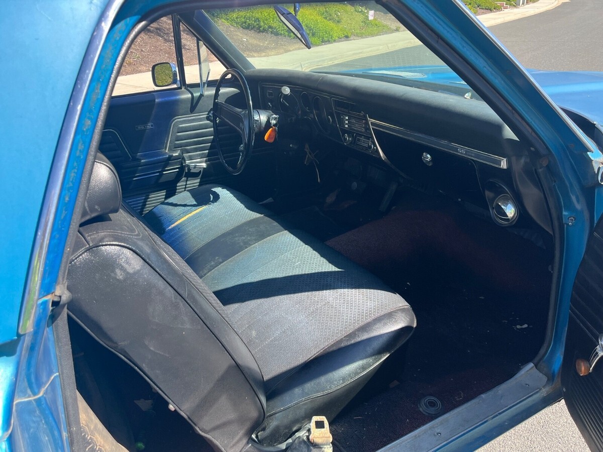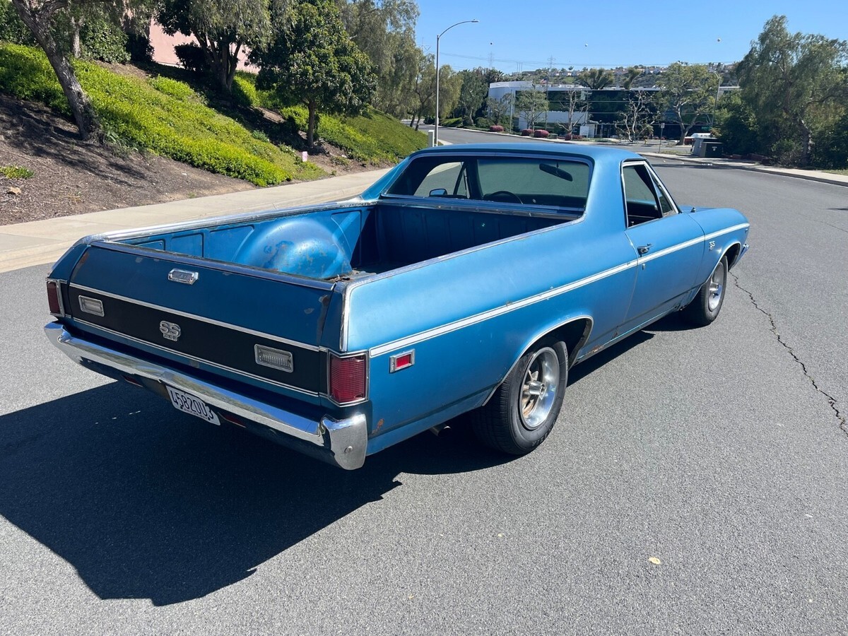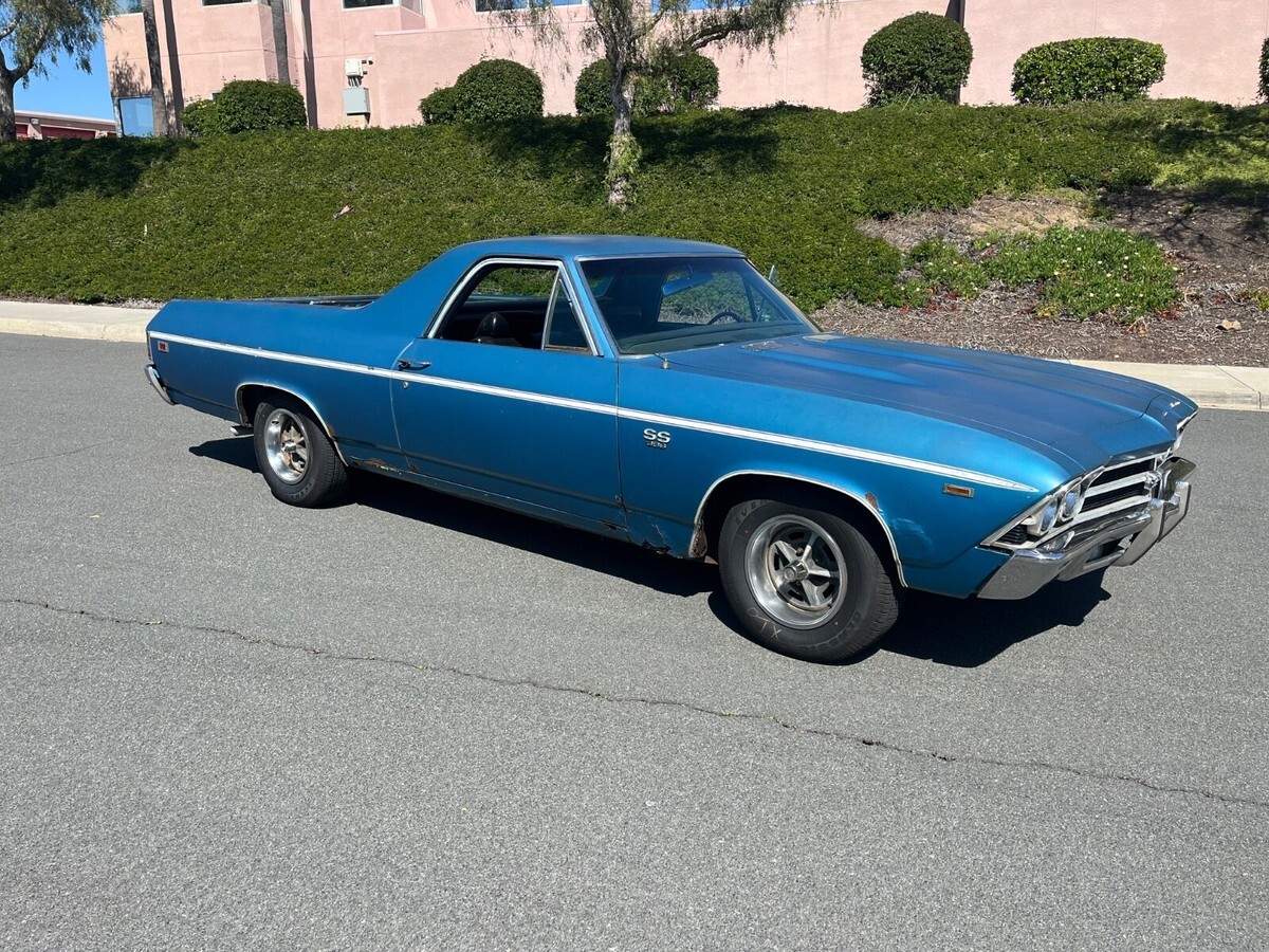 Its factory Le Mans Blue with original paint side stripe is on the car and believed to be original. At some time it had body work on lower fenders. If you are restoring the car, it will need full restoration including the frame. This car came out of Saginaw Michigan back in 2022. It had been sitting for decades and still had wide oval tires on it when I found the car. It has rust! Frame has rust! Floors have rust, fenders and quarters have rust, doors have rust! So don't ask me for a ton of pictures because guess what---it has rust!I bought the car because I love original paint cars, it was too cool to not put back on the road....sooo I spent money/time getting it back on the road. New Gas Tank and sending unit/New Fuel and Brake lines/New brakes all 4 Corners/New Master Cylinder/New Alternator/New Starter/New Fuel Pump/ 4 New Radial Tires. All fluids were changed etc... I drive it weekly in Southern California and have put roughly 4k miles on it during last 2 1/2 years. It runs and drives excellent. Transmission shifts like new. If you're looking to enjoy an old El Camino and drive as is then you would love this car. Gets lots of attention.Original 375 hp engine was replaced who knows when. I actually thought the 396/350 hp in the car was original because its been in the car that long and looks 100% untouched under the hood. All the AC is in place and compressor clicks on. Factory air pump car with all in place. Factory Harrison 4 core radiator. It looks factory. The carb is dated 1969 350 hp/automatic. I had the carb rebuilt professionally and it has amazing throttle response. Like I said, I thought it was an original engine car till I looked one day and realized it had a 6k tach. Thats when I scraped the top of the deck and realized it is a CE Warranty Replacement engine. But it makes sense to be a L78 since it has the heavy duty trans and the 3:73 gear plus 4 core radiator. Can you imagine the idiot that accepted a 350 replacement for the original 375 hp. Only thought is it belonged to a GM Exec hence the options and he perhaps blew it up and the factory installed the CE engine?!?!?! Car is located in Carlsbad California (San Diego). It is available to inspect etc... I will assist with loading etc. but shipping is responsibility of buyer. I do know an amazing transport broker and I will share his information upon request. Please note: I will not accept payment through Ebay unless buyer pays the stupid fees. All payments must be wire transfer or in cash.If you want to discuss, message me your phone number and I will call you.Last, I'm a car guy! I have 100% feedback with exception of one time. I sold my dads 84 Cadillac that had sat for 28 yrs in dry climate controlled storage Car was perfect. The buyer emailed me outside ebay months after receiving car claiming I sold him a rusty car and if I didn't send him money then he would leave negative feedback. I refused and reported him to Ebay--they did crap to protect me. I go to sell another car months later and the guy leaves negative feedback saying I was a liar. Im honest and shouldn't have to explain myself but decided to share my wonderful experience. Deposit of $500 due within 24 hrs end of auction. It is non-refundable.