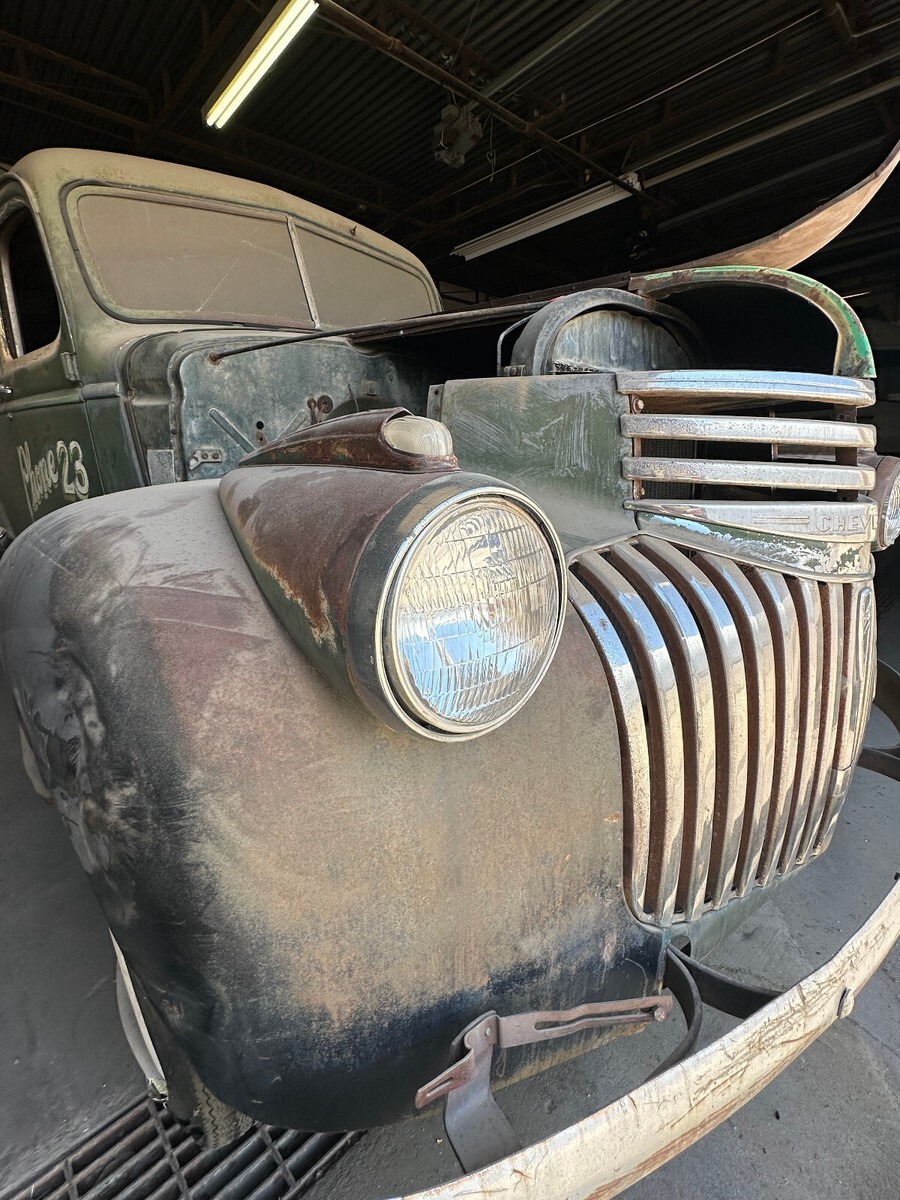 This is a "barn find" 1946 Chevrolet Sedan Delivery that the "Hawthorne Bakery" company used as advertising and deliveries is offered at $1.00 start with no reserve. I bought this on Ebay with the idea of doing a restomod, leaving 90% of the body damage and doing a satin clear coat making it a one of a kind, eye catching ride for sure. But, life changes and I have decided to offer it here for another visionary to have fun getting this piece of automotive history back on the road! Remember WWII had just ended 7 months earlier and 1946 was the first year manufacturing was not focused on wartime production! In my mind, WWII vets probably were involved in building this Sedan Delivery! And frankly, I think the two seats, that both tilt forward, look like the same design of a WWII airplane seats! Very utilitarian no lumbar support or heat..... For clarity, do not bid on this if you are looking for factory fresh sheet metal, please assume all sheet metal has some level of defect. Do not bid on this if you are looking for all the glass to be whole, without blemish. Drivers window is stuck but appears whole the crank and door handle are both present. Drivers windshield is appears whole but de-laminating, single windshield wiper above it is AWOL. Passenger windshield is broken. Passenger window AWOL as is the crank, the handle is there. Both back windows are broken and the small glass lenses above the headlights have chips on the edges. All four doors open and close tight and any gasket material that might have been present is gone.I dont know nor will I look for the "date code" on the tires.....all of which aired up to move from storage and then proceeded to go flat. Please do not bid on this Sedan Delivery thinking you will be able to use the tires, you will not. There is no spare nor and associated tools to change a flat tire.The sheet metal panel that is missing in image 9885 that creates the floor board in the front is actually in the cargo area in the back. The cover for the storage area under the passenger seat seen in image 9880 is AWOL.The brakes do not work, no receipts available for when they were last serviced.Fuel tank, as is seen in photo 9880 there is a motorcycle gas tank on the floor, that was NOT an factory option for this 1946 Chevy Sedan Delivery. Apparently it was a option for someone as it did provide fuel to the engine when delivered. Please assume the original fuel tank needs replaced.Engine, when delivered, the driver did start and back it off the trailer and told me "I sure hope you were not planning to drive this far, bad brakes and motorcycle gas tank in here"! I did drive it about 2 blocks, slowly and pumped the brakes madly when stopping... It sat inside a storage unit for 10 years then this year it was put on a tow truck and moved to current location. Please consider the engine dead, I have no receipts on ANY engine repair.Transmission, I apologize, it might be a 3 speed, it might be 4, but I'm guessing it's a 3 speed. Please assume the transmission needs work. I have no receipts on any transmission work. What I found to be attractive is the fact this is a Nevada truck and has little body rust and the undercarriage shows it's life in a desert environment and a whole lot of patina! This environment was also beneficial to the authentic and period original "Hawthorne Bakery" graphics to include "Phone 23"!! All of it hand painted. And again, that era, I cant help but think about the one of the guys that painted "Nose art" on the planes of WWII maybe painted this too. I have zero proof being the case, also no way of knowing it wasn't painted by a WWII veteran! Regardless, it's there and personally that is why I bought it! I was told the gray seen on the drivers side could be removed, leaving the Hawthorne Bakery, I do not know this to be true. I was also told some of that later paint might wash off....Regardless, that will be left the next owner. I did provide some close-up photos of these areas and again, was told they could be treated and clear coated to provide a durable finish. Again, all of this aging, dents, wrinkles and patina is impossible to duplicate, throw in the graphics and it is sincerely a one of a kind vehicle! With all of that in mind, this truck was not washed, polished and detailed for this listing, it is as it is. Please look at all the photos as they are part of the description. I have more photos and can take specific photos as needed. Please ask any questions before bidding. There is no warranty expressed nor implied, there are no returns on this. On Apr-15-25 at 08:08:39 PDT, seller added the following information: