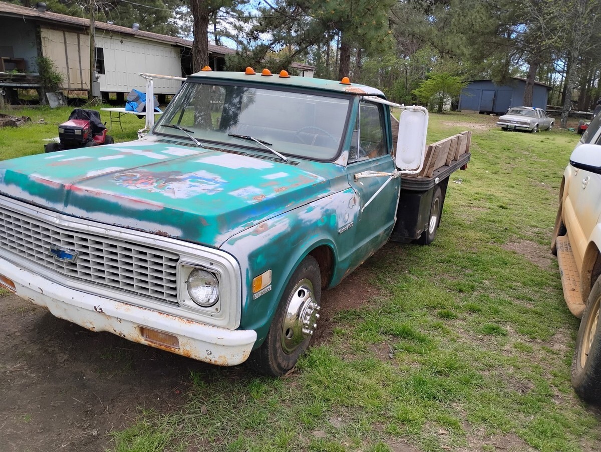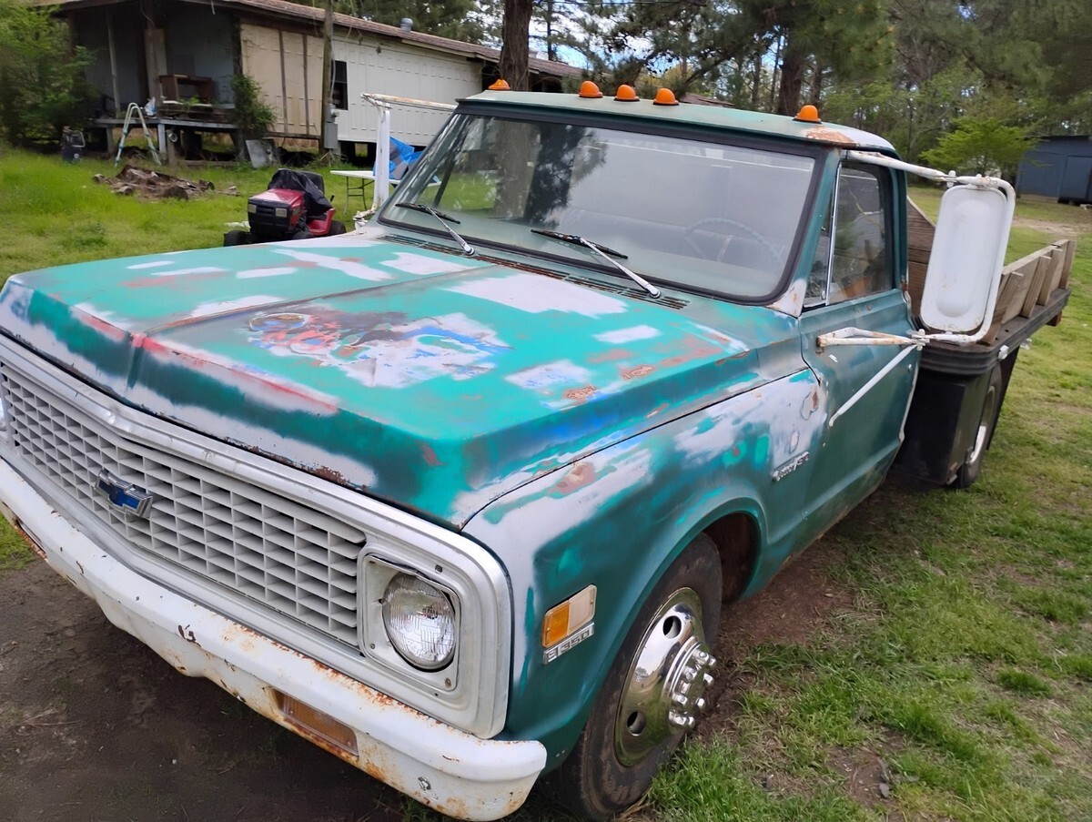 1972 C30 With Working PTO Dump Bed. This truck runs and drives. Dump works good. 350 engine with Holly carburetor. Will make a great work horse or fix it up.It does not have ignition switch, just starts with the wires. Yes rednecked it but it works and you can put a switch in yourself if you like but runs fine as is. May get around to it, may not.I do have a couple other videos of running and dump working i can send by email or text, ebay only let's you list 1 video.Body is solid but does have spots of wear as seen in pictures.Overall this is a 50+ year old vehicle so for its age it's in pretty good shape just not the prettiest. But since it us 5o years old I would trailer it unless your relatively close to us.Please only bid if your going to purchase, these listings are expensive.This will be a pick up only or you arrange freight.PAYMENT: Cash upon pick up or bank transfer due within 72 hours after auction. You may come see truck anytime though during auction before bidding. Located in Verbena Alabama