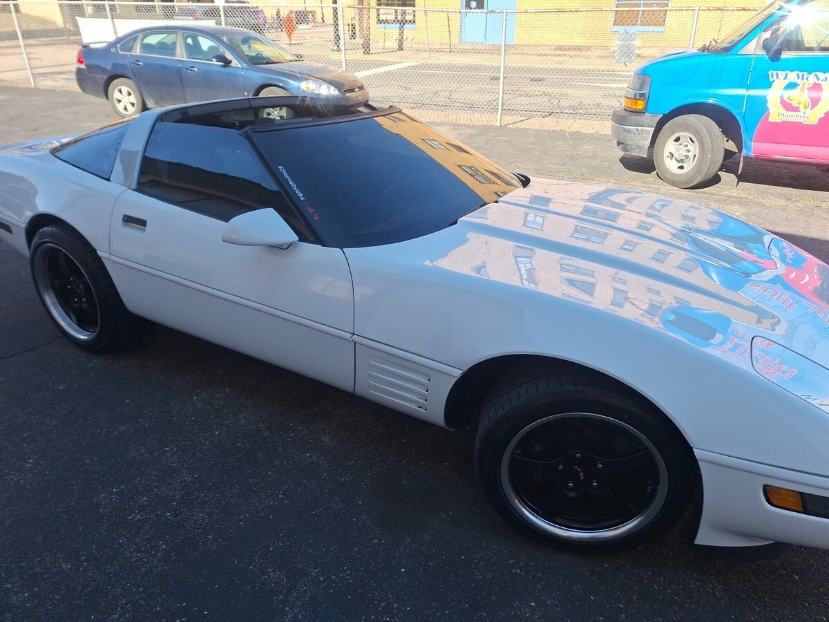 Very clean and well maintained LT1 C4 automatic, targa to, C5 wheels,full tint very clean black leather and white paint accented with silver roof and bar, bluetooth, flowmaster exhaus, Cold AC, power seats,mirrors,windows,whiteface guages,64k miles, runs and drives with no issues very dependable