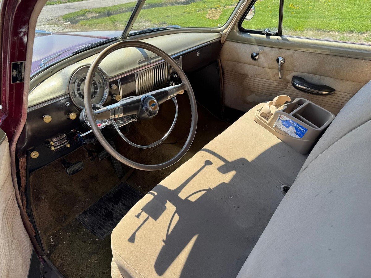 Finished in Maroon with a Gold metallic roof (professionally painted in 2021) over Tan cloth interior