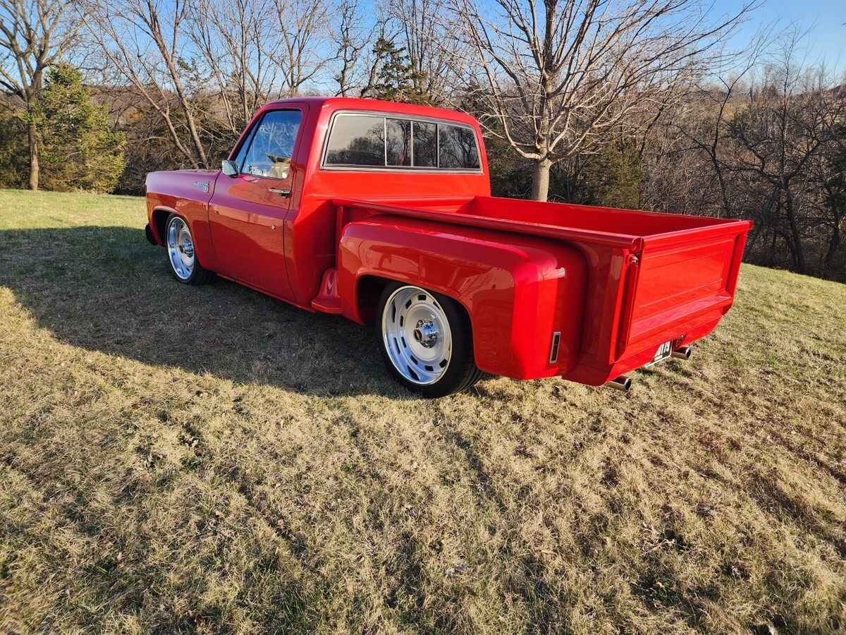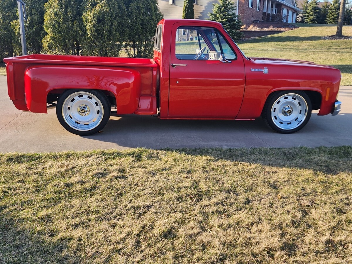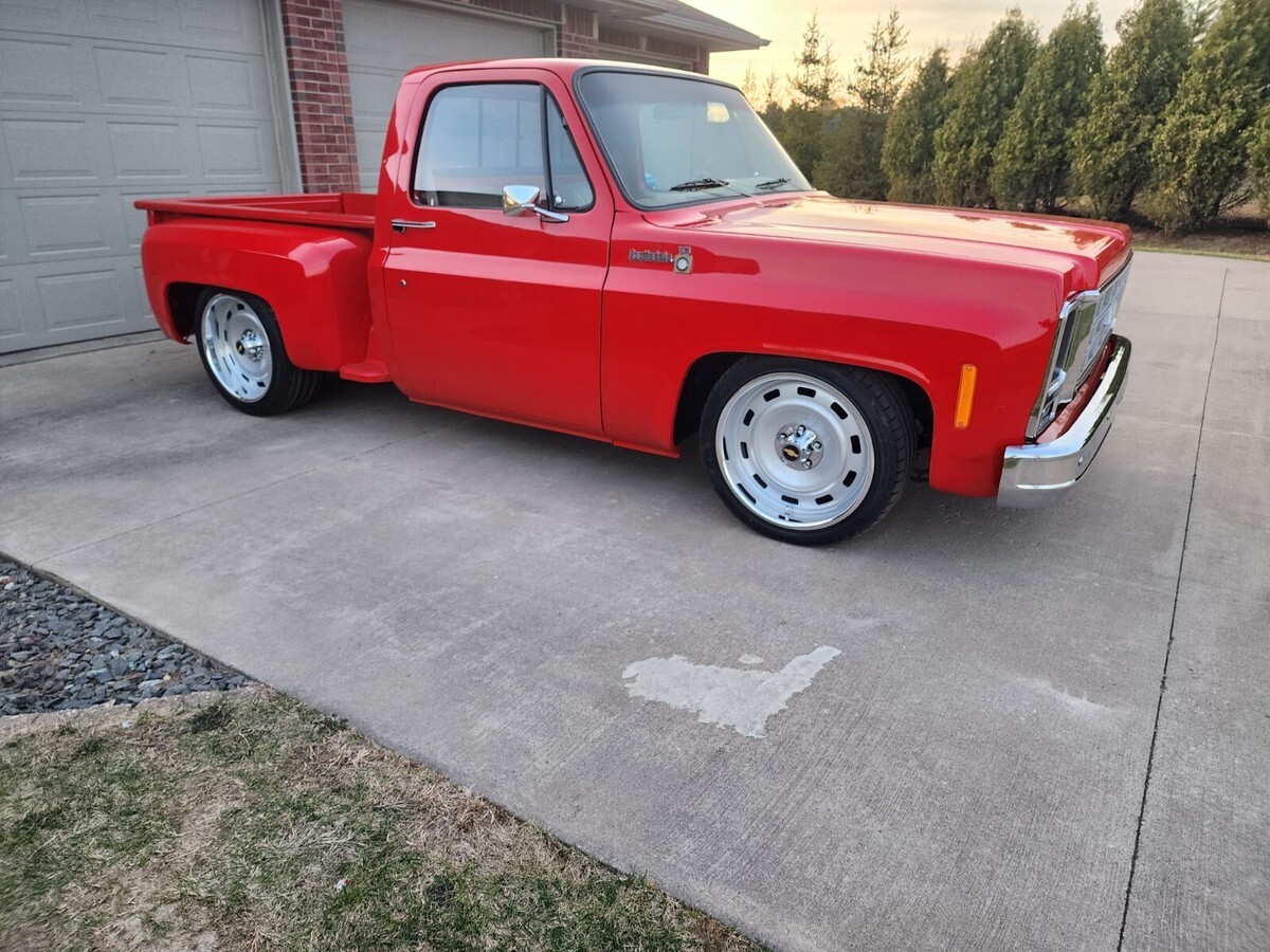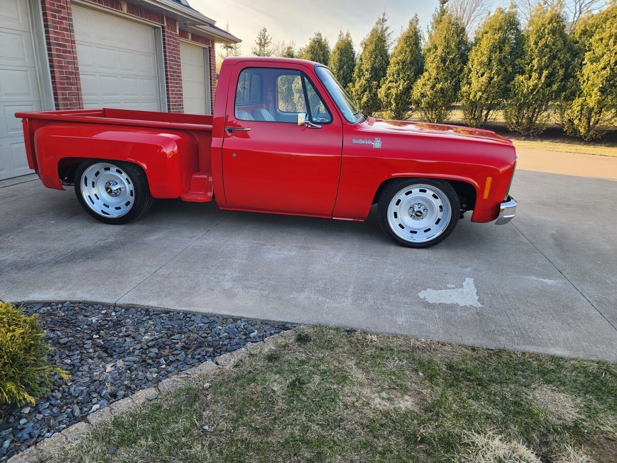 1981 Chevrolet Short Box Step Side Custom1123 miles on frame off build. Rust free frame sand blasted, and powder coated gloss black. Rust free parts and this is a "K" Cab.1979 round headlight front end swap400 CI small block 350 turbo transmission built by MK Matic transmissionCPP tubular front suspension system with high clearance sway barAir ride/Ride tech front air bags with suspension helper bags2 zone air ride suspensionPPG Viper Red Base Coat Clear CoatOak bed floorSaddle interior with Pro Car bucket seats-Dash is an overlay from what I can tellAuto Meter Ultra Lite GaugesJVC CD playerPRC aluminum radiatorThrush mufflersBRAND NEW EXTERIOR BRIGHT WORKBRAND NEW 20" US MAG SCOTTSDALE WHEELSBRAND NEW KUHMO ECSTA TIRES 255/40ZR20 FRONT 275/40ZR20 REAR TIRESI will try to answer questions to the best of my ability. I did not build this truck entirely. It was built a few years back and sat in an office as a show piece. Very nice truck overall. Not perfect but very nice. Title in hand in my name. BANK WIRE or CASH only. Only looking at selling because I have multiple classics. Vehicle is for sale locally so listing may end. Thank you