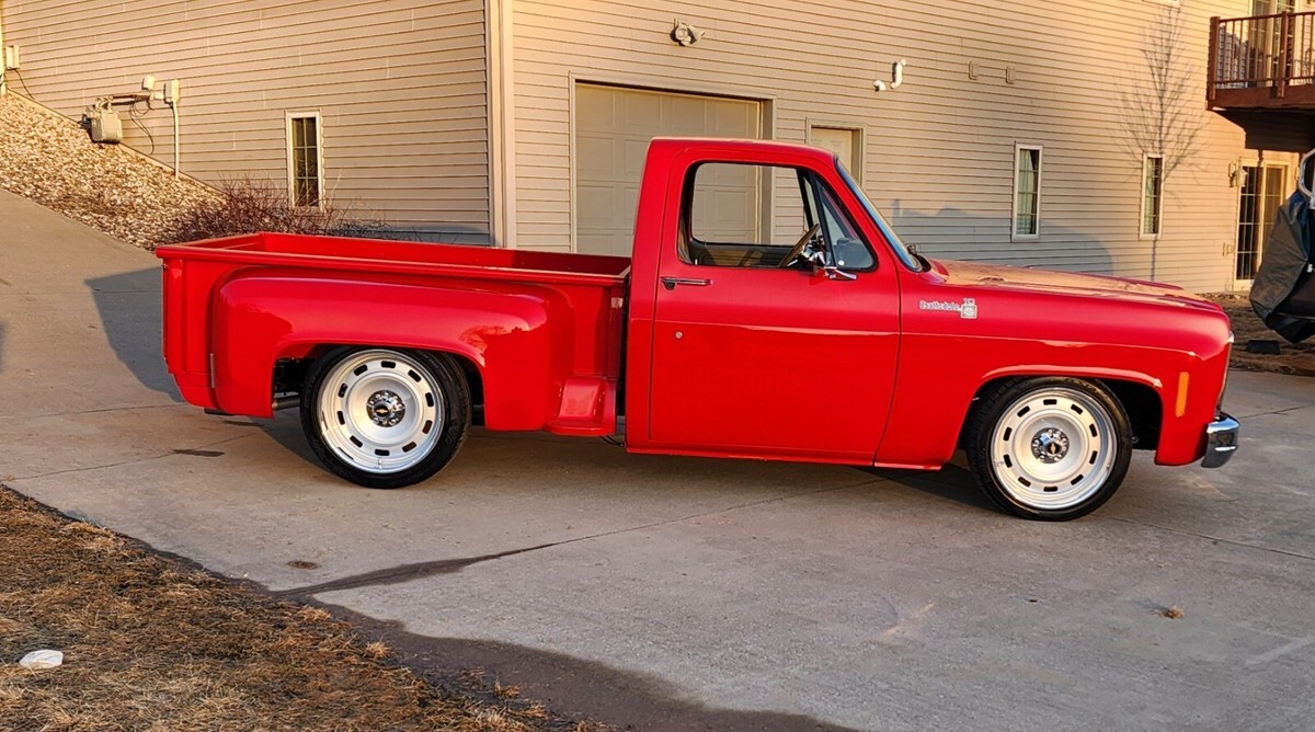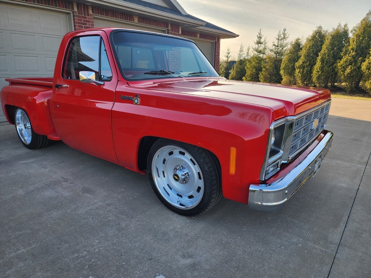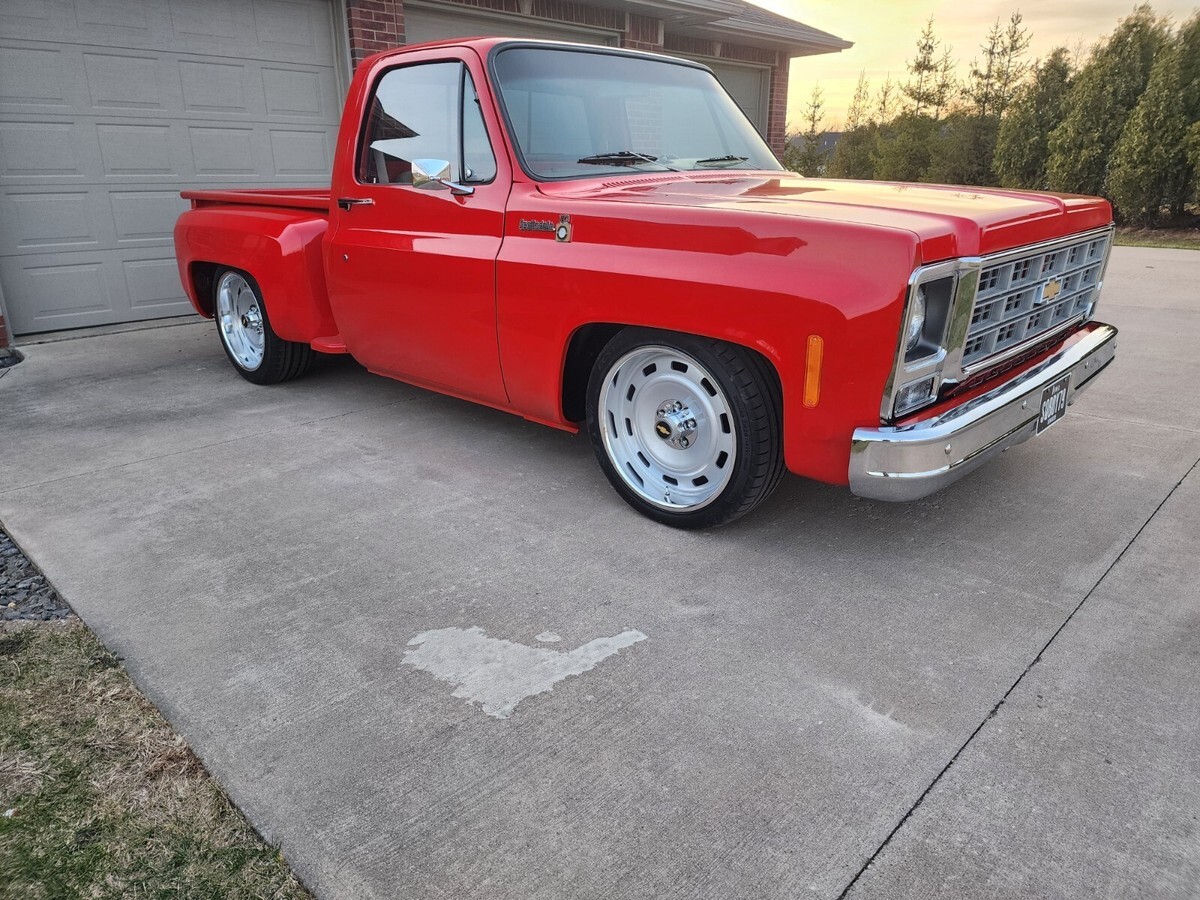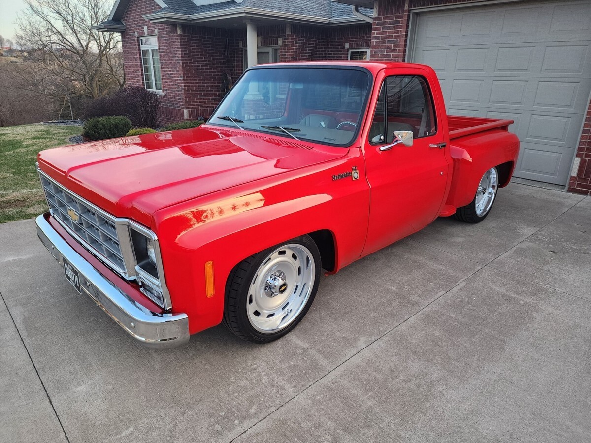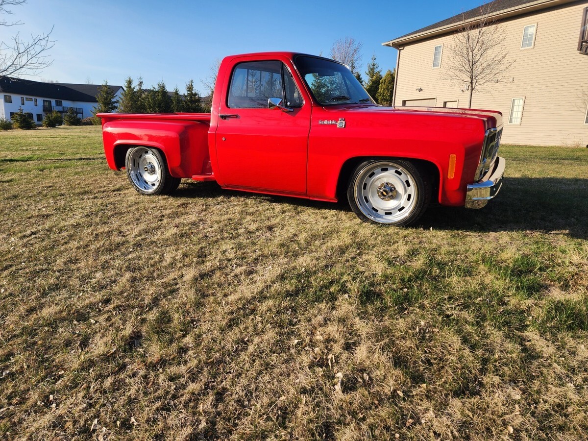 1981 Chevrolet Short Box Step Side Custom1123 miles on frame off build. Rust free frame sand blasted, and powder coated gloss black. Rust free parts and this is a "K" Cab.1979 round headlight front end swap400 CI small block 350 turbo transmission built by MK Matic transmissionCPP tubular front suspension system with high clearance sway barAir ride/Ride tech front air bags with suspension helper bags2 zone air ride suspensionPPG Viper Red Base Coat Clear CoatOak bed floorSaddle interior with Pro Car bucket seats-Dash is an overlay from what I can tellAuto Meter Ultra Lite GaugesJVC CD playerPRC aluminum radiatorThrush mufflersBRAND NEW EXTERIOR BRIGHT WORKBRAND NEW 20" US MAG SCOTTSDALE WHEELSBRAND NEW KUHMO ECSTA TIRES 255/40ZR20 FRONT 275/40ZR20 REAR TIRESI will try to answer questions to the best of my ability. I did not build this truck entirely. It was built a few years back and sat in an office as a show piece. Very nice truck overall. Not perfect but very nice. Title in hand in my name. BANK WIRE or CASH only. Only looking at selling because I have multiple classics. Vehicle is for sale locally so listing may end. Thank you