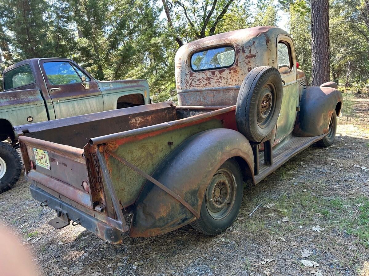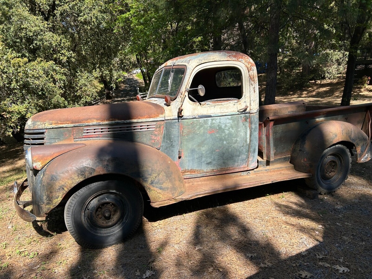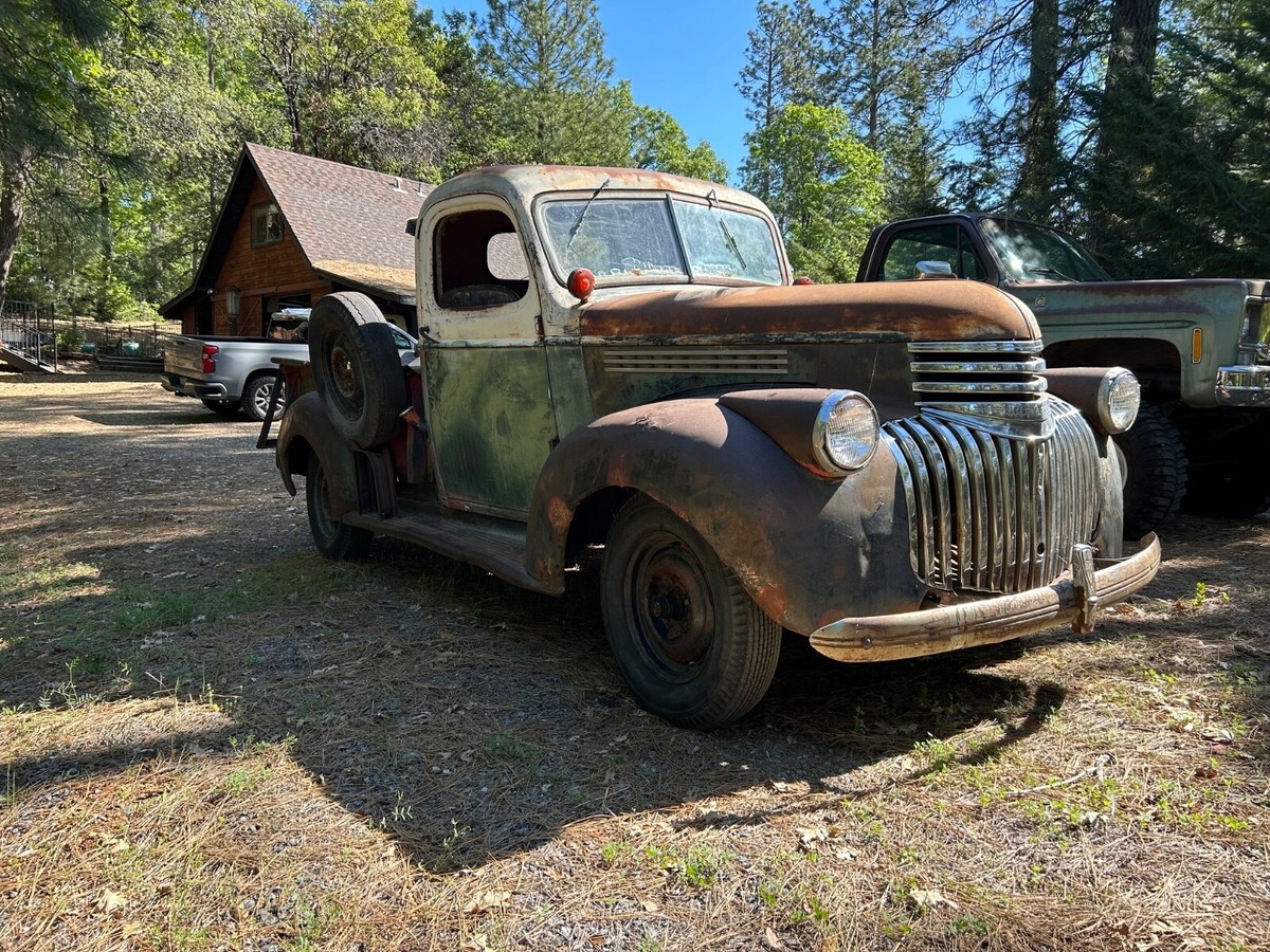 Here we have a very dry 46 1/2 ton regular bed Chevrolet pick up. Stock 216 engine four speed transmission all new fuel system, including tank carburetor, fuel pump and fuel lines. Fresh brake system. New master cylinder, wheel cylinders, brake hoses, etc. This truck sat for a very long time. Approx 35-40 years. I pulled it out of an estate and got it running and driving. I also have a title currently in my name. The truck fires up immediately and runs and drives fairly well. Needs exhaust and needs some wiring. The exhaust is there but there’s a hole in the muffler I may change it. Very little rust on the driver‘s door bottom outside. And a couple bubbles on the lower cowl inside the fender. which I show in pic. All the fenders have dents in them the running boards do as well. The cab is pretty darn clean in my opinion the hood is very clean. The grill is decent and the bed is good. It’s an old work truck and has a lot of life left in it. This truck is a running driving project. Or do the wiring in the exhaust and leave it the way it is.I put some good 600 tires on it I have an extra hood for it. I have a few front end pieces that will go with it. lower inner radiator, baffle, and chin below the grill and some headlight buckets All extra all included.Would like a PayPal deposit of $1500 within 24 hours of auction clothes balance to be paid in cash or cashiers check or possibly a wire.Truck is located in Auburn California can be shipped or picked up from there. Or I can bring it back down to Belmont where it can be picked up or shipped from here.I have lots of other videos of me driving it. For some reason, they were not uploading well, but I will be glad to share them with interested parties that are serious about the vehicle.