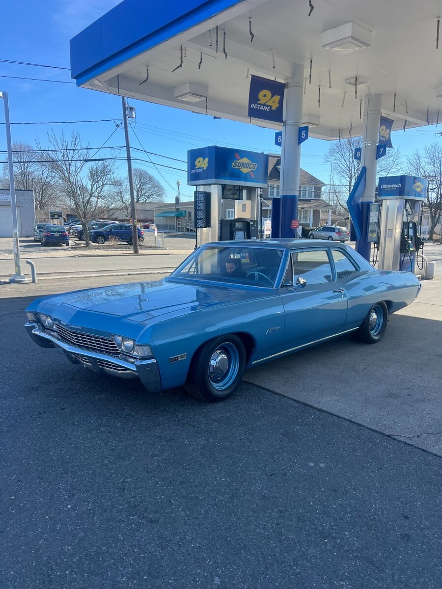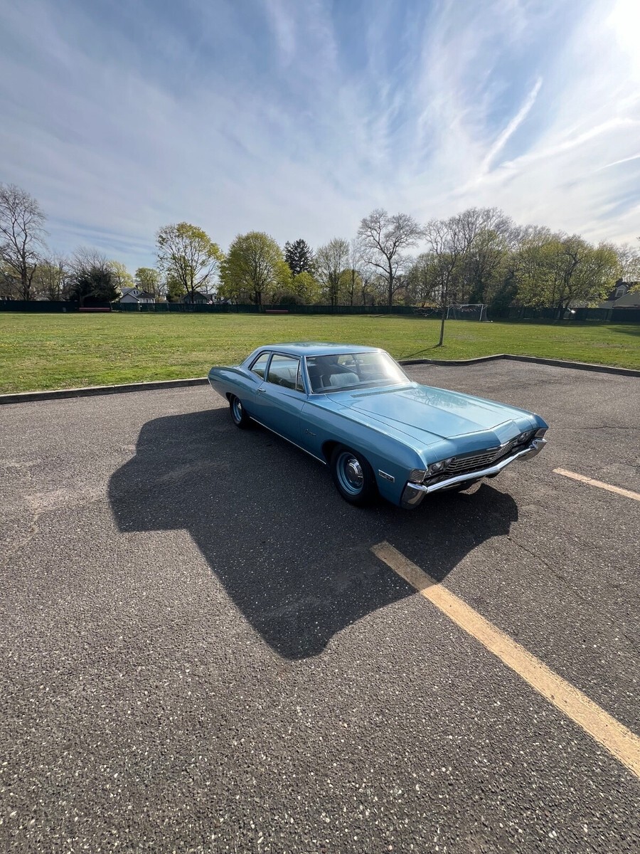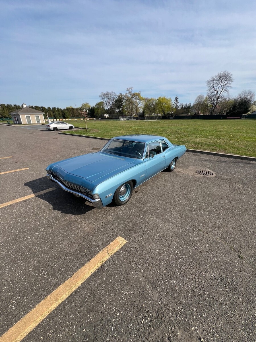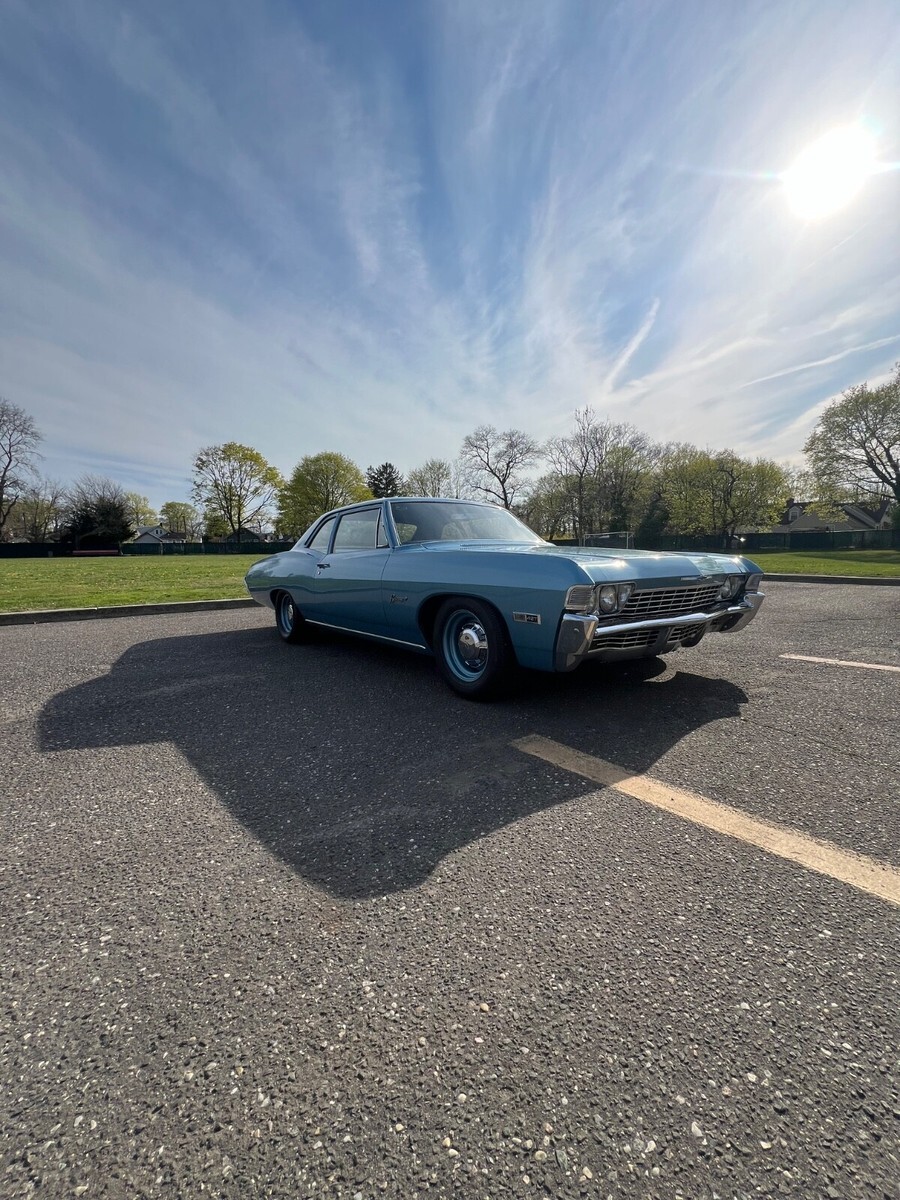Up for Auction 1968 Chevrolet Biscayne - Equipped with the Big Block 427-425HP, 4 Spee, 12 bolt differential with 3.73 gears and Bench seat !1 of 124 4 speeds buil, with only a hand full remain and rarely come up for sale . This is a great opportunity to obtain one of these Sleepers. Besides the 427( CE854469) and the 4 speed the car is equipped with the gauge packag, Tilt Wheel, seat belts including the shoulder belts all correct date code, radio delet, minimal chrom, power steering, snowflake large rectangular aluminum intake manifold, HEI ignition has been adde, Steel wheels with dog dish caps with P245/60R15 fronts and P295/50r15 rear, Dual exhaust. Car is extremely clean inside / outside and underneath.Runs and drives grea, all glass is perfec, seats are in great shape, spar, jack etc is present . The Paint is beautiful and shines very well .So now Immerse yourself in the nostalgia of classic American muscle with the 1968 Chevrolet Biscayne. This iconic coupe, finished in an eye-catching Grotto Blue, embodies the essence of a bygone era. It boasts a robust 7L 427 -425 HP engine with a 4 speed manual transmission, ready to deliver an engaging driving experience. The Biscayne's interior is dressed in a soothing blue, offering a comfortable and stylish cockpit for its two-seater configuration. Equipped with power steering and boasting a clean vehicle title, this collector's car maintains its original left-hand drive setup, adding to its authenticity and charm. With a substantial 425 horsepower under the hood and only 49,705 miles on the odometer, this Chevrolet is a testament to timeless design and enduring quality.This is a car you will not see another of at a car show / cruise night.The value of these is just going to go up as less and less come up for sale. Arrangements can be made for private inspection and test drive.Please feel free to ask any questions, I also have plenty of other pictures and videos. You can also contact me by cell 631-873-9306-Gary .Be the envy of your friends as its difficult to actually see on, no less one for sale. Good luck bidding and thanks fot looking .