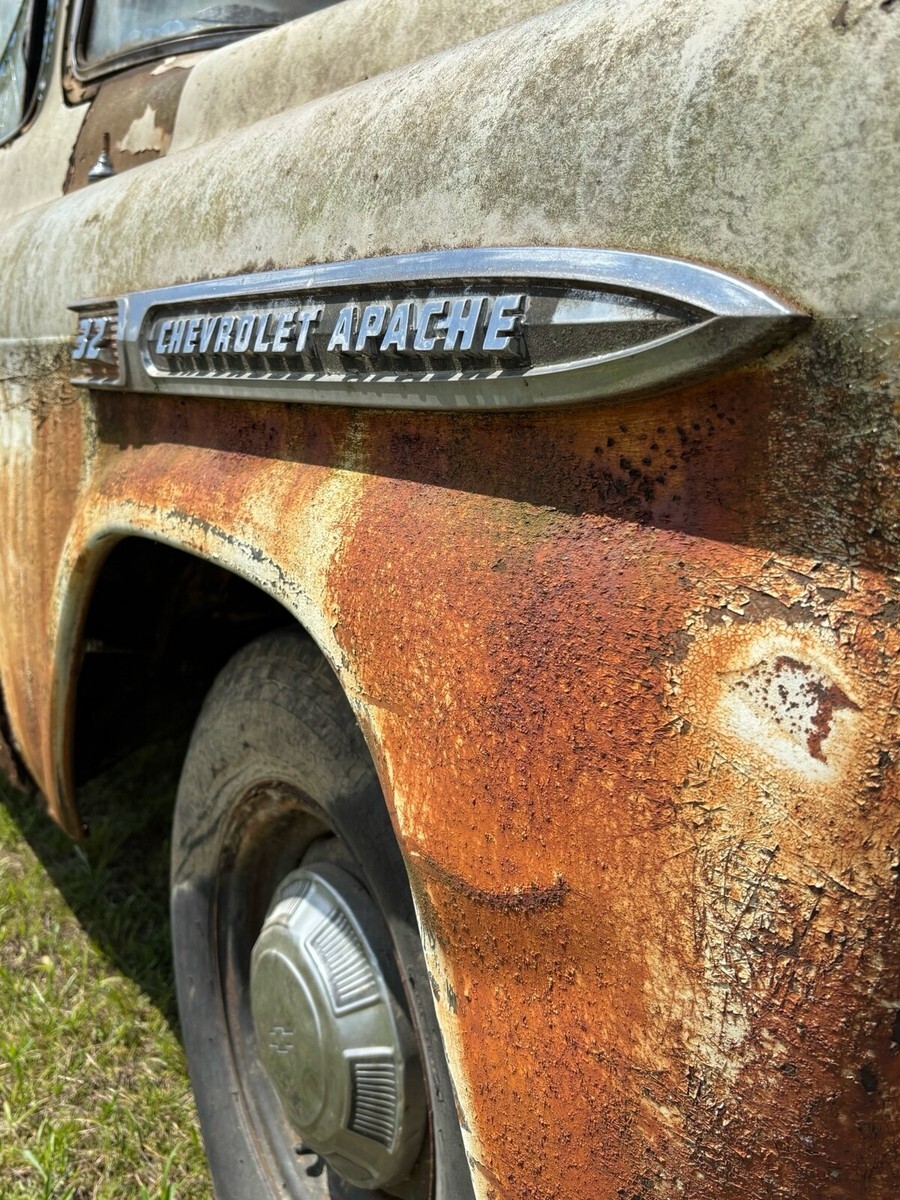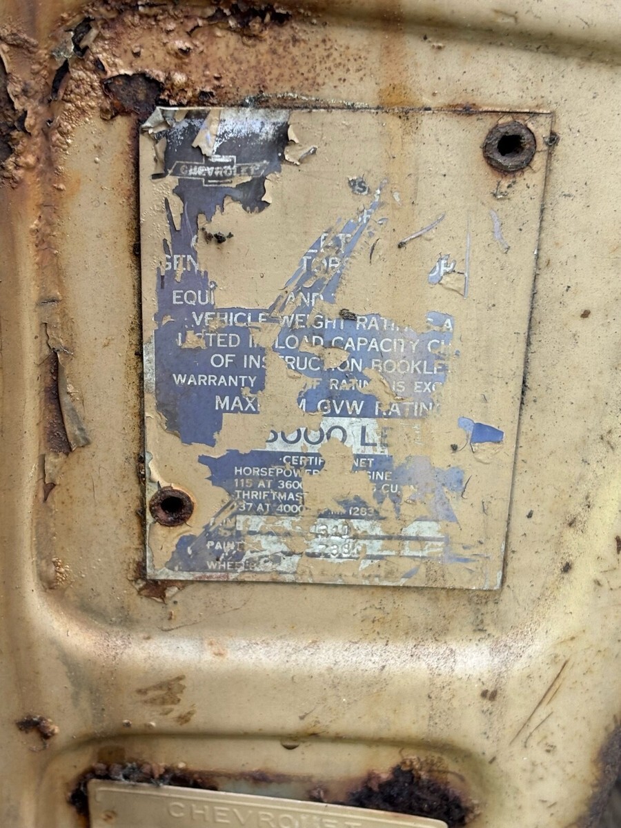 Great project. 1959 Chevy truck Apache big back window, Apache 32 fleet side. This is a double deluxe option that replaced the cameo option. This option was only available in 1959 for a short period of time. This truck has a 235 6 cylinder engine with a 3 speed manual on the column. Last state inspection was 1984. This truck rolls freely and steers. Truck has its body tag and vin number still attached. This truck will come with a bill of sale. No title but should be easy to obtain. Truck will need a full restoration unless you are looking for a rusty patina look. Truck has rust over the passenger side sun visor and will need repaired. Both doors need attention. Bed floor is solid. Front core support and hood look good. Fenders need attention. Interior is complete except the radio. Frame is solid. I have not tried to start it. A lot of good parts and pieces here. Truck also comes with a napco 4x4 conversion. Included are the Rockwell divorced transfer case, 1 driveshaft from trans to t-case and the front Dana 44 closed knuckle front axle. Turn this into a 4x4 like napco did if you choose or leave it original 2wd. Please see pictures for details. I can assist with helping load the truck up if needed. Truck can stay here for 30 days after sale ends for pick up arrangements if needed. Truck is located and can be picked up in southern va mecklenburg/halifax county line. Please ask any questions you have or schedule a time to see it in person. Thanks for looking. Payment can be made in person cash or wire transfer.